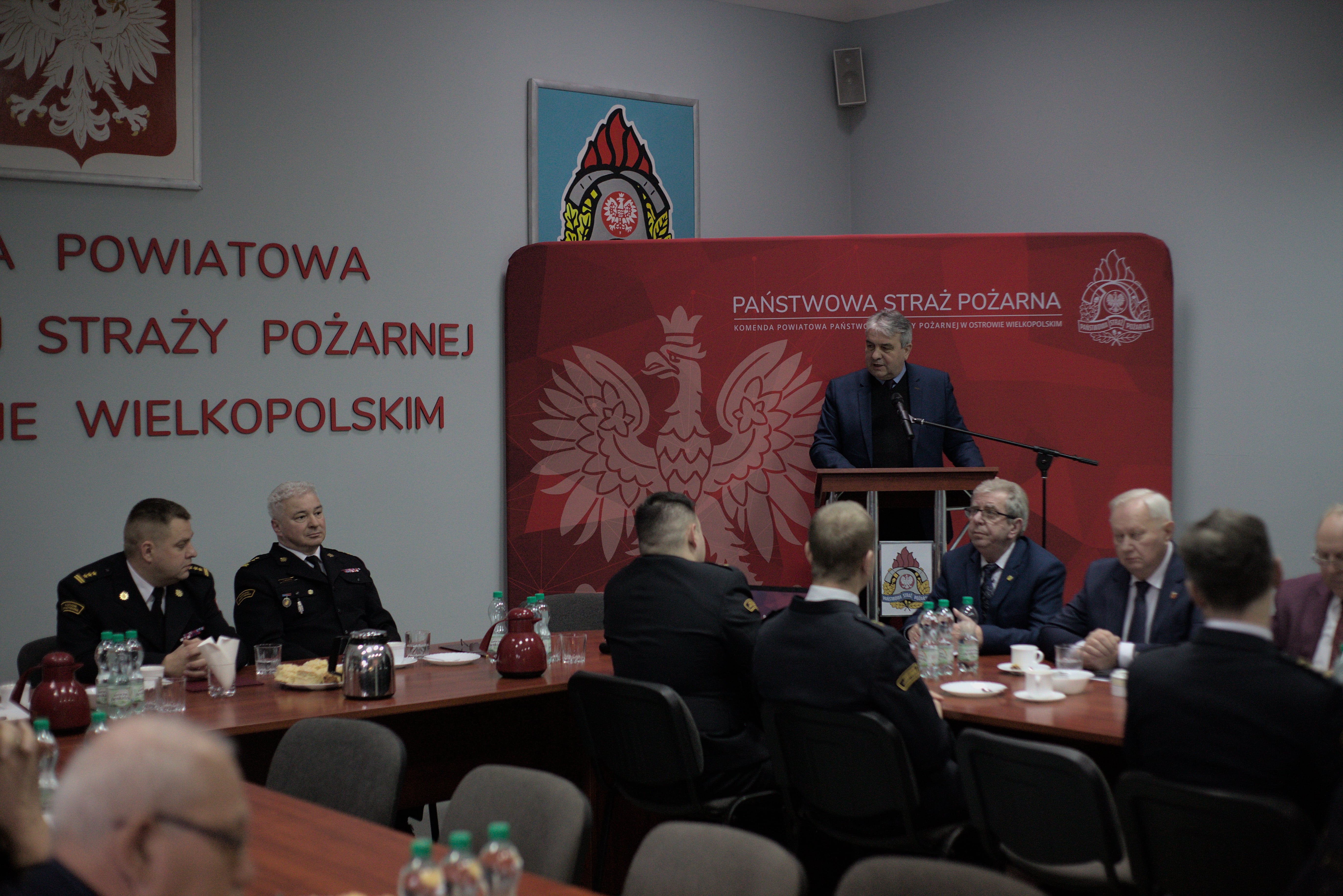 Na wstępie Komendant Powiatowy PSP w Ostrowie Wielkopolskim st. bryg. Jacek Wiśniewski przywitał wszystkich przybyłych na spotkanie, które po dwóch latach przerwy spowodowanych panująca pandemią koronawirusa, mogło odbyć się w trybie stacjonarnym.