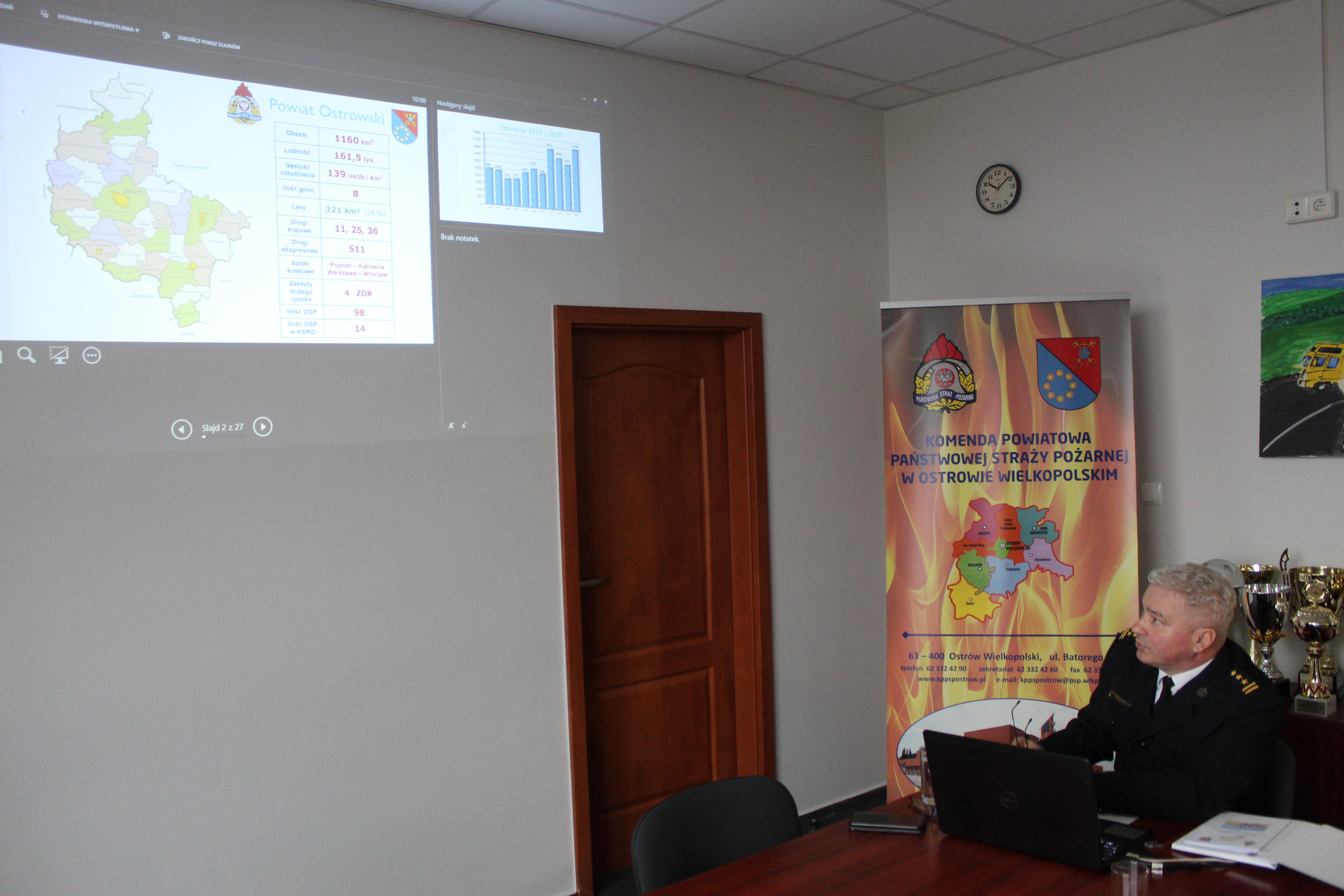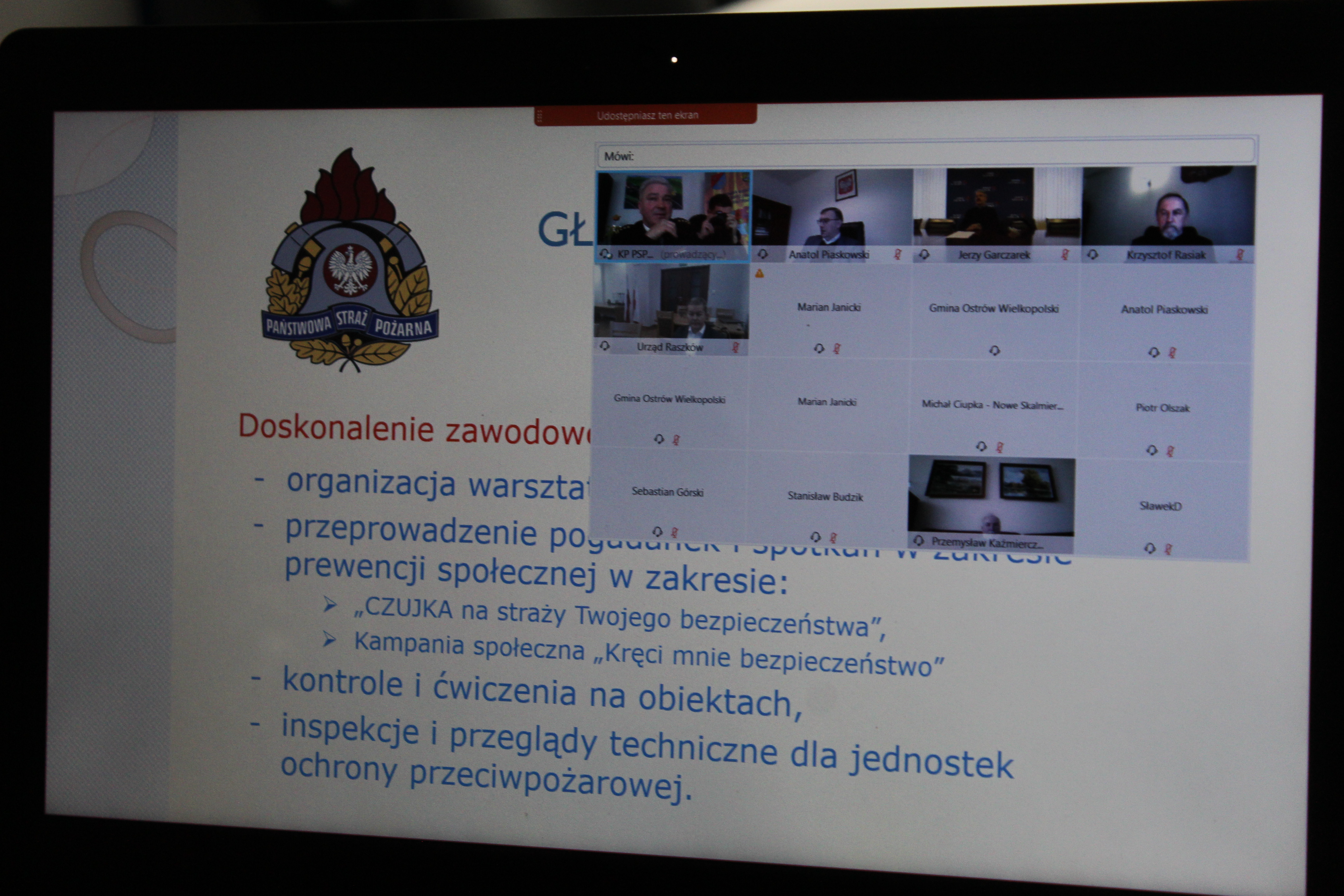 W spotkaniu uczestniczyli wszyscy przedstawiciele władz samorządowych z terenu powiatu ostrowskiego. Komendant Powiatowy Państwowej Straży Pożarnej w Ostrowie Wielkopolskim st. bryg. Jacek Wiśniewski przedstawił szczegółowe informacje o stanie ochrony przeciwpożarowej oraz o działaniach ratowniczo-gaśniczych na terenie powiatu ostrowskiego za 2020 rok oraz zaprezentował najważniejsze plany na rok 2021.