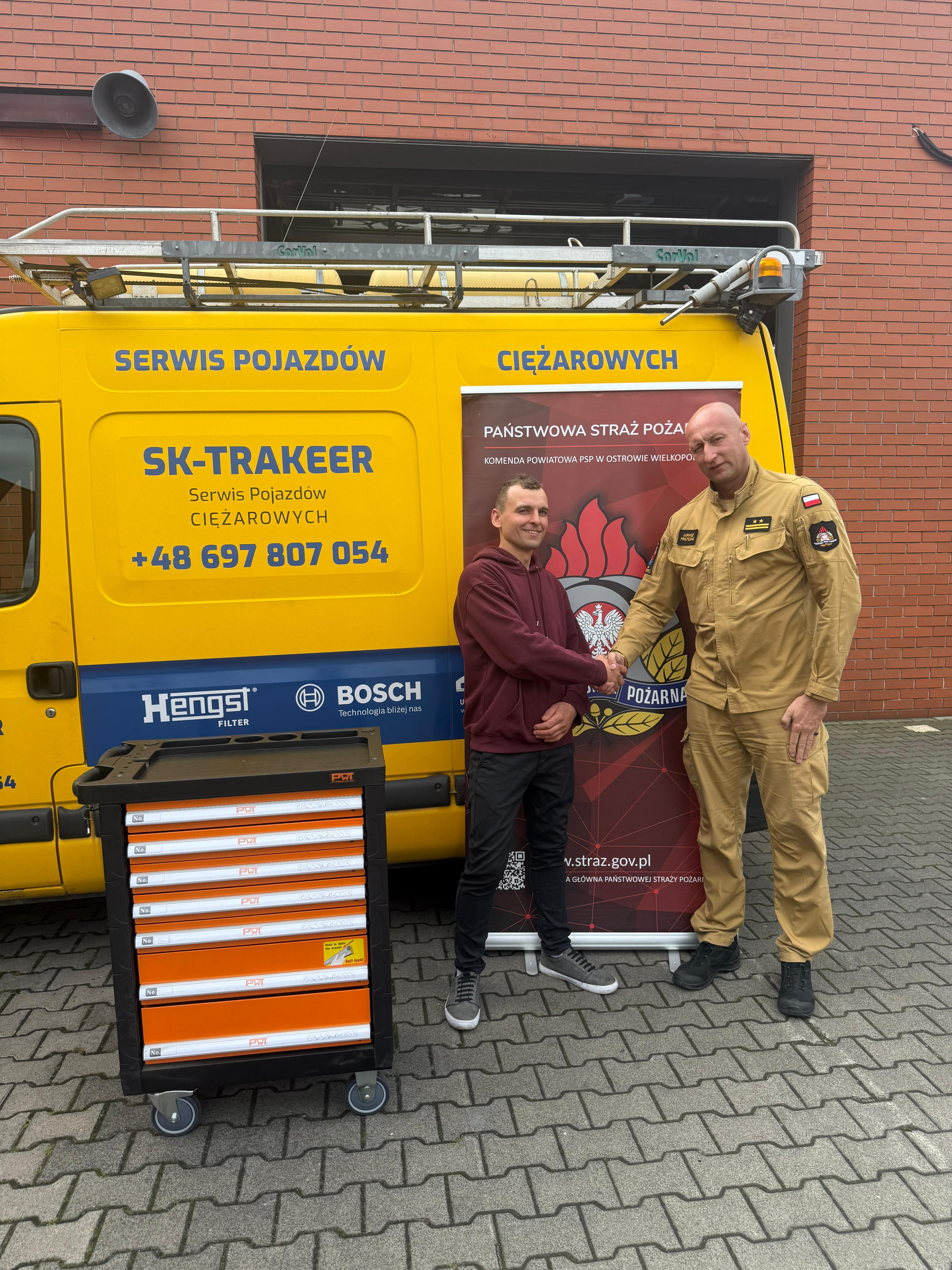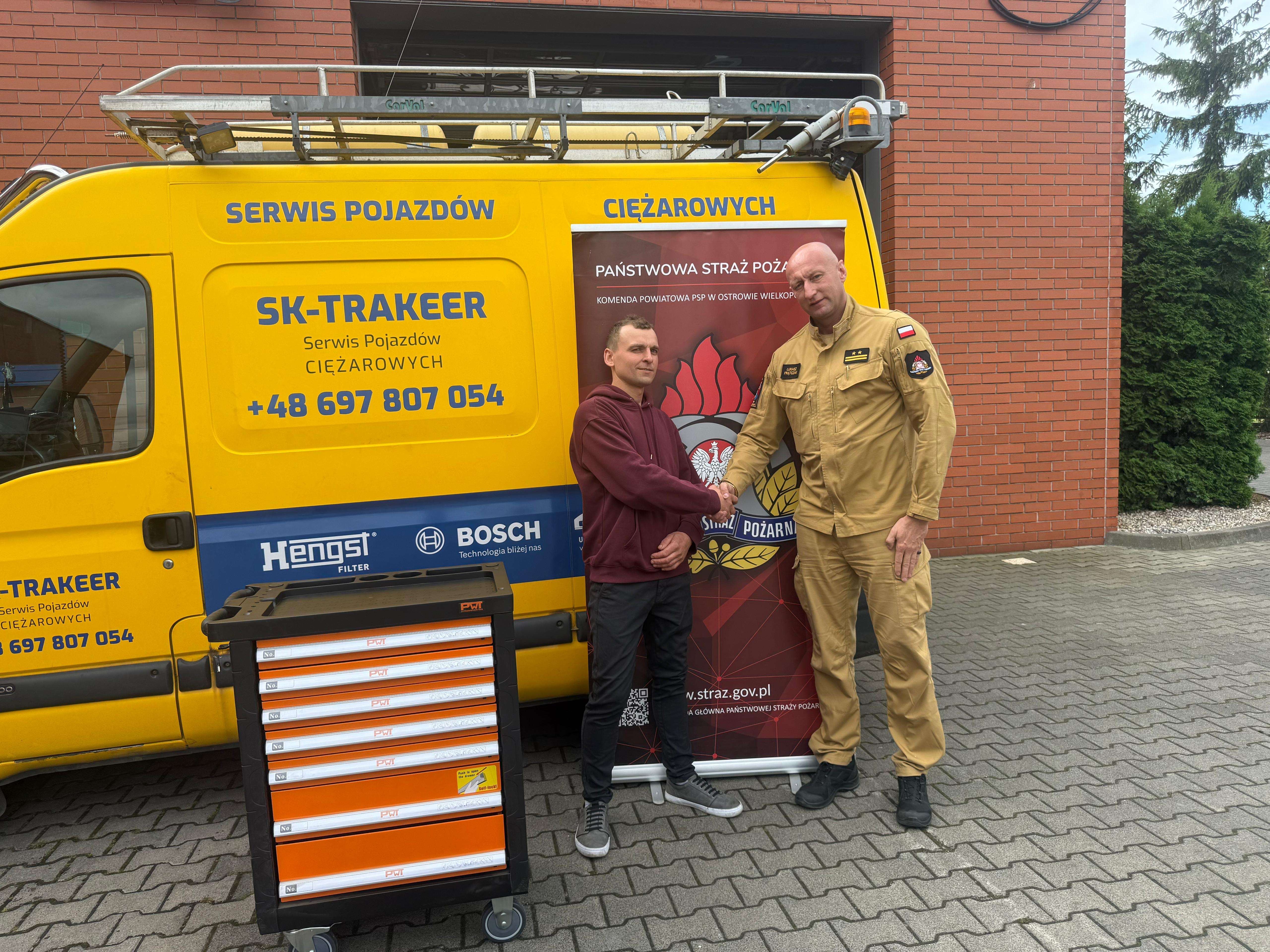 Komenda Powiatowa PSP w Ostrowie Wielkopolskim składa serdeczne podziękowania Panu Sebastianowi Kłopockiemu, właścicielowi firmy SK-TRAKEER, za ten gest wsparcia i życzliwości wobec naszej służby. Tego typu inicjatywy są nie tylko praktycznym wsparciem, ale również wyrazem społecznego zaufania i uznania dla pracy strażaków.