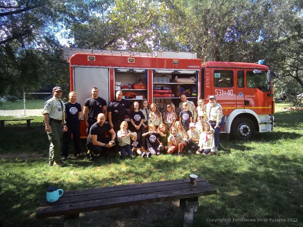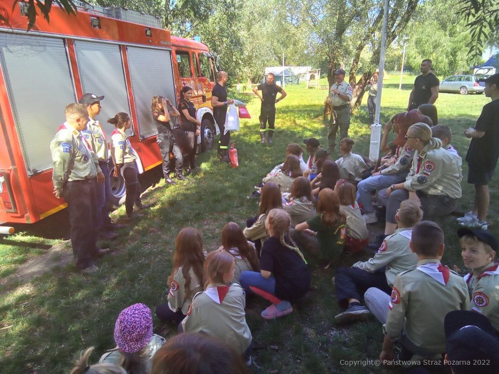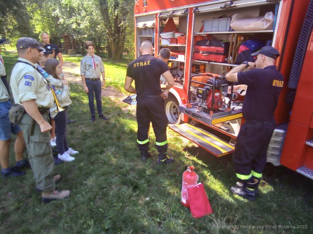 Podczas rozpoznania ostrowscy Strażacy wraz z Policjantami odwiedzili harcerzy na obozie organizowanym w Ostrowie Wielkopolskim na terenie Stanicy Harcerskiej Piaski Szczygliczka. Podczas spotkania sprawdzono, czy są spełnione wymagane środki bezpieczeństwa, rozmawiano z harcerzami o zasadach bezpiecznego wypoczynku w lesie i nad wodą.