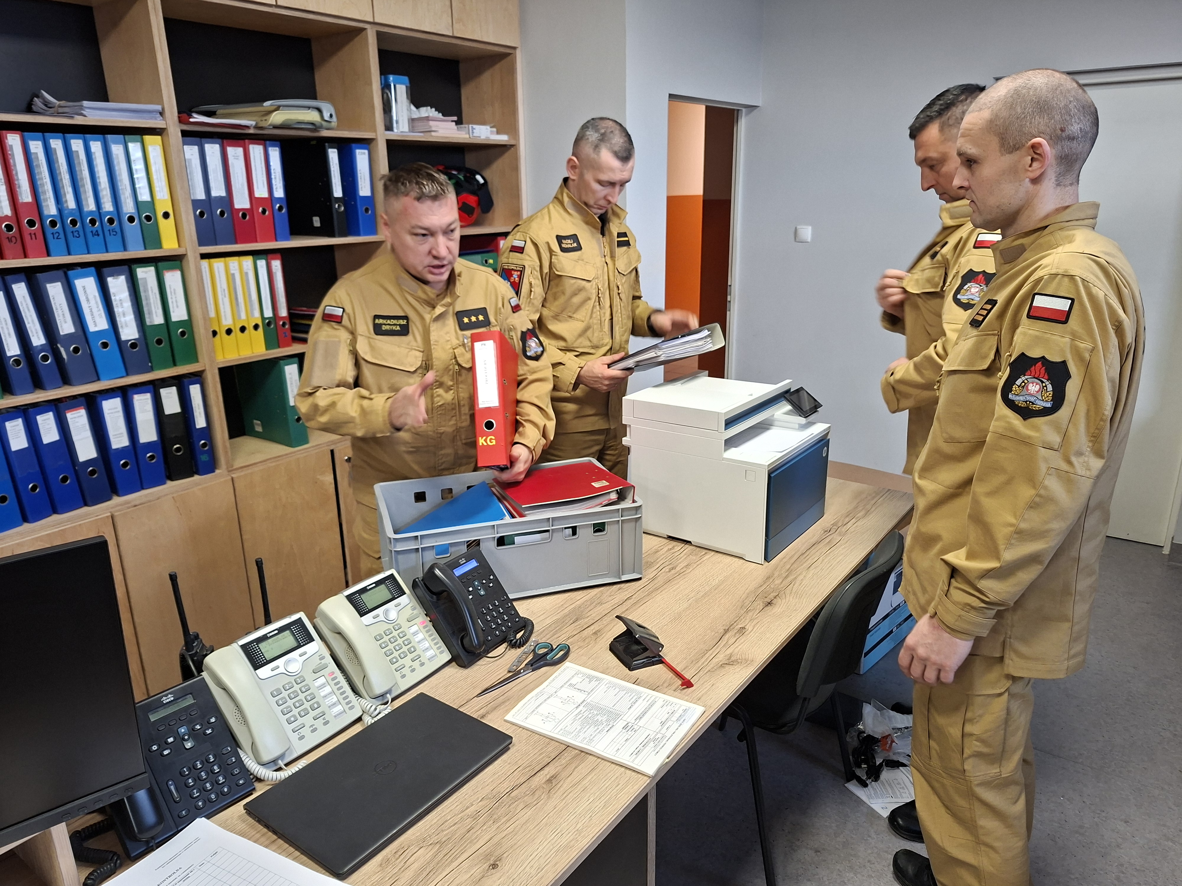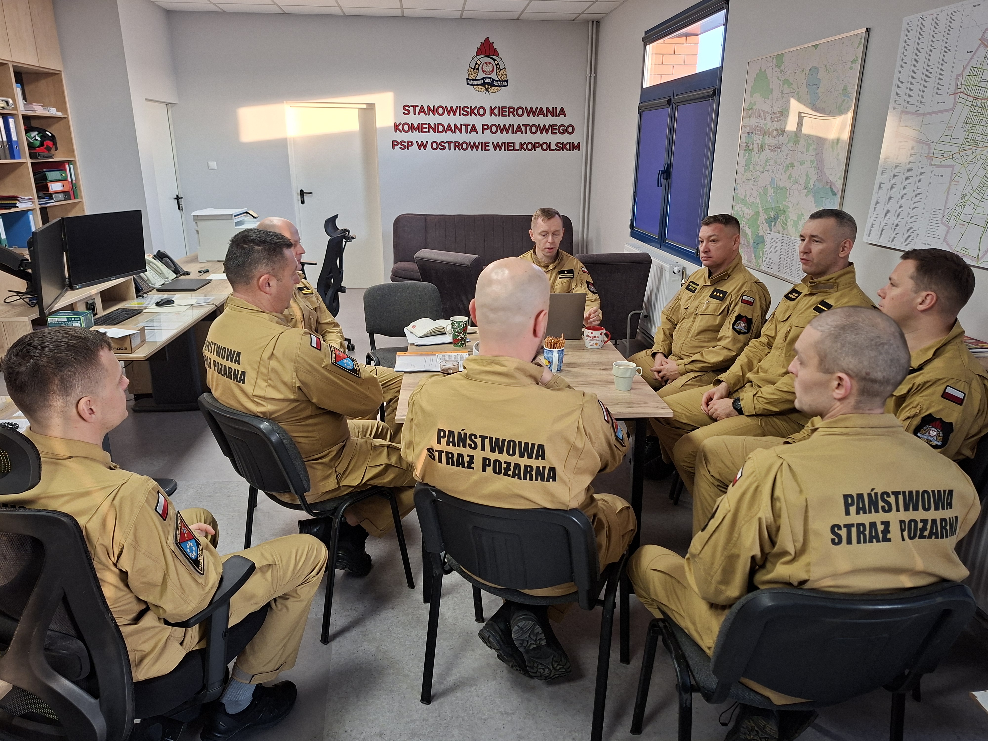 W dniu 17 grudnia 2025 roku, w godzinach porannych, bryg. Łukasz Frątczak - Komendant Powiatowy PSP w Ostrowie Wielkopolskim wydał polecenie służbowe Dyżurnemu Operacyjnemu Powiatu dotyczące rozpoczęcia ewakuacji Stanowiska Kierowania Komendanta Powiatowego (SKKP) do miejsca zapasowego.