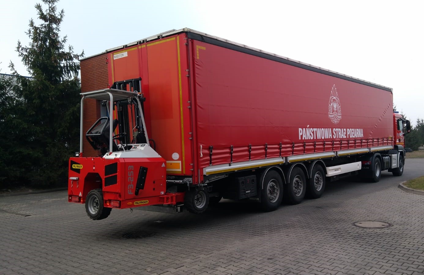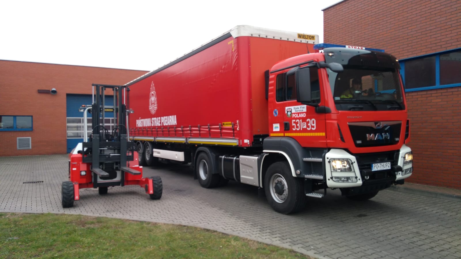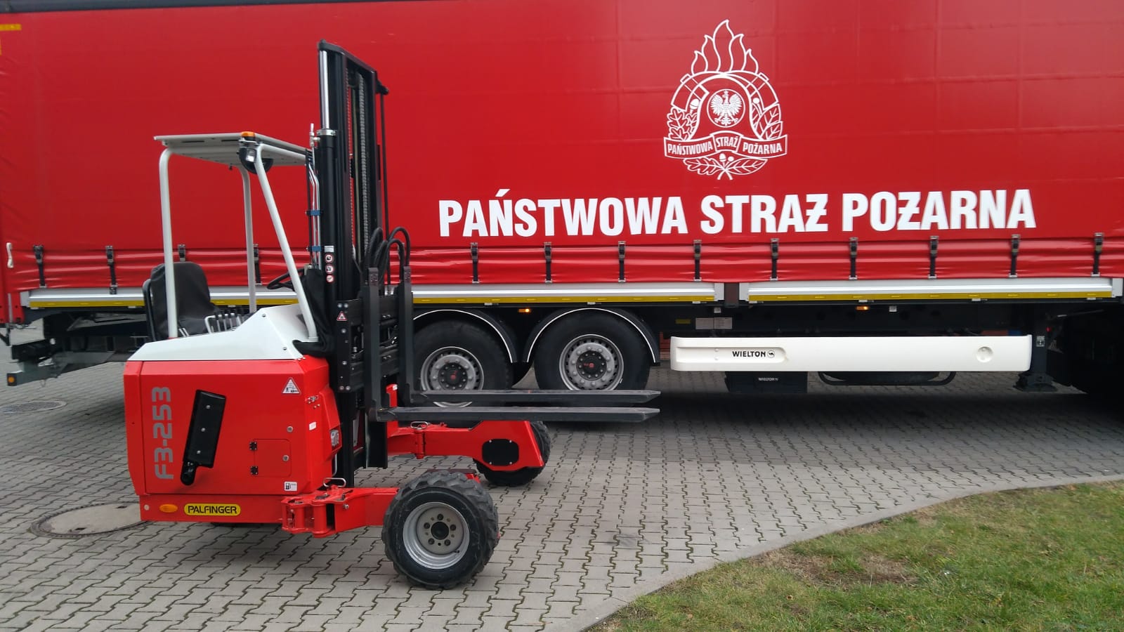 Ostrowska Komenda wzbogaciła się o nowy sprzęt specjalistyczny w postaci wózka widłowego, który stanowić będzie wyposażenie dotychczas użytkowanej naczepy.