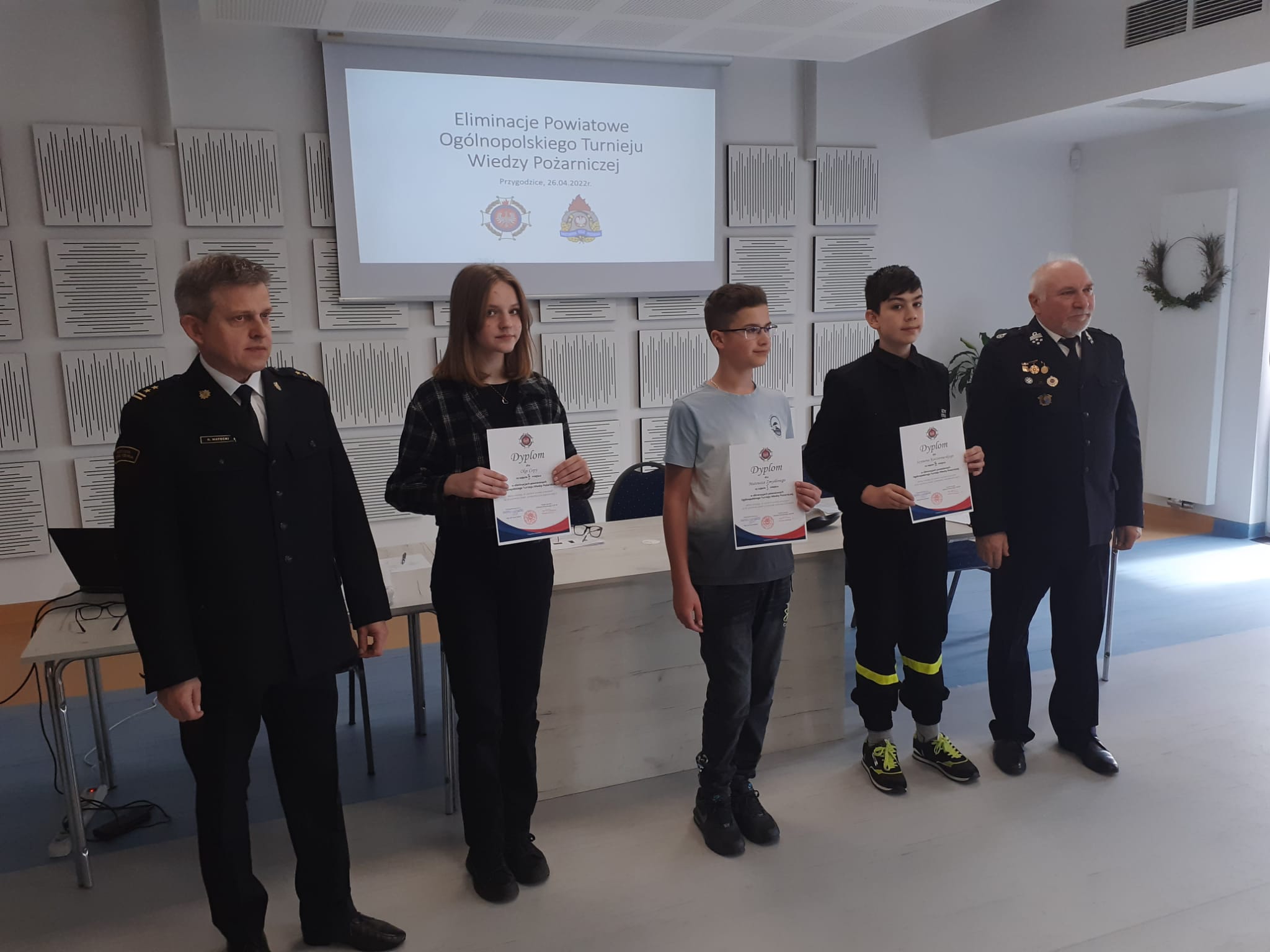 We wtorek 26 kwietnia 2022 roku w Gminnym Ośrodku Kultury w Przygodzicach odbyły się eliminacje powiatowe Ogólnopolskiego Turnieju Wiedzy Pożarniczej „Młodzież zapobiega pożarom” dla młodzieży w trzech grupach wiekowych. Organizatorem eliminacji powiatowych był Zarząd Oddziału Powiatowego ZOSP RP w Ostrowie Wielkopolskim oraz Komenda Powiatowa Państwowej Straży Pożarnej w Ostrowie Wielkopolskim.