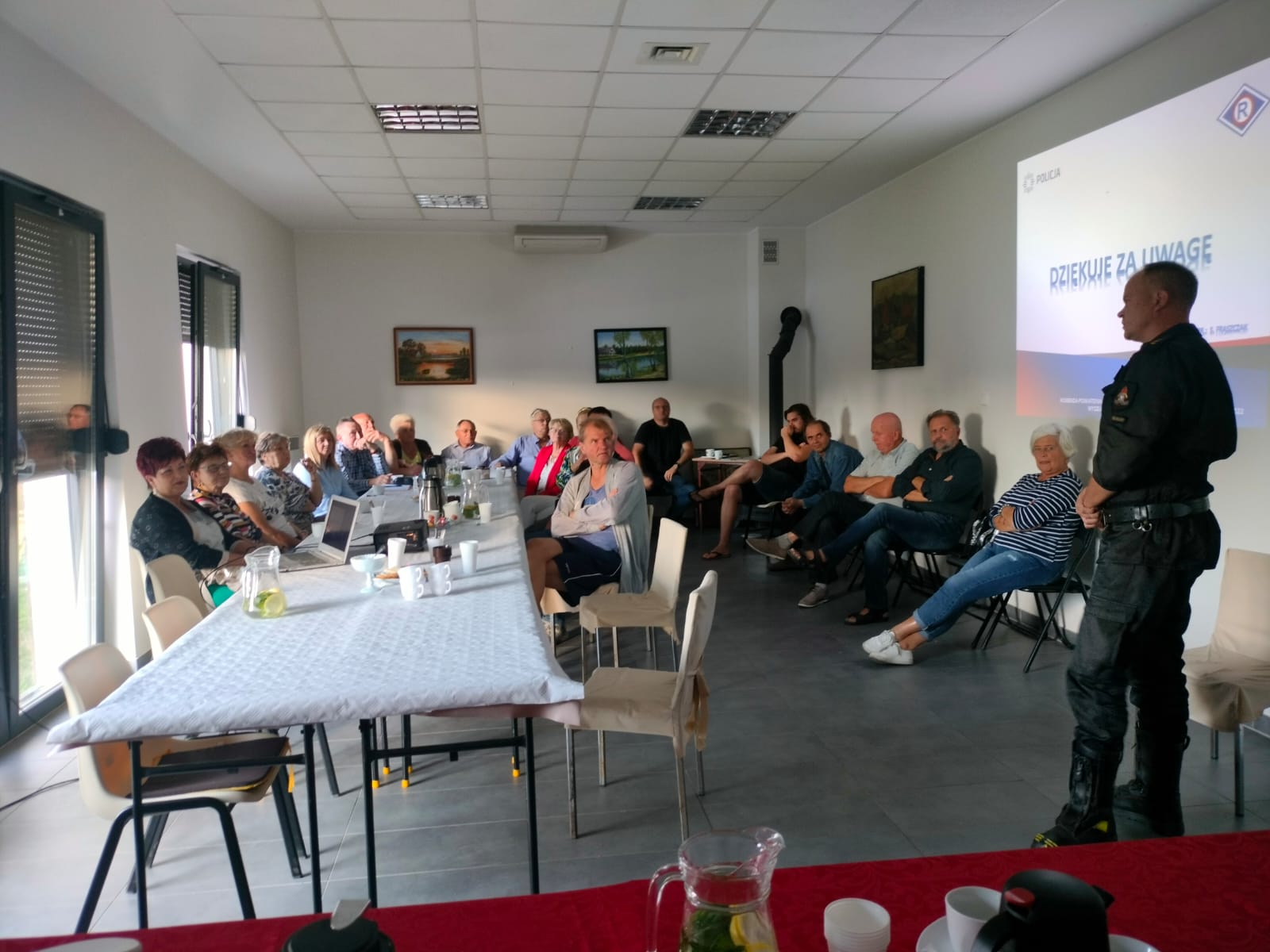 Strażacy przeprowadzili prelekcję, w trakcie której omówili zagadnienia związane z szeroko pojętą profilaktyką przeciwpożarową. Prelegenci przedstawili między innymi: najczęstsze przyczyny powstawania pożarów, zasady bezpiecznej eksploatacji urządzeń elektrycznych i grzewczych oraz zasady postępowania na wypadek powstania pożaru. Kolejny temat prelekcji dotyczył zagrożeń związanych z tlenkiem węgla. Prelegenci przedstawili m. in. rodzaje oraz zasady działania detektorów tlenku węgla, sposoby i najlepsze miejsca do ich montażu. Podczas spotkania zaprezentowano także sprzęt strażacki oraz metody udzielania pierwszej pomocy.