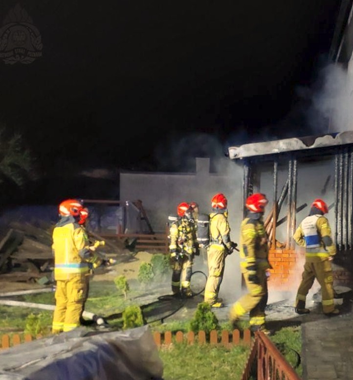 Po przybyciu na miejsce strażacy zastali rozwinięty pożar drewnianej konstrukcji altanki przy budynku murowanym. Mieszkaniec zdążył wcześniej opuścić budynek i nie potrzebował pomocy medycznej. Na miejscu obecne były również osoby postronne, które podjęły próbę gaszenia ognia przy użyciu gaśnic