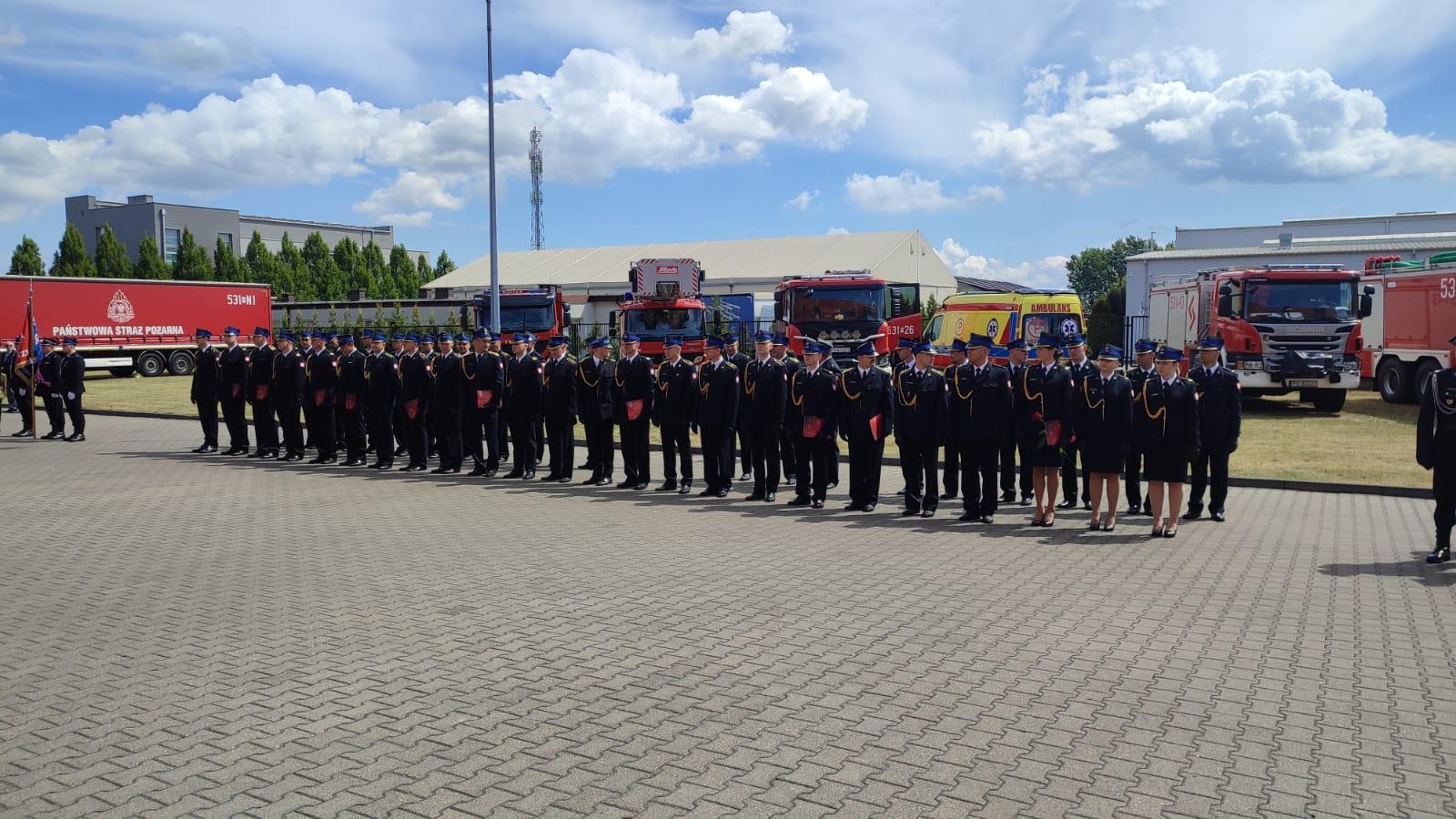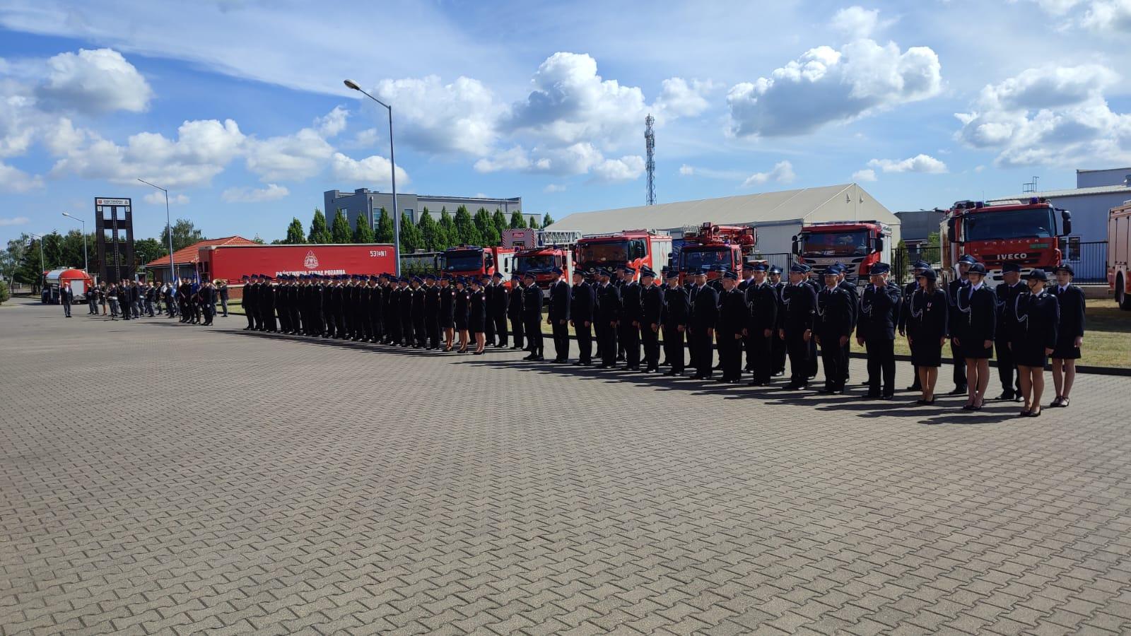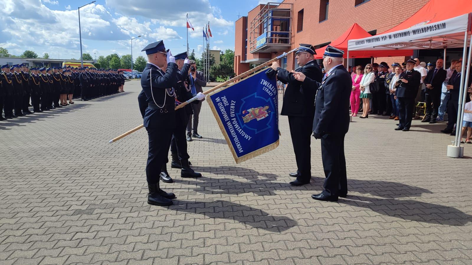 Przybyłych na uroczystość gości powitał mł. bryg. Łukasz Frątczak – Komendant Powiatowy PSP w Ostrowie Wielkopolskim, dziękując również wszystkim za uczestnictwo w tym szczególnym dla ostrowskich strażaków dniu.