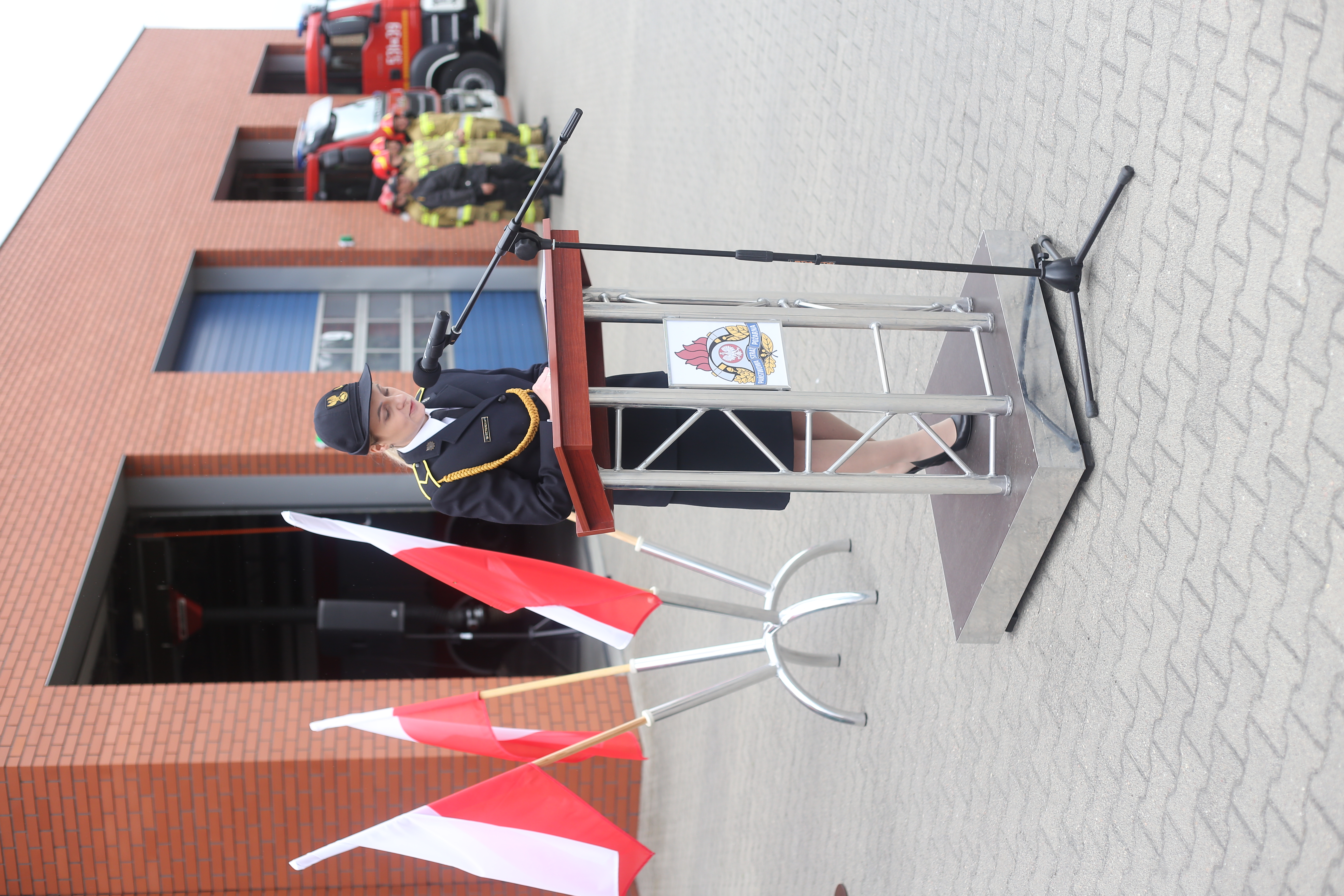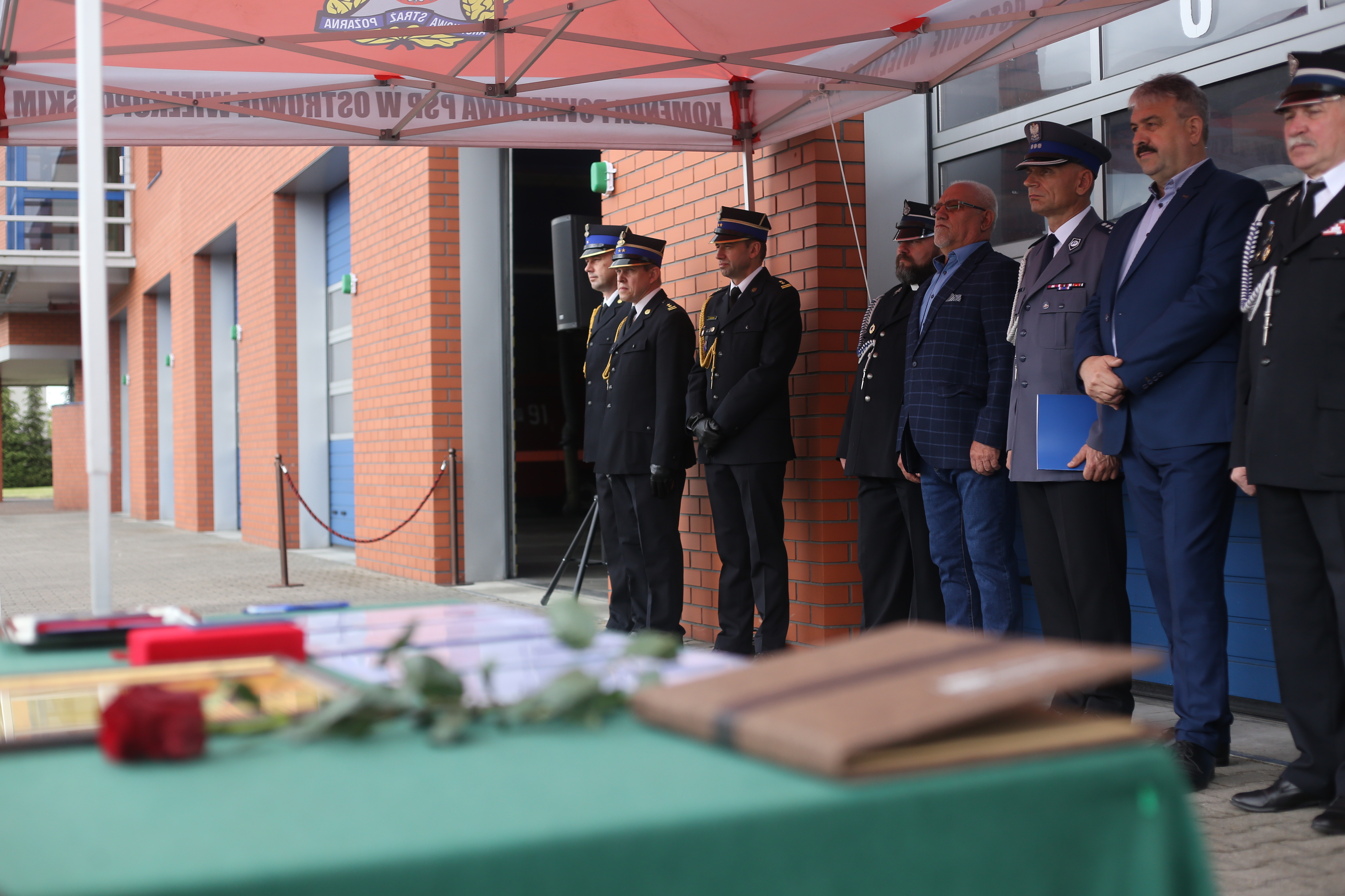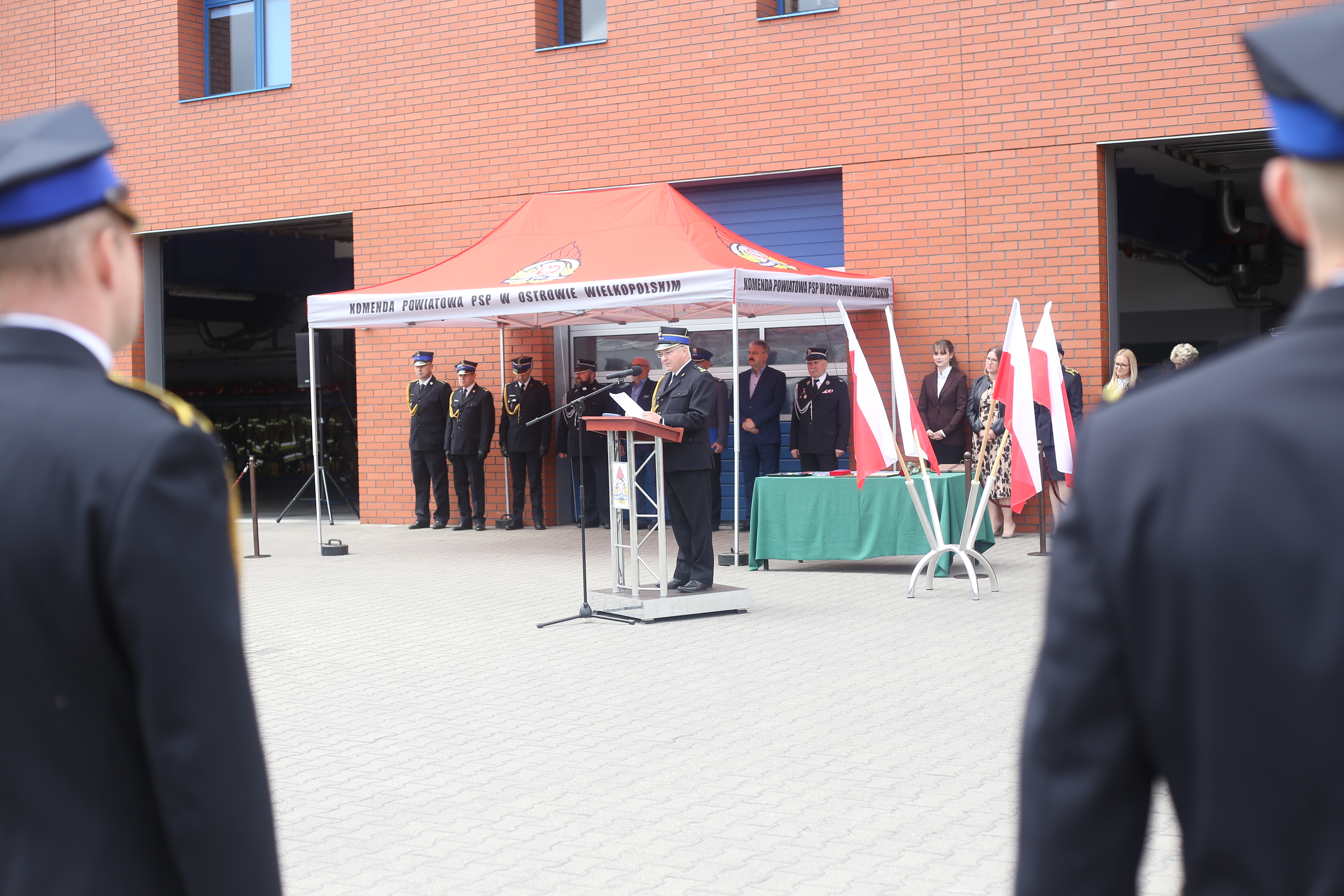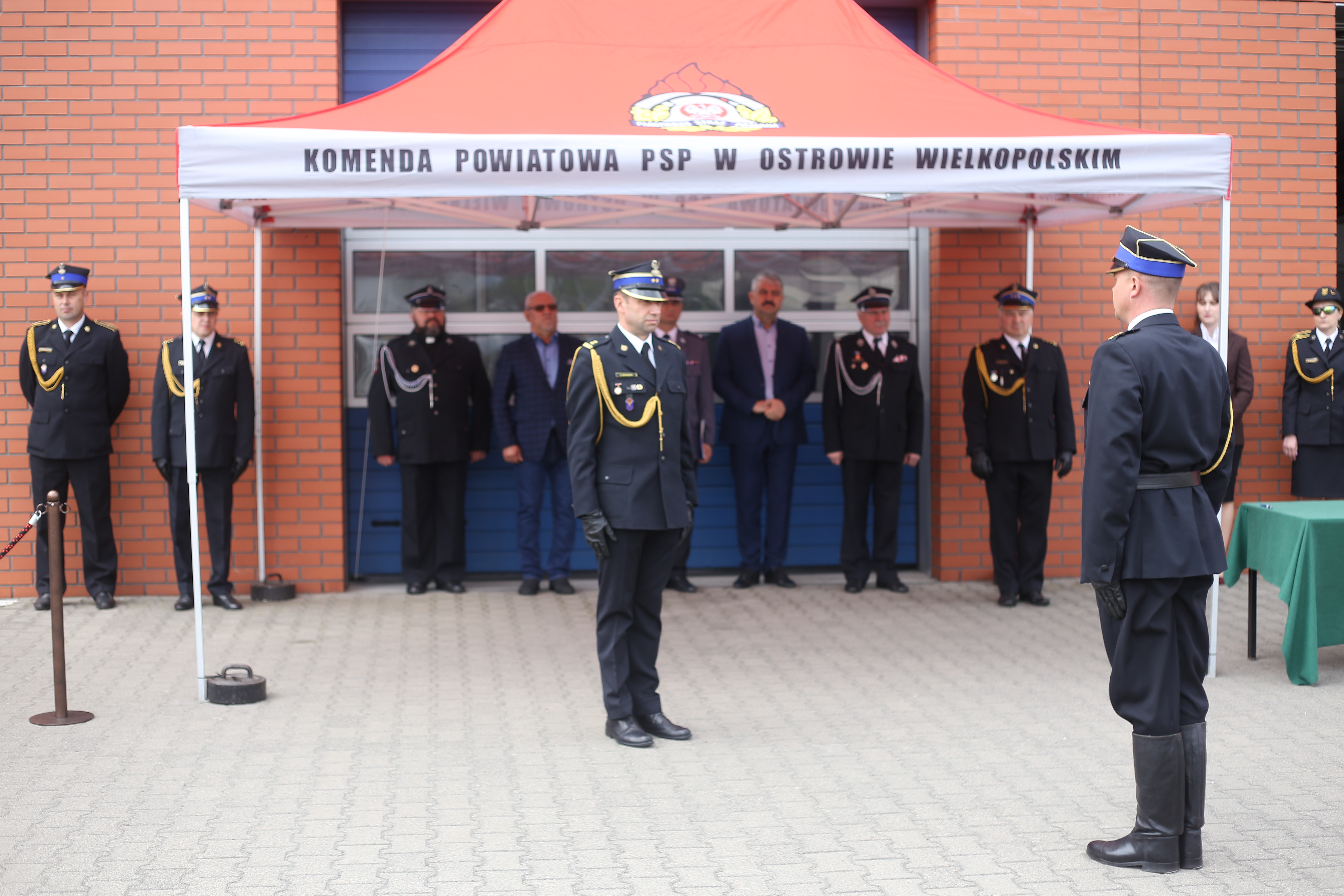 W uroczystości uczestniczyli także awansowani, odznaczeni i wyróżnieni strażacy Komendy, jak również zmiana służbowa i pracownicy systemu codziennego. Przedstawiciel Wielkopolskiego Komendanta Wojewódzkiego PSP w Poznaniu oraz zaproszeni goście wygłosili okolicznościowe przemówienia dziękując wszystkim funkcjonariuszom i pracownikom za ich służbę oraz pracę, a także zaangażowanie podczas realizacji zadań służbowych. Komendant Powiatowy Państwowej Straży Pożarnej w Ostrowie Wielkopolskim, st. bryg. Jacek Wiśniewski, złożył wszystkim najserdeczniejsze życzenia i gratulacje, dziękując za poświęcenie i ofiarną postawę podczas działań ratowniczo – gaśniczych, a także walki z epidemią koronawirusa, która dotknęła nasz Kraj.