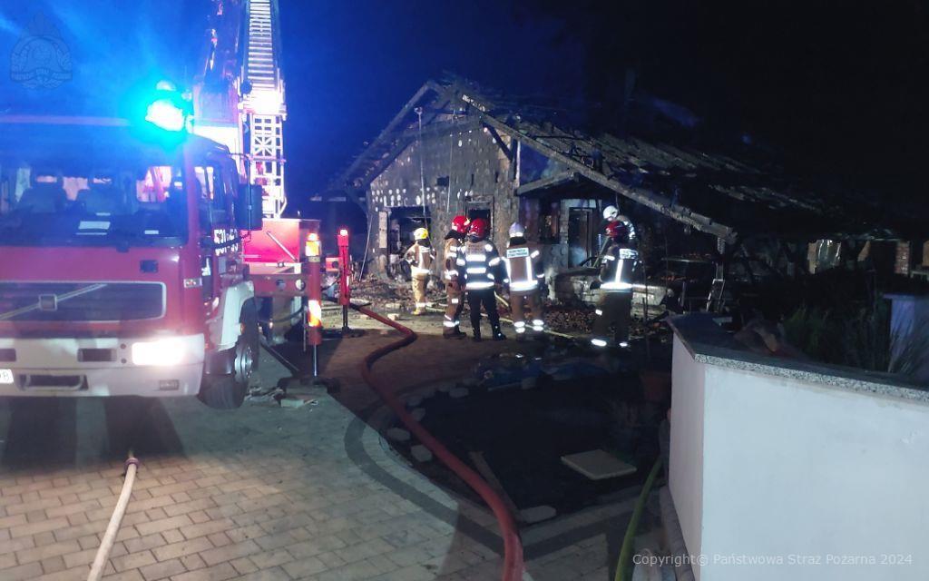 W chwili przybycia na miejsce zdarzenia pierwszych zastępów straży pożarnej stwierdzono rozwinięty pożar budynku garażowego znajdującego się w podwórzu posesji. W wyniku przeprowadzonego rozpoznania ustalono, że w sąsiedztwie palącego się obiektu znajdował się zagrożony pożarem budynek mieszkalny jednorodzinny. Właściciel nieruchomości poinformował służby, iż w objętym pożarem budynku znajdują się trzy pojazdy osobowe, a na dachu znajduje się instalacja fotowoltaiczna.