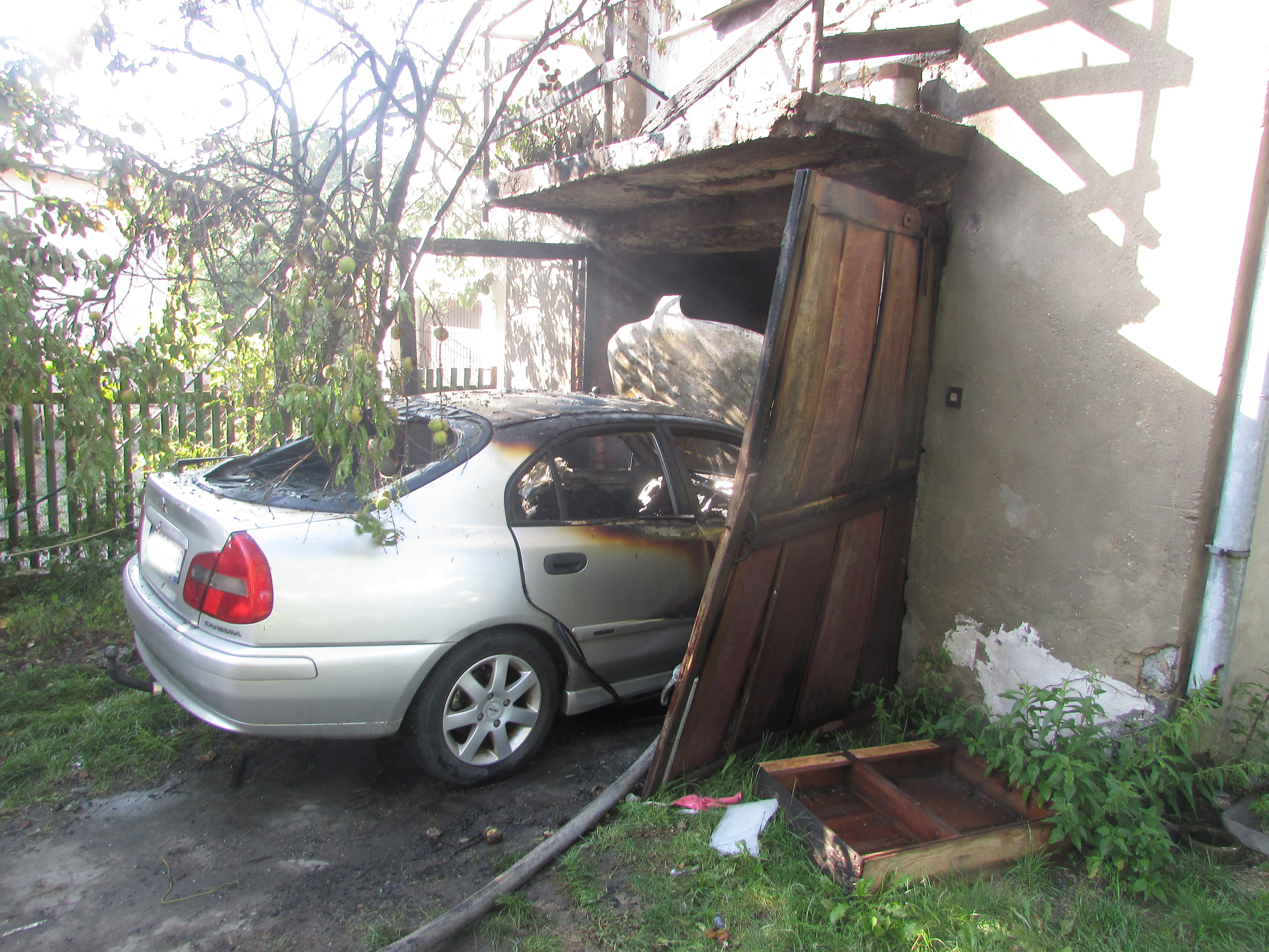 W wyniku rozpoznania przeprowadzonego przez przybyłe zastępy ustalono, że w garażu znajduje się samochód osobowy, który również objęty był pożarem. Działania polegały na zabezpieczeniu miejsca zdarzenia, podaniu jednego prądu wody w natarciu do wnętrza palącego się garażu oraz jednego prądu wody na palący się samochód.