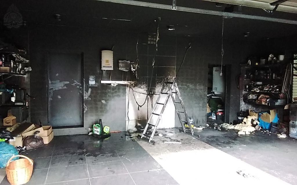 Po przybyciu na miejsce zdarzenia pierwszych zastępów straży pożarnej zostało przeprowadzone rozpoznanie, w wyniku którego ustalono, że pożarem objęte pomieszczenie garażowe w budynku mieszkalnym, jednorodzinnym. Z informacji uzyskanych od właściciela wynikało, że najprawdopodobniej zapalił się falownik od instalacji fotowoltaicznej. Działania strażaków, którzy ze względu na bardzo duże zadymienie musieli pracować w aparatach ochrony układu oddechowego, polegały na zabezpieczeniu miejsca zdarzenia oraz przeszukaniu pomieszczeń garażu z jednoczesnym podjęciem działań gaśniczych. W wyniku przeprowadzonego rozpoznania nie stwierdzono osób poszkodowanych wewnątrz. Ustalono, iż prawdopodobną przyczyna pożaru było pozostawianie w garażu bez dozoru włączonej suszarki do grzybów.