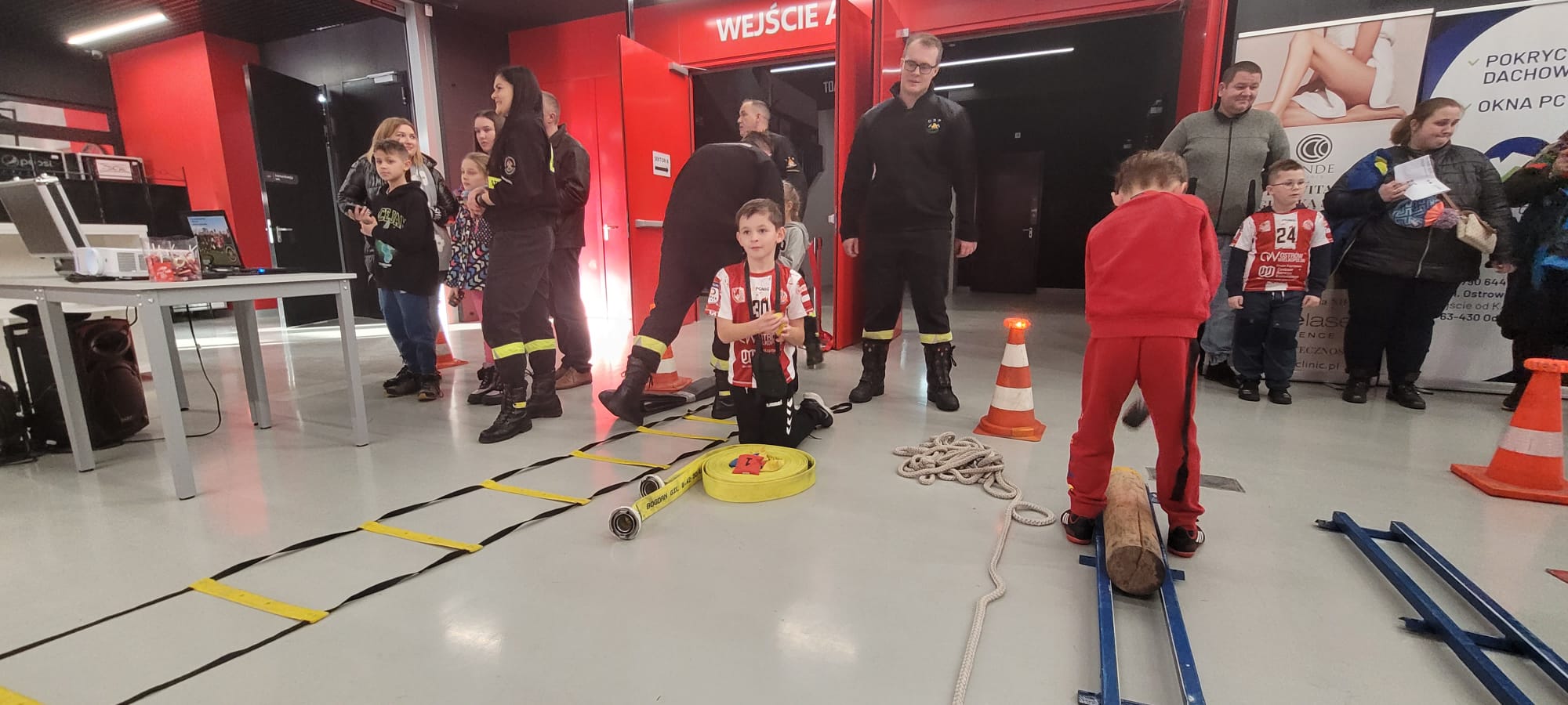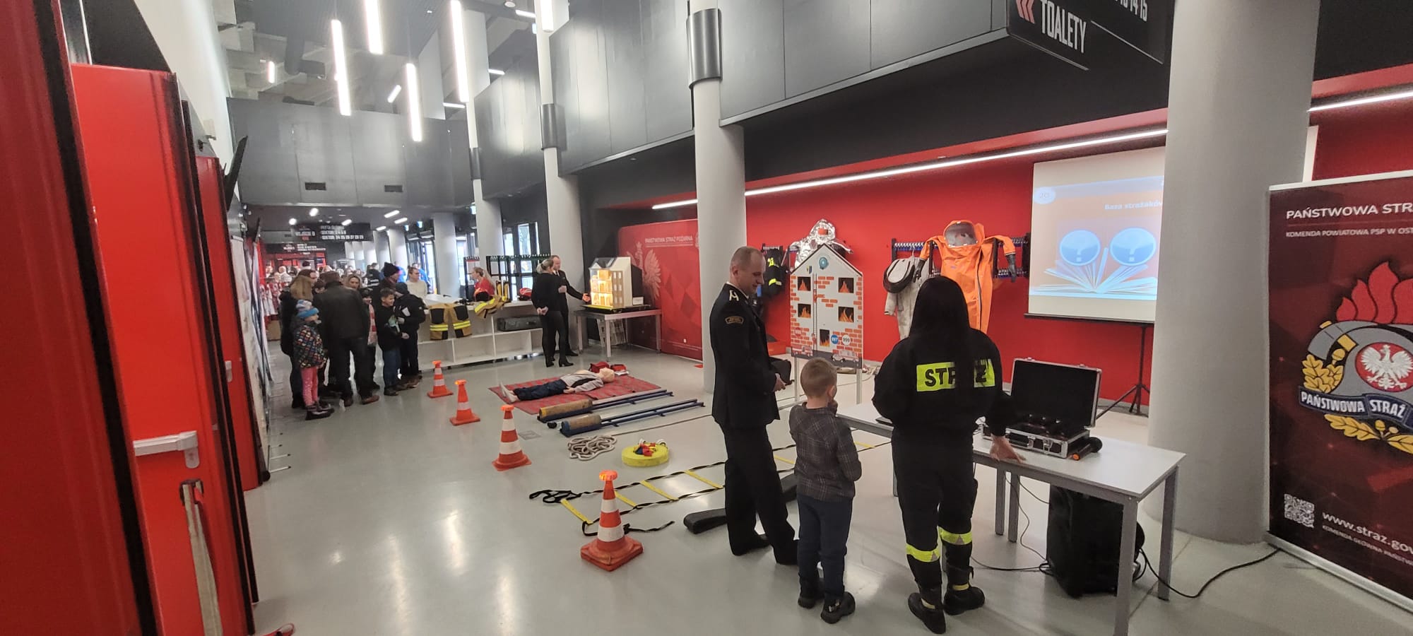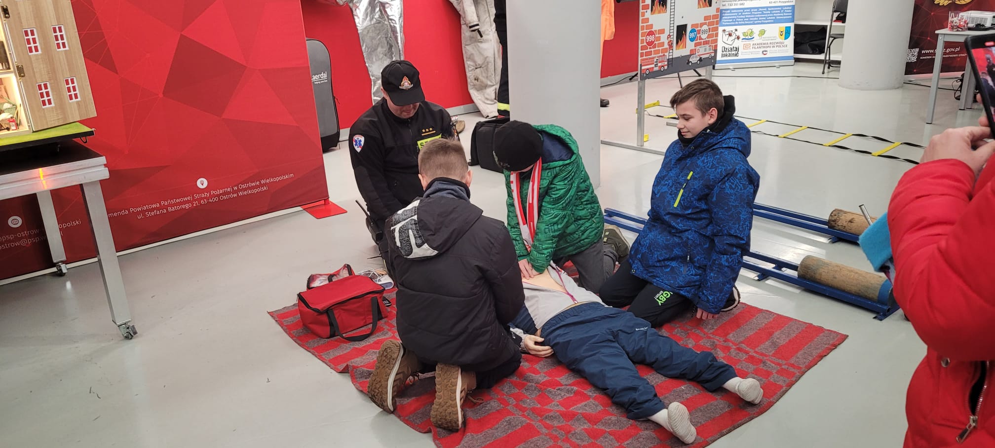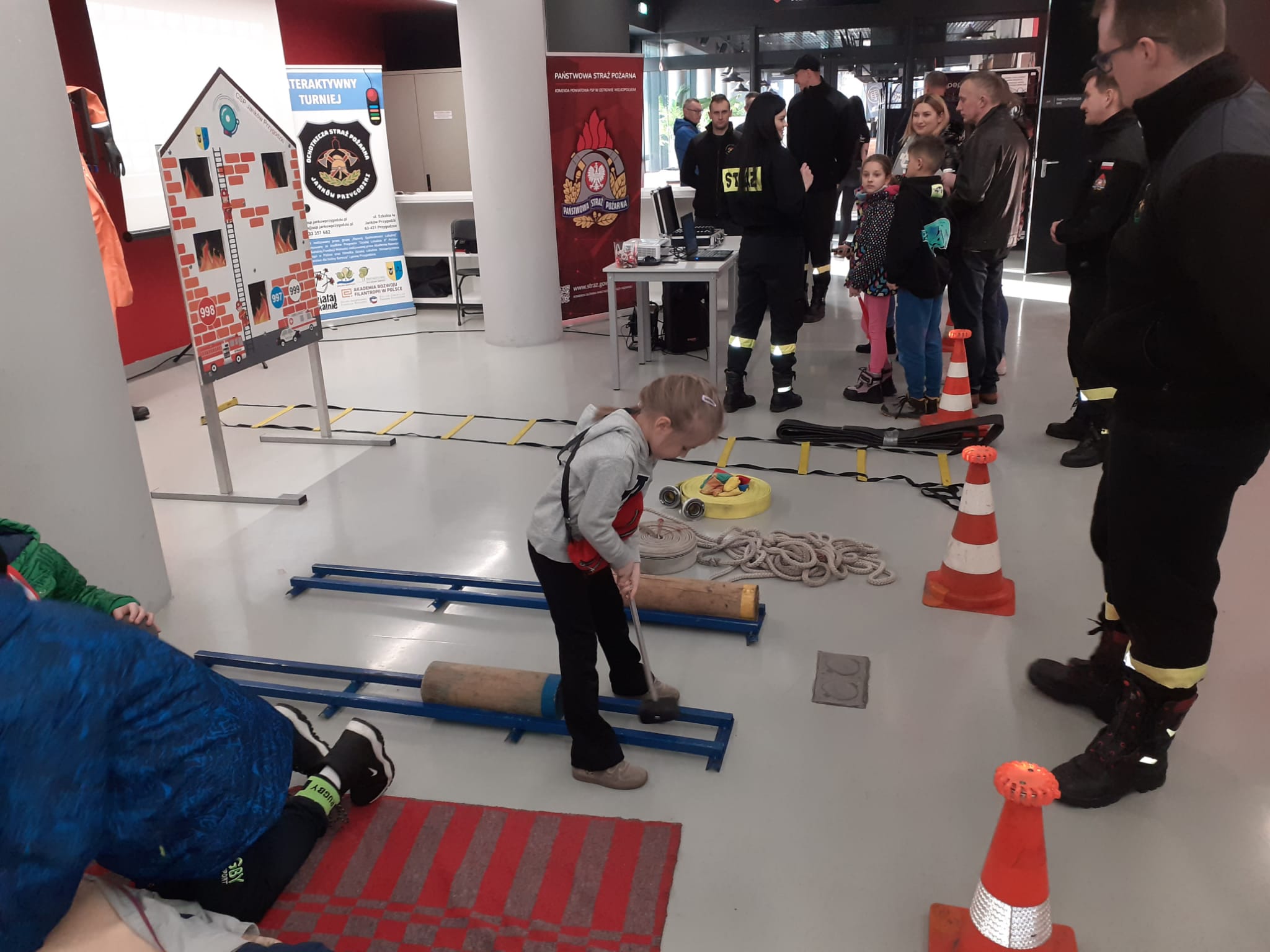 Przy pomocy mobilnego symulatora zagrożeń, a także fantomu z ćwiczebnym defibrylatorem przybliżono uczestnikom wiedzę dotyczącą zagrożeń pożarowych i innych niebezpiecznych zdarzeń, jakie mogą mieć miejsce w domu jednorodzinnym oraz zagadnienia związane z udzielaniem pierwszej pomocy osobie poszkodowanej. Dużym zainteresowaniem wśród dzieci cieszył się tor przeszkód strażaka ratownika, a także quiz multimedialny z zakresu tematyki pożarniczej. Zainteresowani mieli również możliwość zapoznania się ze sprzętem będącym na wyposażeniu wozów strażackich.