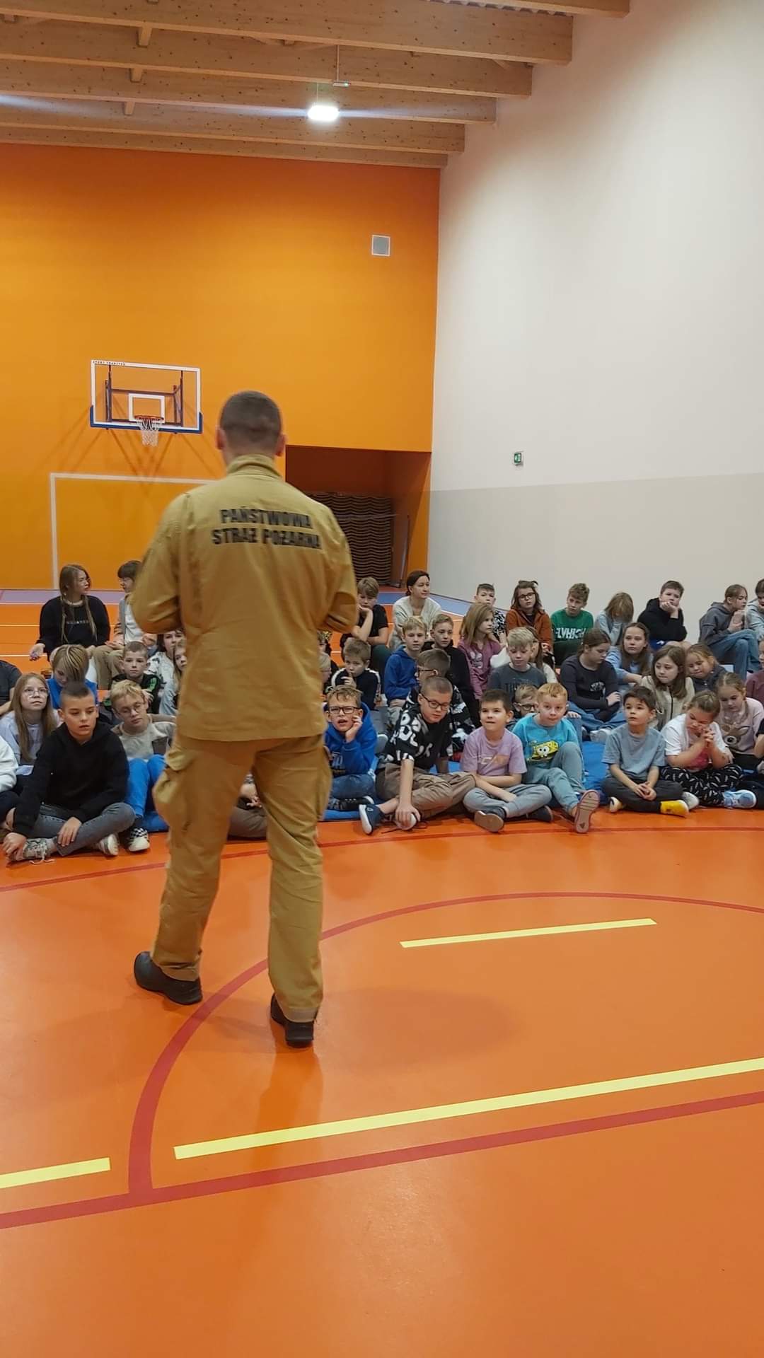 Prewencja społeczna wśród najmłodszych – wizyta strażaka w Zespole Szkół im. Jana Pawła II w Ociążu