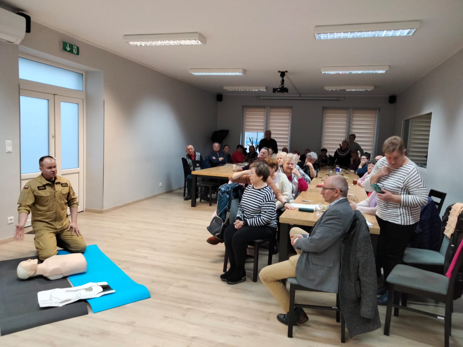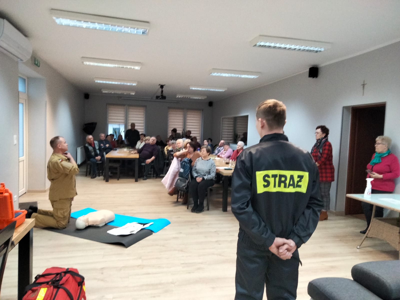 Podczas spotkania strażacy przybliżyli seniorom wiedzę z zakresu udzielania pierwszej pomocy w nagłych przypadkach, specyfiki działania i wykorzystywania zautomatyzowanego defibrylatora zewnętrznego AED oraz przećwiczyli m.in. czynności resuscytacyjne na fantomie. Przedstawiono także zagadnienia związane z profilaktyką pożarową w sezonie grzewczym.