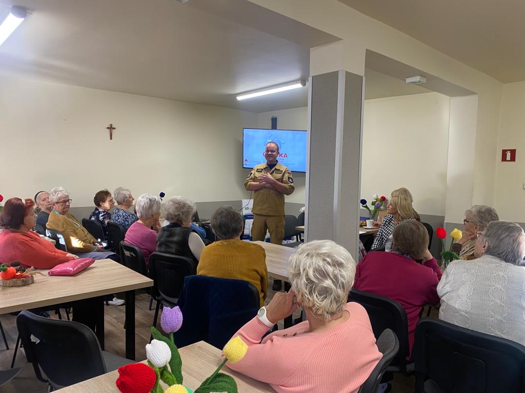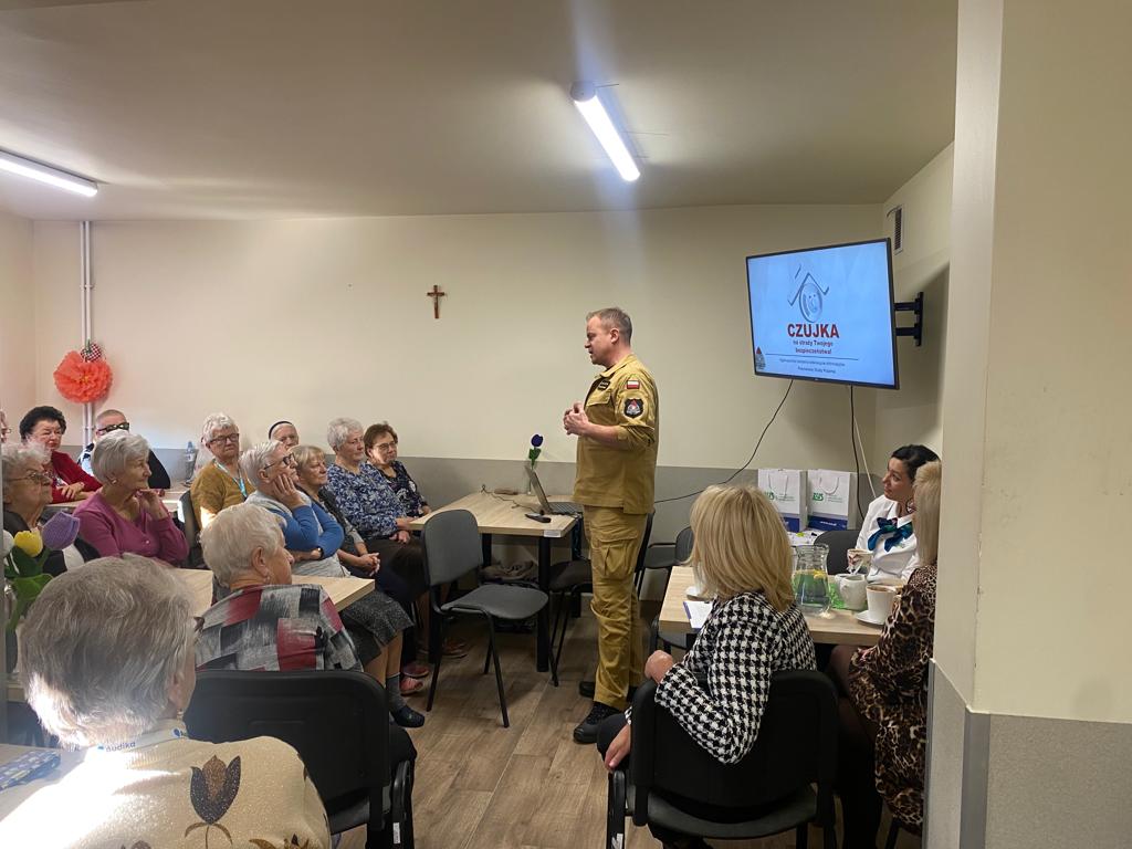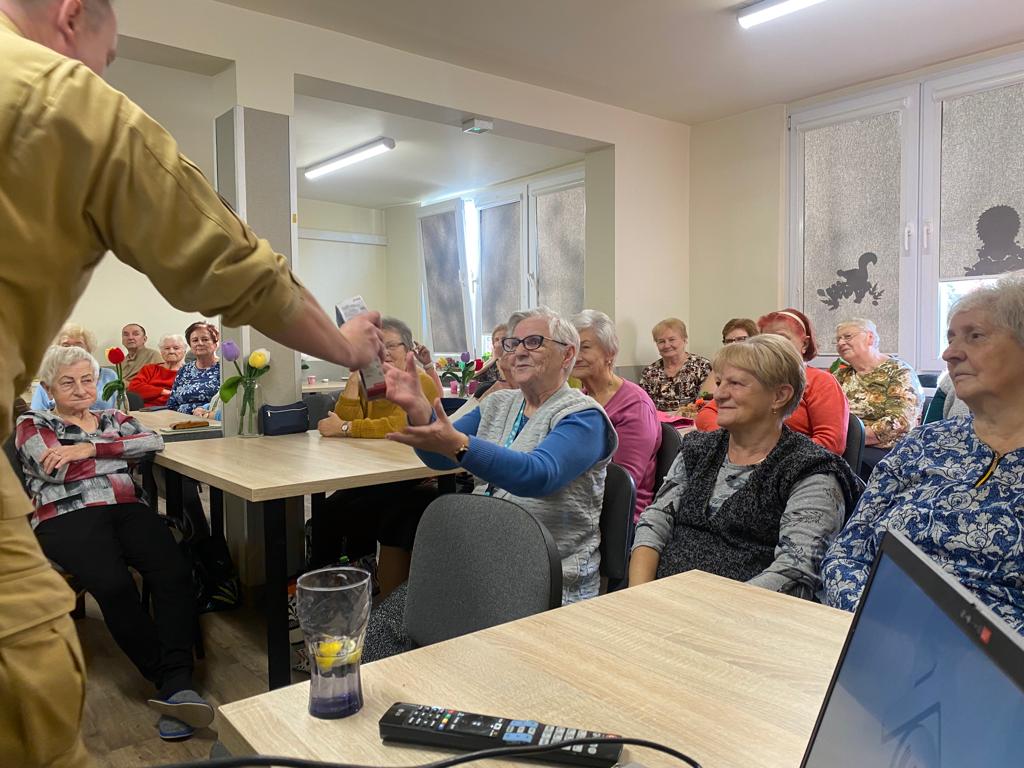 Spotkanie było także okazją do zapoznania seniorów z przedsięwzięciem zrealizowanym przez tut. Komendę pn. „Podnoszenie świadomości ekologicznej społeczeństwa poprzez zakup sprzętu i produkcję filmów do celów edukacji ekologicznej dla Komendy Powiatowej Państwowej Straży Pożarnej w Ostrowie Wielkopolskim”. W ramach projektu wspartego między innymi przez Wojewódzki Fundusz Ochrony Środowiska i Gospodarki Wodnej w Poznaniu pozyskano czujki tlenku węgla i dymu, które to rozdano uczestniczącym w spotkaniu seniorom.
