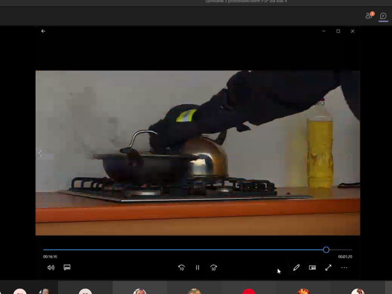Obecnie w związku z panującymi obostrzeniami zdecydowaliśmy się pilotażowo na zdalne prowadzenie edukacji dzieci i młodzieży szkolnej. W dniu 9 marca 2021 r. odbyła się w tej formie pogadanka z uczniami klas 4 Szkoły Podstawowej im. Mirosława Ferića w Ostrowie Wielkopolskim. Zajęcia odbyły się poprzez platformę do nauczania zdalnego wykorzystywaną przez szkołę, tematyką spotkania objęto przede wszystkim zagadnienia dotyczące numerów alarmowych i prawidłowego zgłaszania zdarzeń, a także zasad bezpiecznego zachowania w domu. Było to pierwsze spotkanie, które odbyło się w ramach całego cyklu zaplanowanego do końca roku szkolnego.