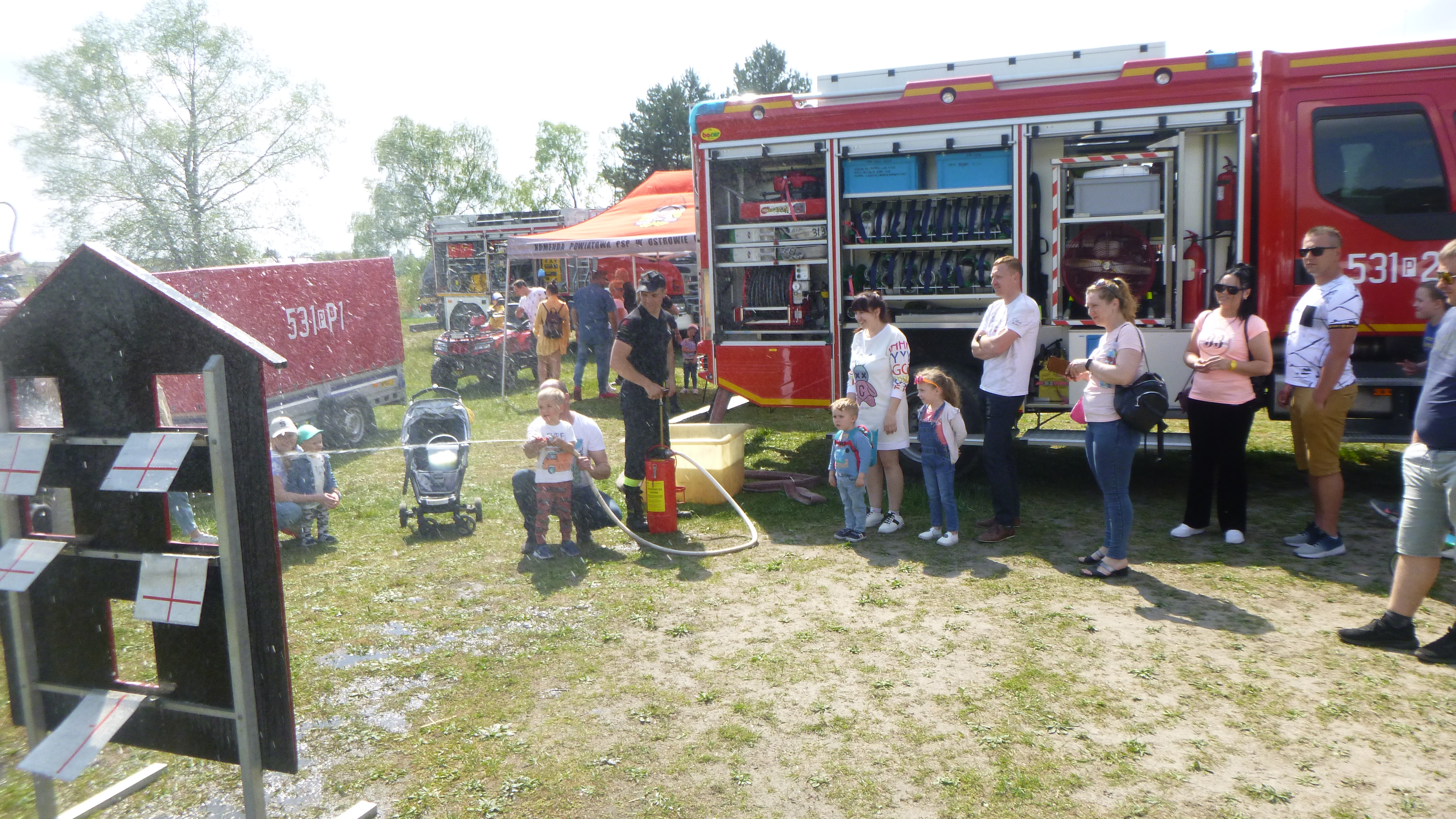 Na swoim stanowisku strażacy prezentowali także sprzęt i pojazdy wykorzystywany na co dzień w służbie, najmłodsi mieli również okazję próbować „ugasić pożar” obsługując hydronetkę. Ponadto dzieci mogły poczuć się jak prawdziwi strażacy zasiadając w prezentowanych samochodach pożarniczych i przymierzając bojowe ubrania.
