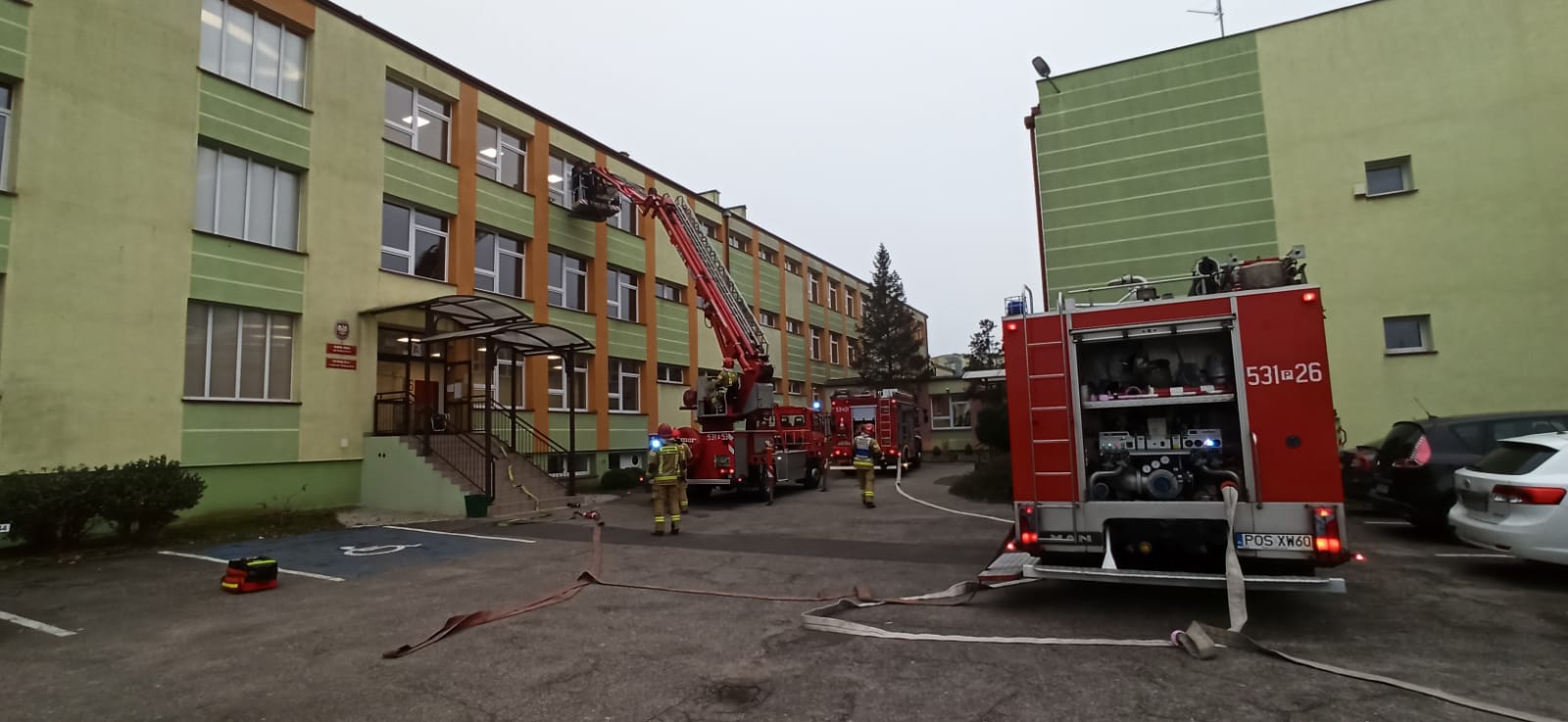 Jednocześnie wprowadzono dodatkowy wariant polegający na symulacji pożaru w jednym z pomieszczeń szkoły. W ćwiczeniach brały udział zastępy z JRG Ostrów Wielkopolski. Strażacy po przybyciu na miejsce zdarzenia mieli za zadanie dotarcie do pomieszczenia, w którym wybuchł pożar z jednoczesnym przeszukiwaniem pomieszczeń szkoły. W wyniku rozpoznania ustalono, iż dwie osoby nie opuściły zagrożonego pożarem budynku i zostały ewakuowane z budynku szkoły przez strażaków przy użyciu podnośnika hydraulicznego. Po osiągniętym celu, na boisku szkoły, wspólne z dyrekcją omówiono przebieg i zasady bezpiecznej ewakuacji, po czym uczniowie wraz z nauczycielami powrócili do zajęć lekcyjnych.
