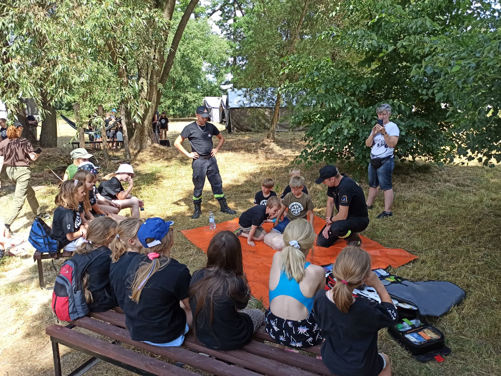 Ponadto, wraz z policjantami ostrowskiej Komendy, przeprowadzona została prelekcja na temat bezpiecznego wypoczynku. Kontrolnie sprawdzono także drogi ewakuacji oraz podręczny sprzęt gaśniczy. Strażacy z Jednostki Ratowniczo-Gaśniczej udzielili również instruktażu z pierwszej pomocy.