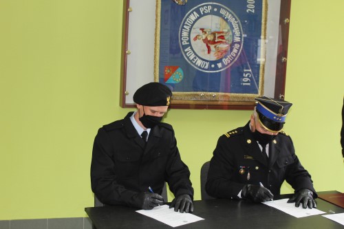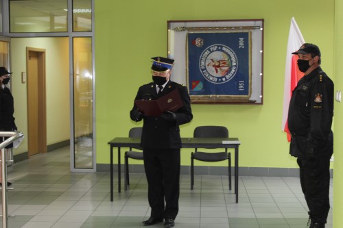Dzisiejsza uroczystość była również okazją do wręczenia 4 awansowanym strażakom aktów mianowania na wyższe stopnie służbowe w korpusie podoficerów i szeregowych Państwowej Straży Pożarnej. Akty mianowania otrzymali: ogn. Adam Kołodziej, st. sekc. Tomasz Ratajek, st. str. Wojciech Hełka, st. str. Bartosz Jasiński.