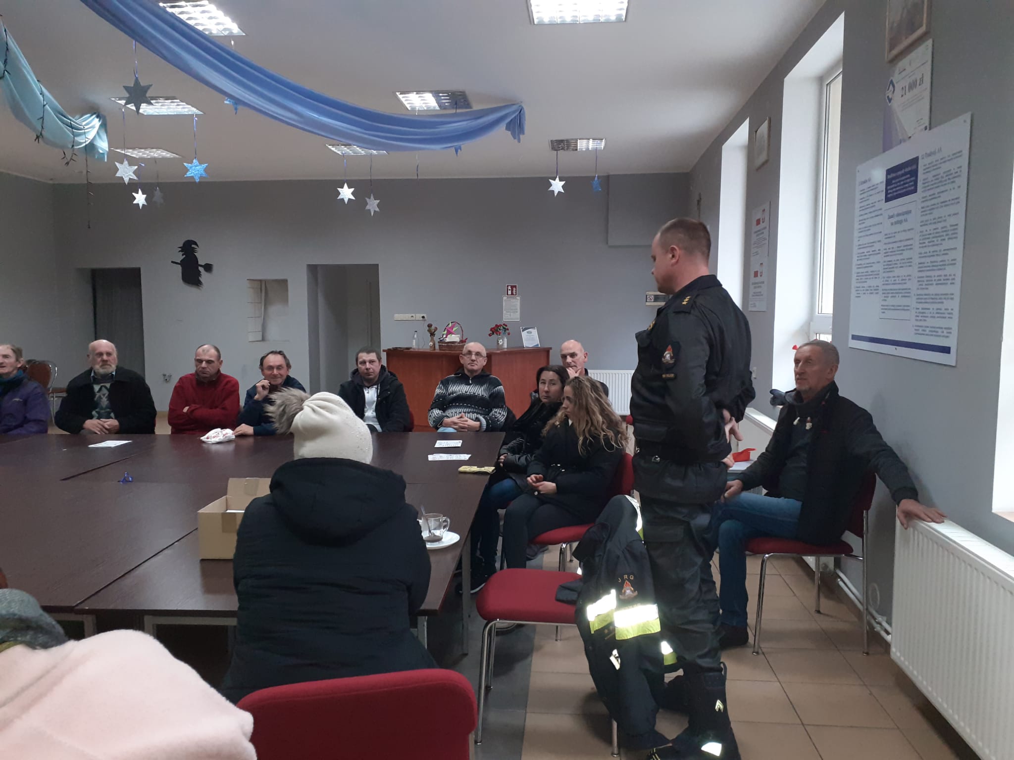 Podczas spotkania funkcjonariusze Komendy przeprowadzili prelekcję, w trakcie której omówili zagadnienia związane z szeroko pojętą profilaktyką przeciwpożarową. Prelegenci przedstawili między innymi: najczęstsze przyczyny powstawania pożarów, zasady bezpiecznej eksploatacji urządzeń elektrycznych i grzewczych oraz zasady postępowania na wypadek powstania pożaru. Kolejny temat prelekcji dotyczył zagrożeń związanych z tlenkiem węgla.