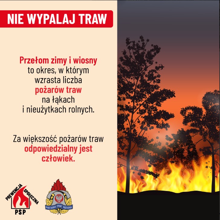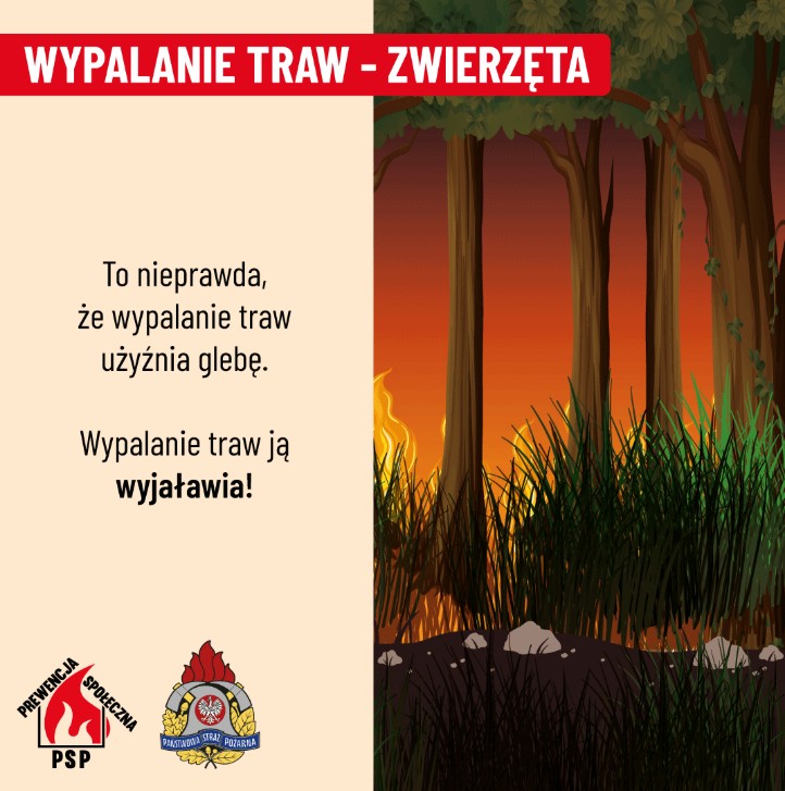 🔥 Edukowanie o konsekwencjach prawnych – wypalanie traw jest w Polsce nielegalne i grożą za to wysokie kary.
