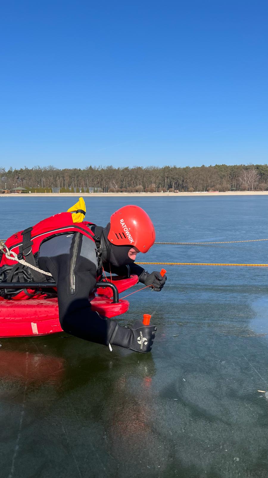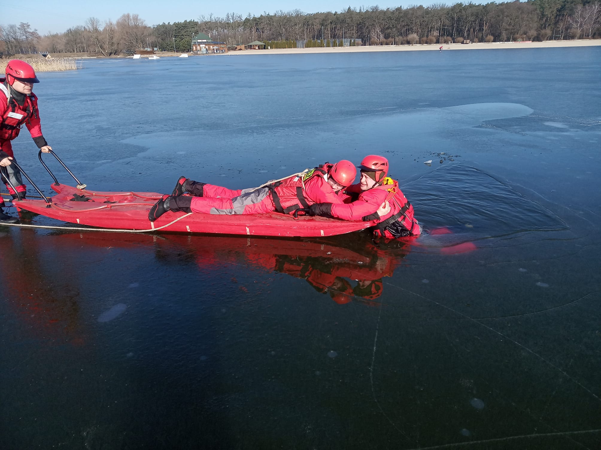 W sobotnie przedpołudnie na zamarzniętym akwenie „Piaski Szczygliczka” w Ostrowie Wielkopolskim odbyły się ćwiczenia z zakresu ratownictwa lodowego.