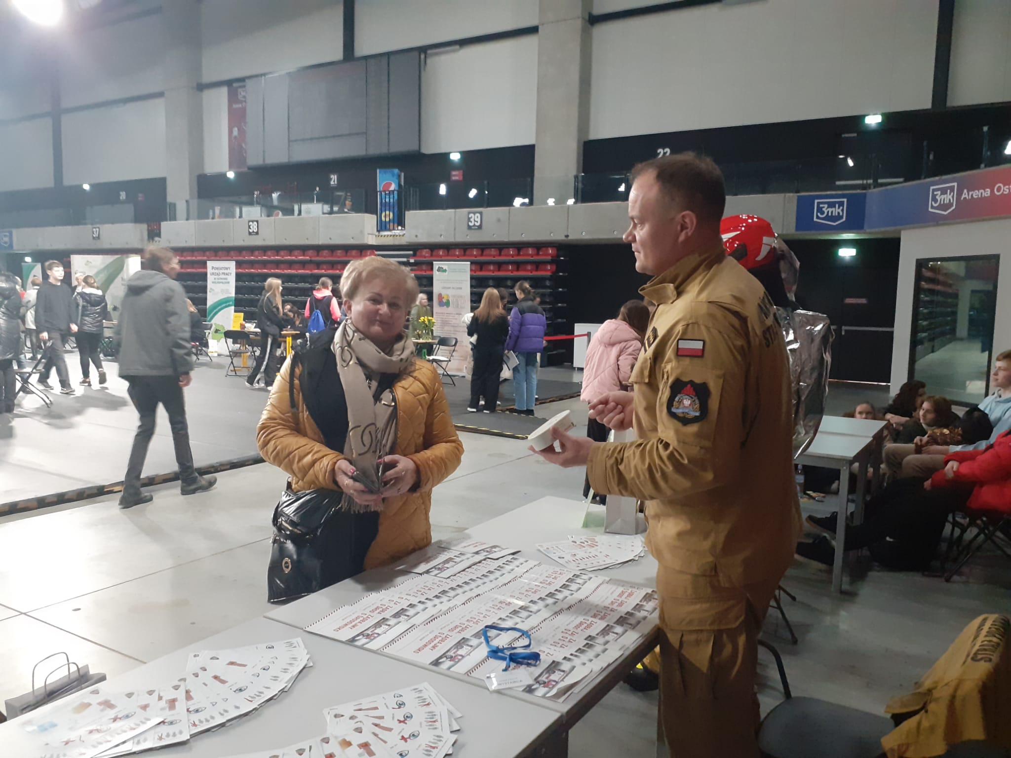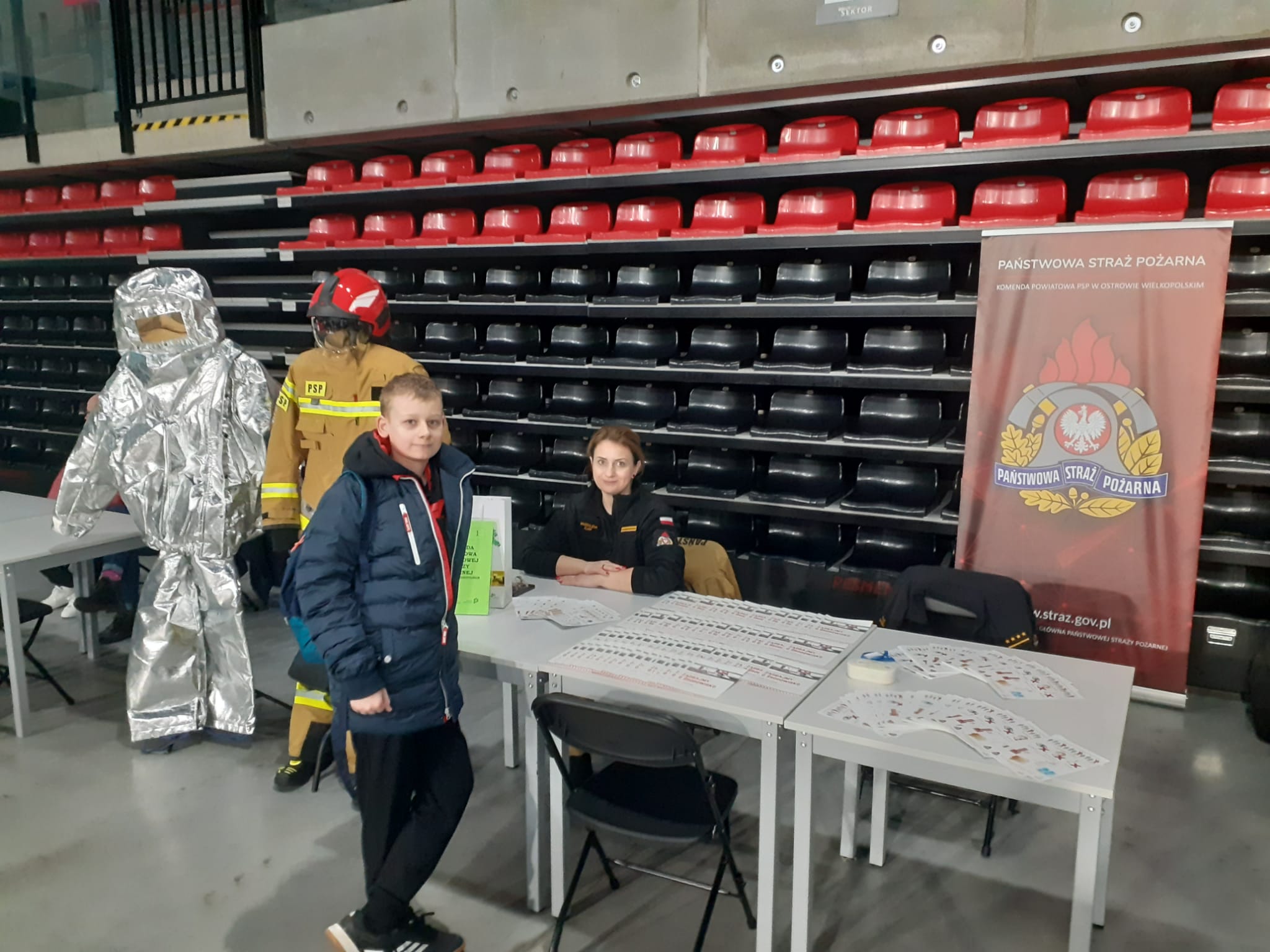 Komenda Powiatowa Państwowej Straży Pożarnej w Ostrowie Wielkopolskim wystawiła także swoje stanowisko promujące zawód strażaka. Zainteresowani odwiedzający stoisko mieli możliwość zapoznania się z zawodem strażaka oraz z wymaganiami stawianymi przy naborze do służby.