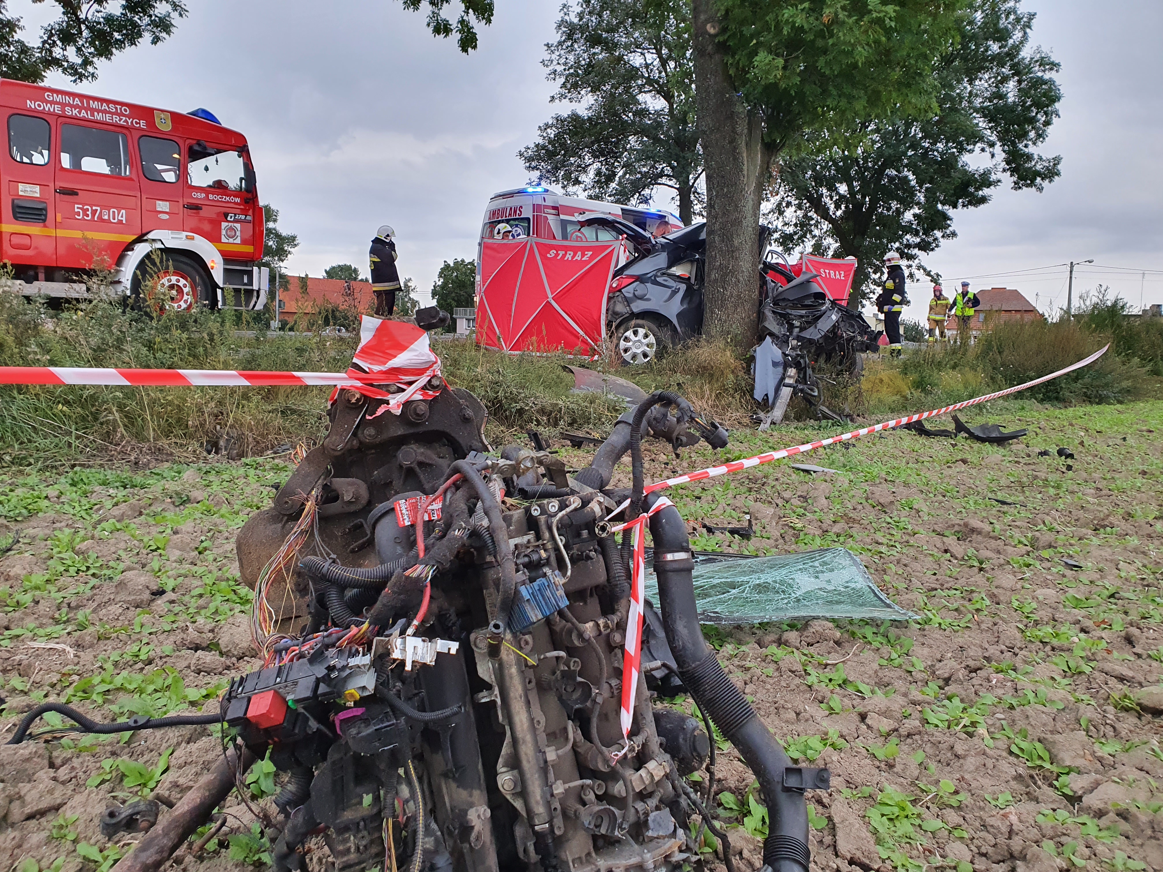 W dniu 21 września tuż po godzinie 17 SKKP PSP w Ostrowie wielkopolskim otrzymało zgłoszenie o wypadku samochodu osobowego w miejscowości Żakowice gmina N. Skalmierzyce.