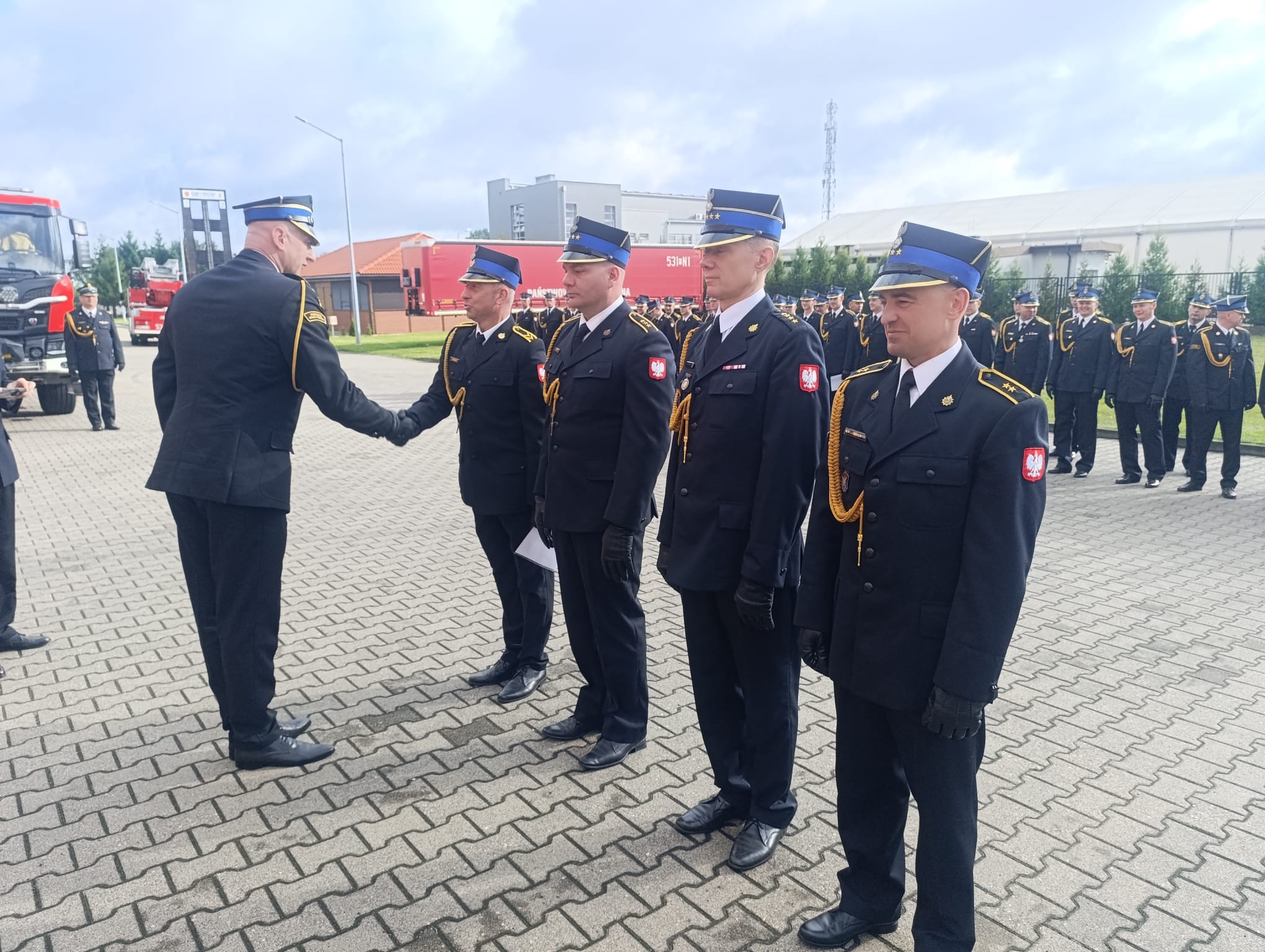 W dniu 11 września 2025 roku na placu Komendy Powiatowej Państwowej Straży Pożarnej w Ostrowie Wielkopolskim odbyła się uroczysta zbiórka, podczas której wręczone zostały mianowania na wyższe stanowiska służbowe, nagrody jubileuszowe oraz świadczenia motywacyjne i za długoletnią służbę.