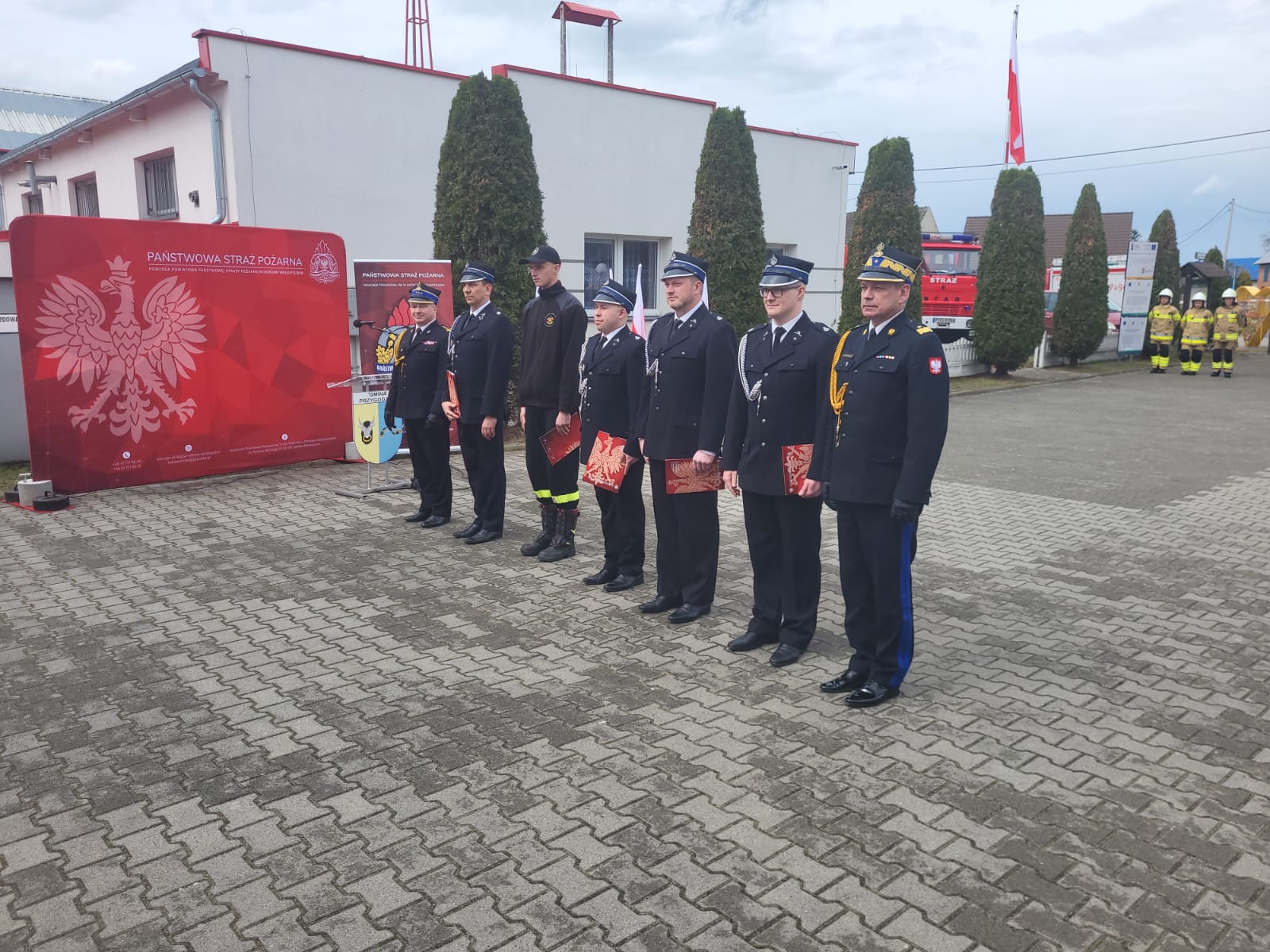 Podczas uroczystości nastąpiło również wręczenie listów gratulacyjnych dla sześciu druhów Ochotniczej Straży Pożarnej z Jankowa Przygodzkiego, którzy wzięli udział w tegorocznych Międzynarodowych Targach Poznańskich rozpowszechniając wiedzę z zakresu tematyki pożarniczej.