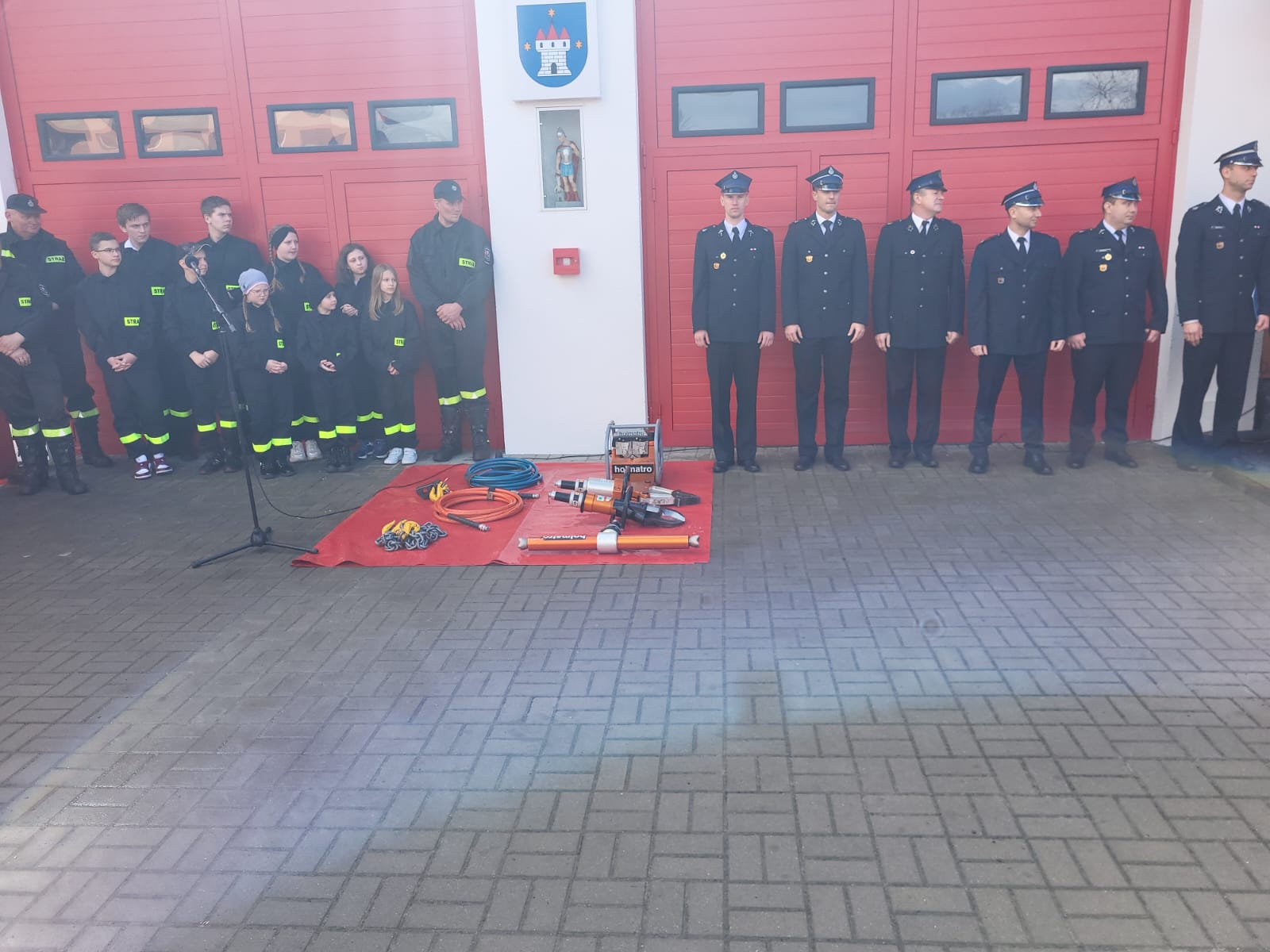 Sprzęt ratowniczy w postaci samochodu lekkiego rozpoznania ratowniczego VW T4 otrzymali druhowie z OSP Daniszyn, natomiast druhowie OSP Radłów wzbogacili swoje wyposażenie o średni zestaw hydrauliczny Holmatro składający się z pompy hydraulicznej, nożyc, rozpieraka oraz cylindra rozpierającego.