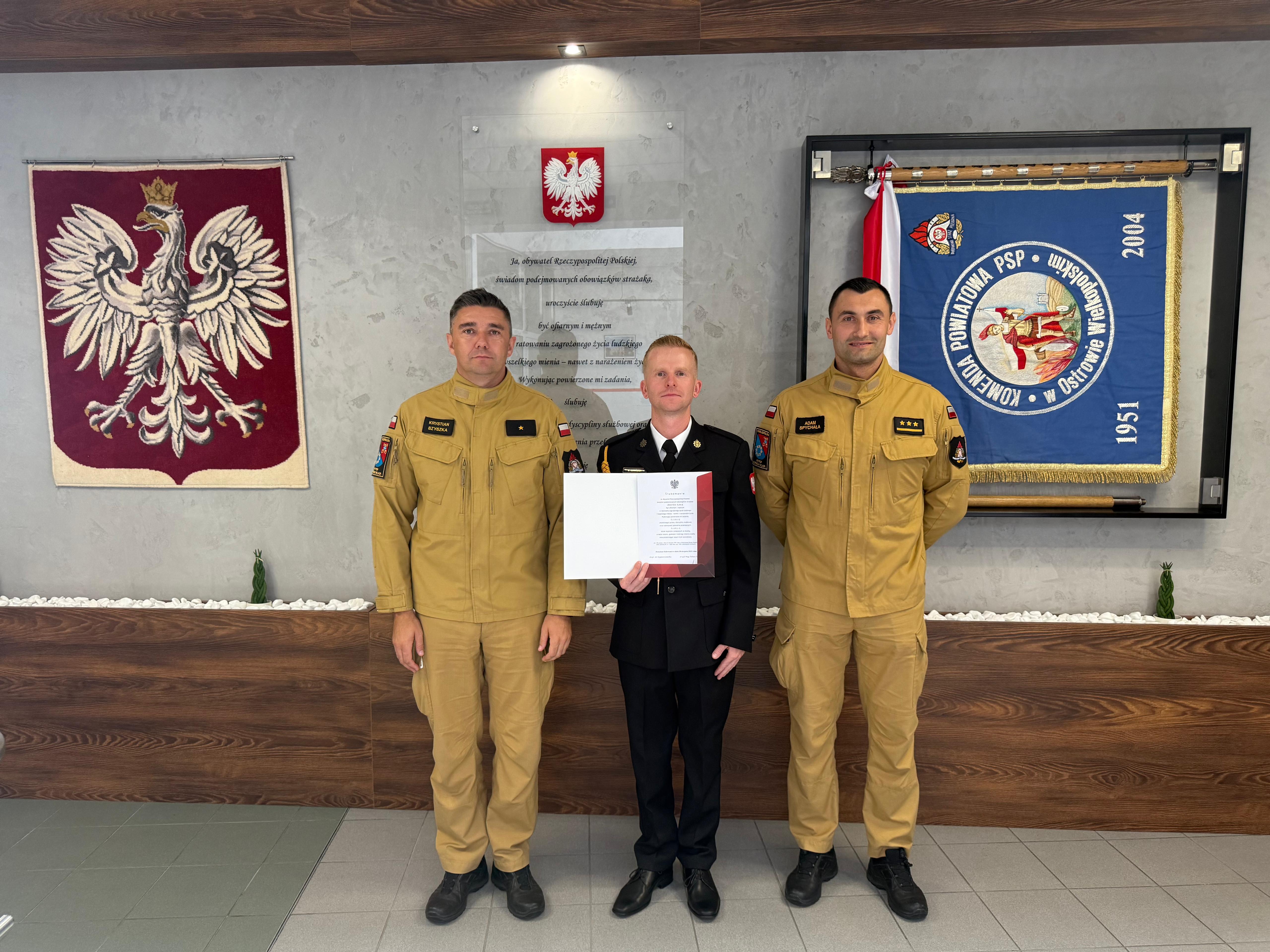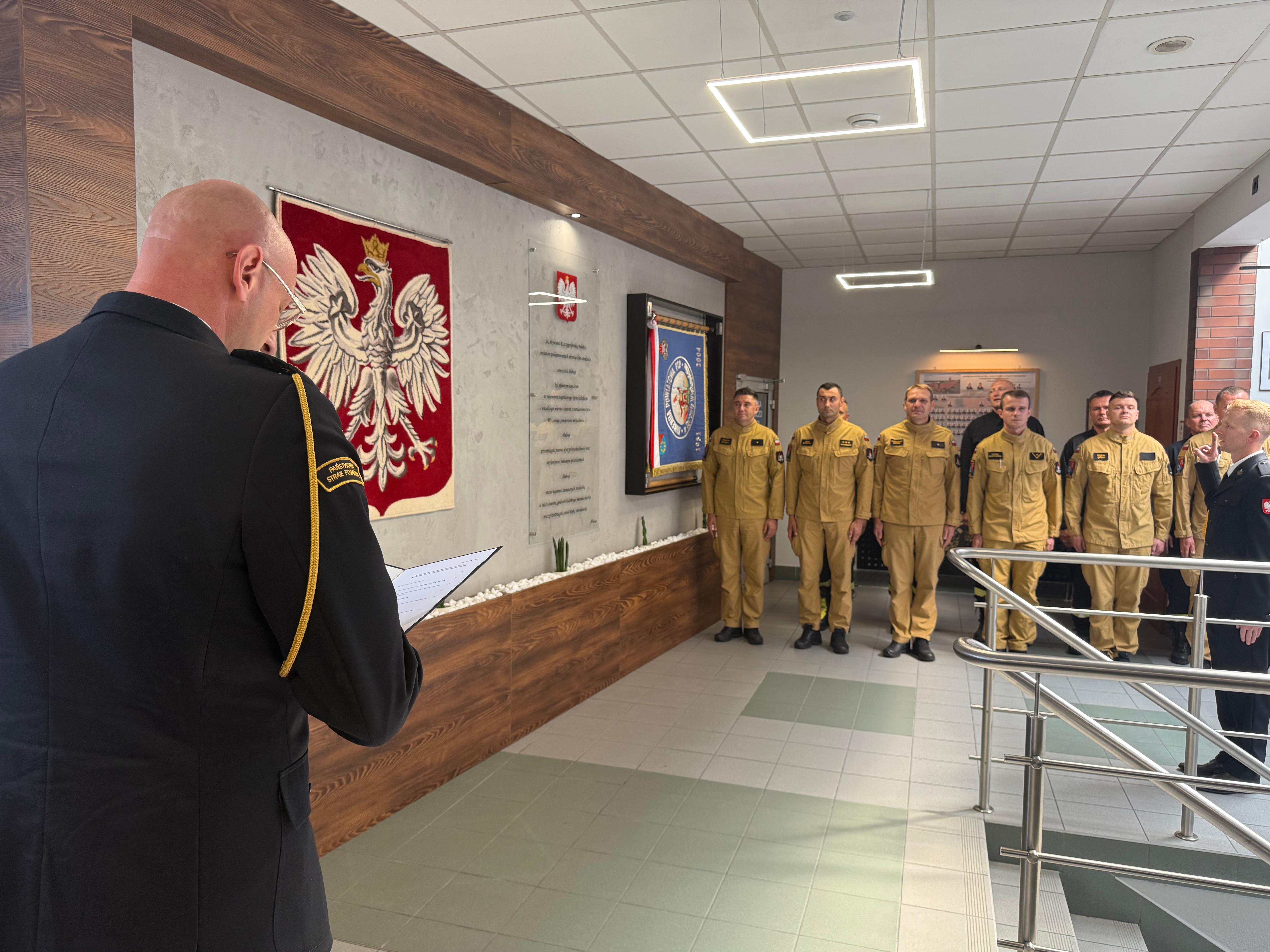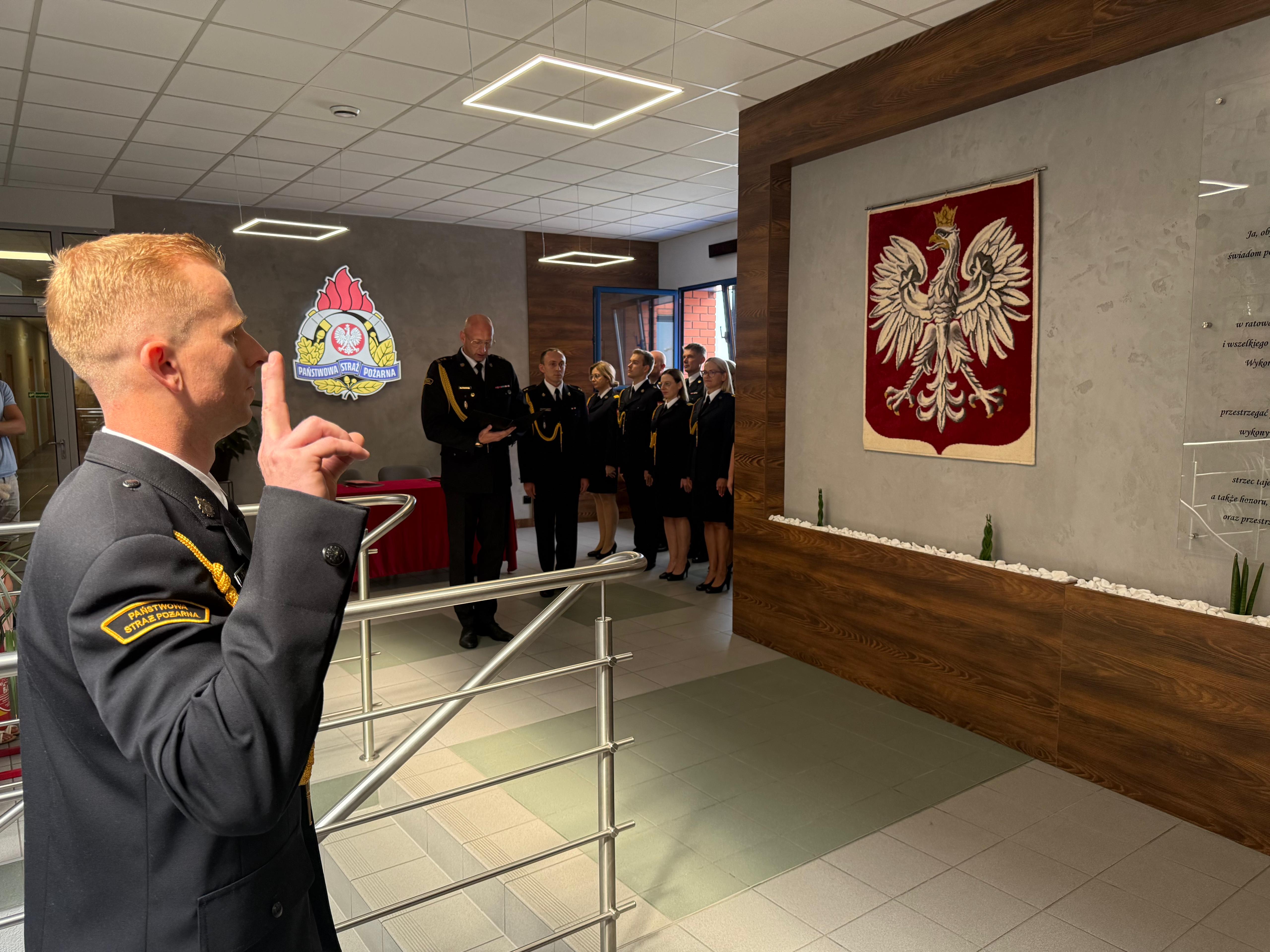 Po złożeniu przysięgi nastąpiło oficjalne podpisanie oraz wręczenie aktu ślubowania. W tym uroczystym momencie padły także słowa powitania: „Witamy w szeregach Państwowej Straży Pożarnej”.