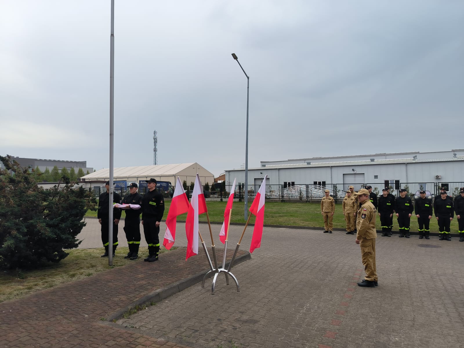 We wtorek 2 maja 2023 roku o godzinie 8.00 z okazji „Dnia Flagi Rzeczypospolitej Polskiej” w siedzibie Komendy Powiatowej Państwowej Straży Pożarnej przy ul. Batorego 21 w Ostrowie Wielkopolskim odbyło się uroczyste wciągnięcie flagi państwowej na maszt.