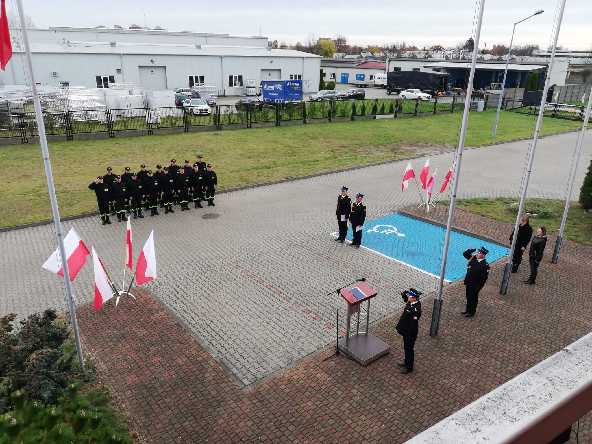 Uroczystość rozpoczął meldunek złożony Komendantowi Powiatowemu Państwowej Straży Pożarnej w Ostrowie Wielkopolskim st.bryg. Jackowi Wiśniewskiemu przez dowódcę uroczystości st.kpt. Sławomira Kubiaka. Tradycyjnie, w tym dniu strażacy upamiętniają odzyskanie niepodległości przez Polskę w 1918 roku oraz uczestniczą w akcji „Niepodległa dla Hymnu” poprzez wspólne zaśpiewanie „Mazurka Dąbrowskiego” oddając należyty hołd tym, którzy z wielkim poświęceniem walczyli o wolność i niepodległość naszej Ojczyzny