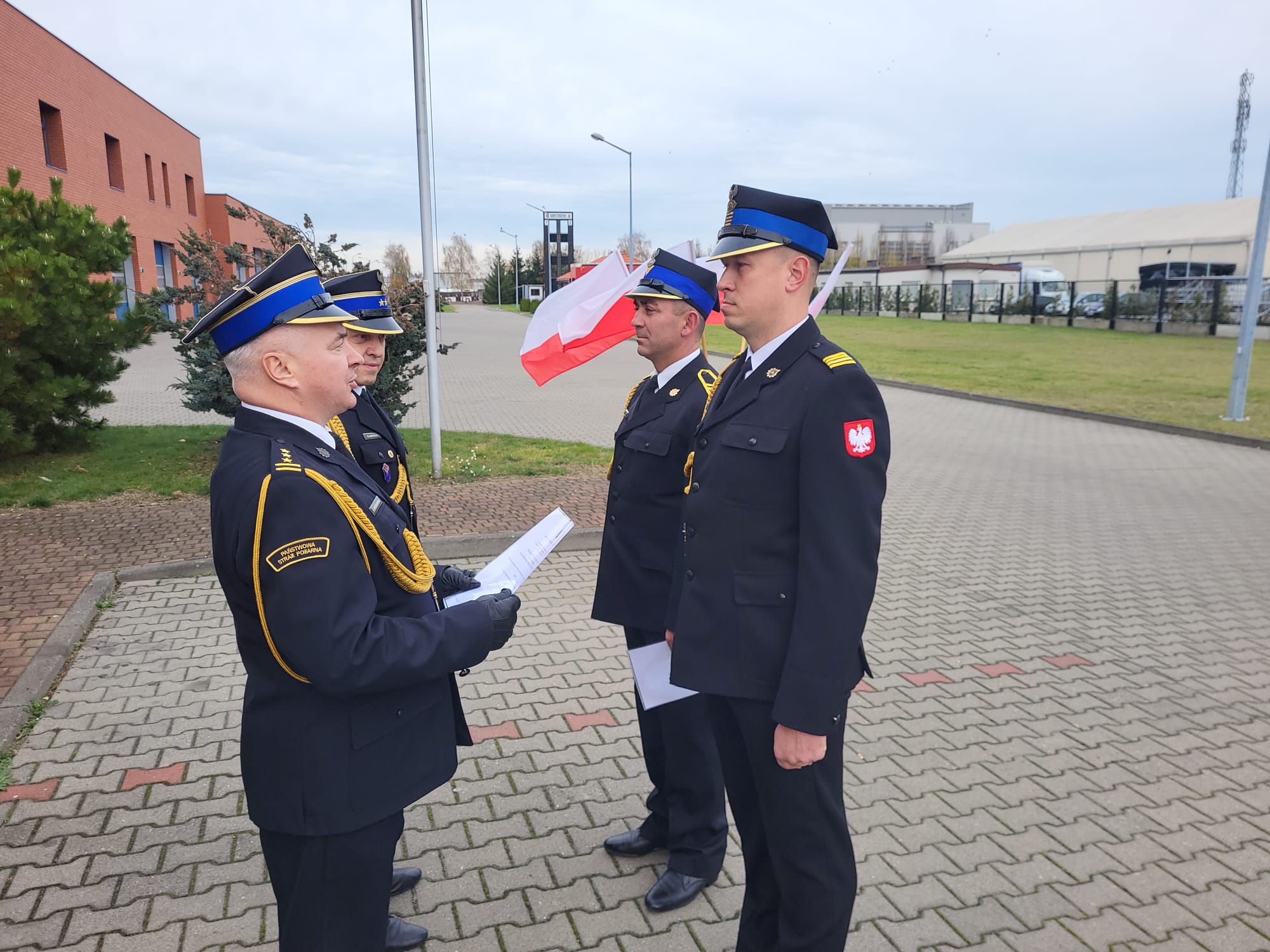 Uroczysty apel z okazji Dnia Niepodległości był także okazją do wręczenia decyzji o nadaniu wyższych stopni służbowych w korpusie podoficerskim funkcjonariuszom tut. Komendy, akty nominacyjne wręczyli st.bryg. Jacek Wiśniewski Komendant Powiatowy PSP wraz z bryg. Romanem Mateckim Zastępcą Komendanta Powiatowego PSP.