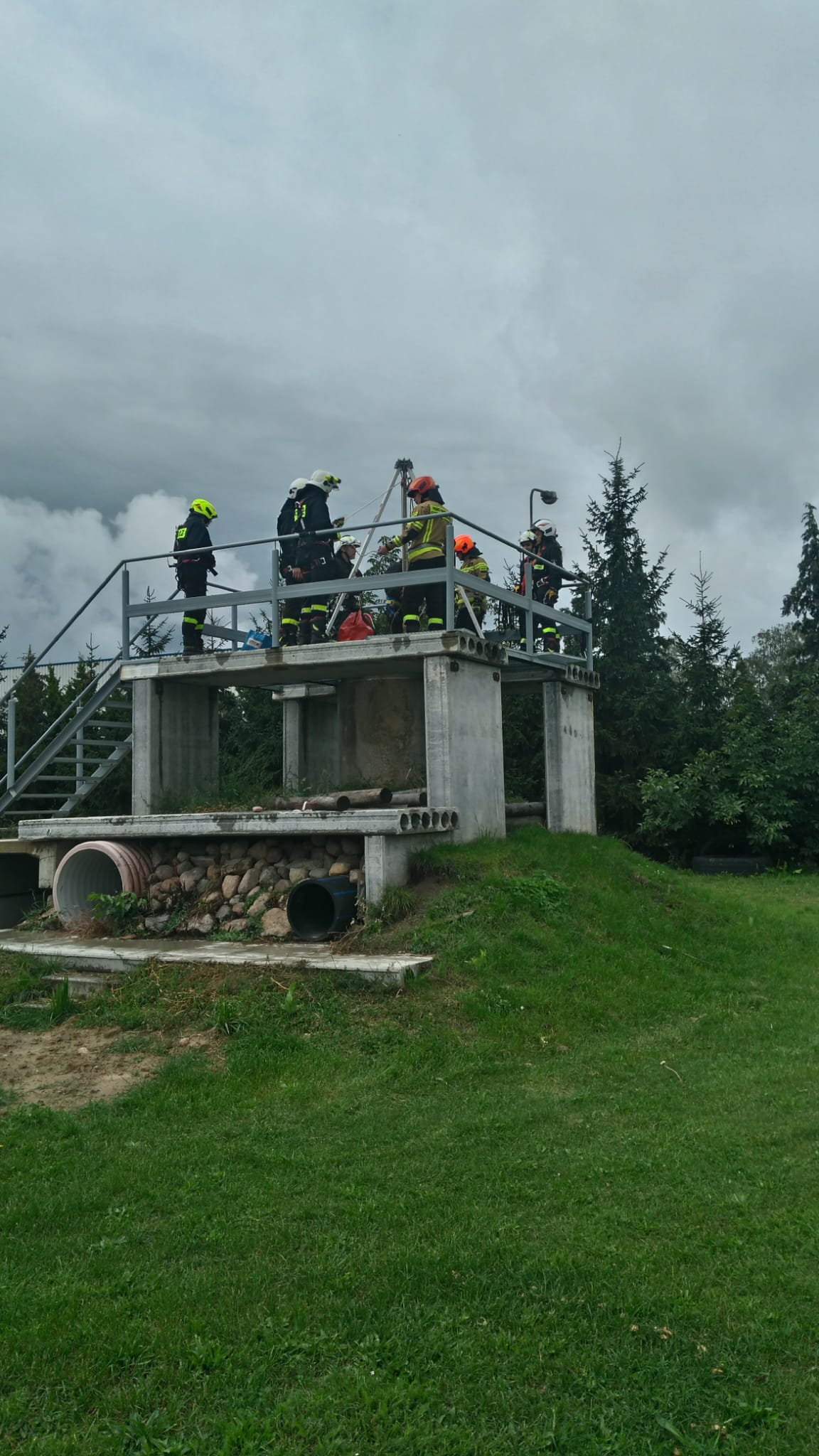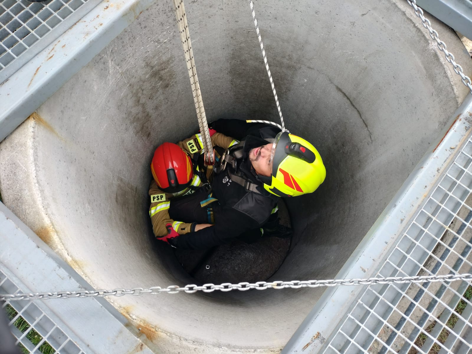 - dotarcie ratownika w dół poprzez zejście z asekuracją i opuszczenie wykorzystując trójnóg ratowniczy,