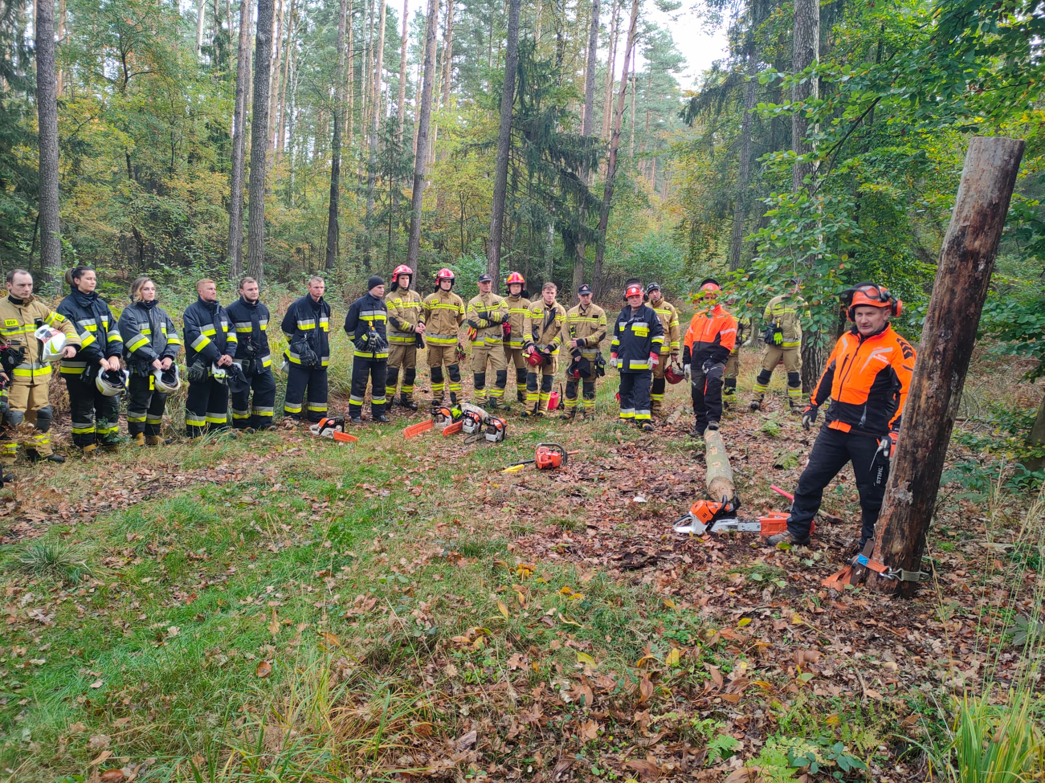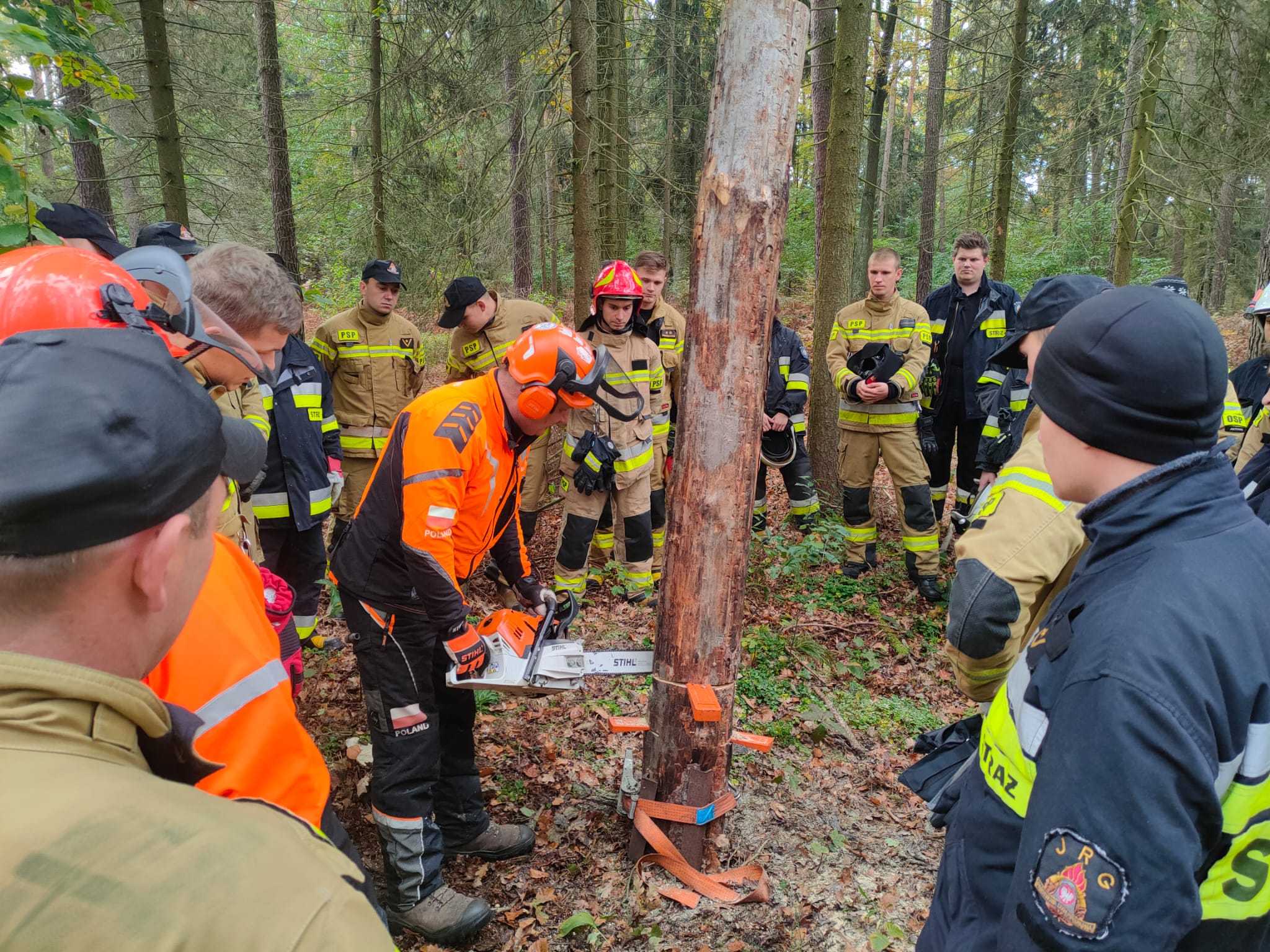 Pierwszym etapem były wykłady teoretyczne dotyczące prawidłowej obsługi i eksploatacji pilarek do cięcia drewna, omówione zostały sposoby konserwacji, eksploatacji oraz właściwego ubioru i zasad BHP. Drugi etap został przeprowadzony po przegrupowaniu jednostek biorących udział w warsztatach na teren Leśnictwa Klady. Tam pod czujnym okiem instruktorów wytypowanych przez Nadleśniczego strażacy PSP oraz OSP mogli przećwiczyć techniki i sposoby budowy stanowisk, oraz omówić i przećwiczyć w sposób praktyczny sposoby cięcia drzew zarówno wolnostojących jak i zawieszonych czy nadłamanych.