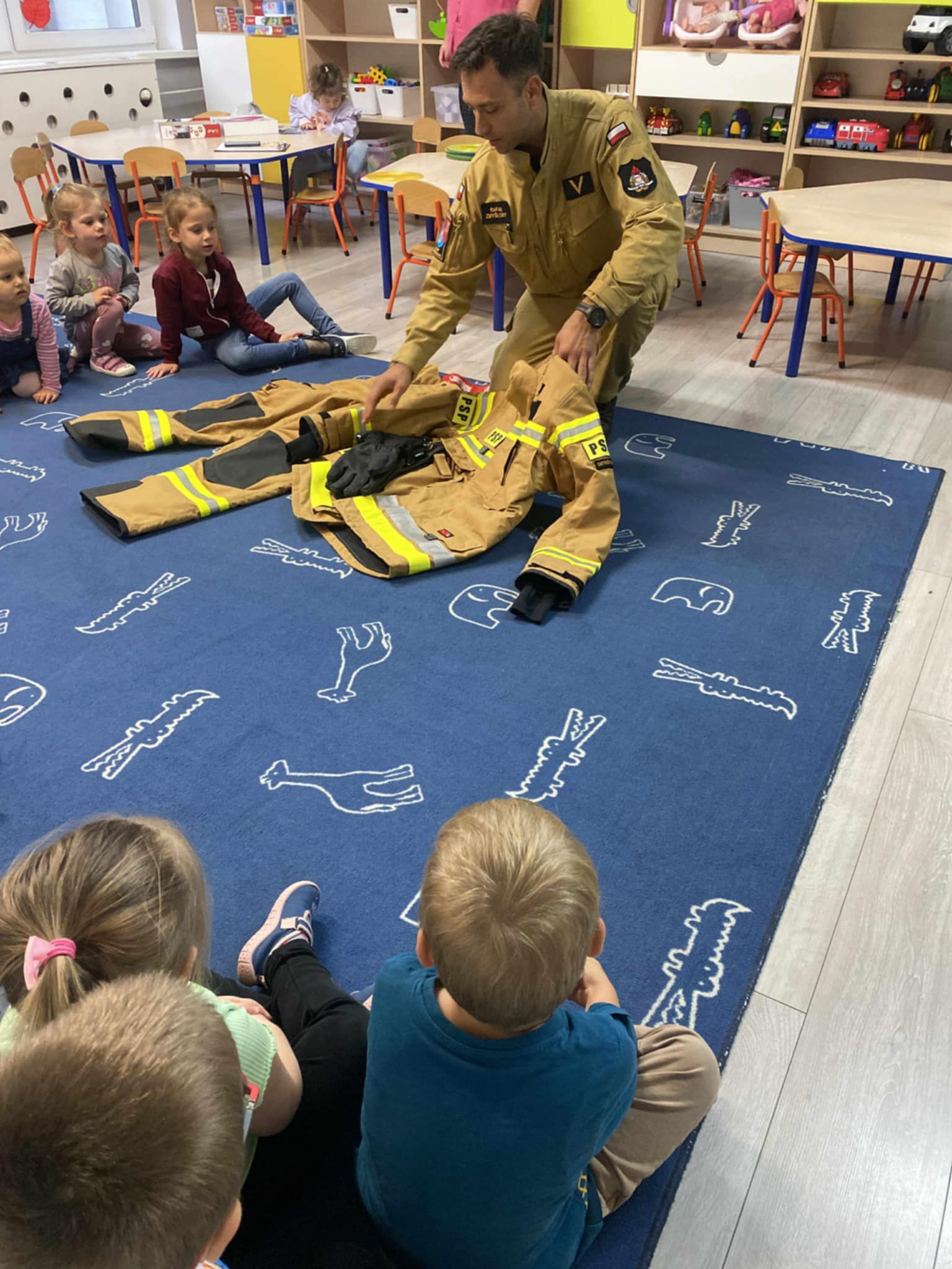Celem wizyty było przybliżenie dzieciom pracy strażaka, zapoznanie ich z podstawowymi zasadami bezpieczeństwa pożarowego oraz pokazanie sprzętu wykorzystywanego podczas działań ratowniczych.