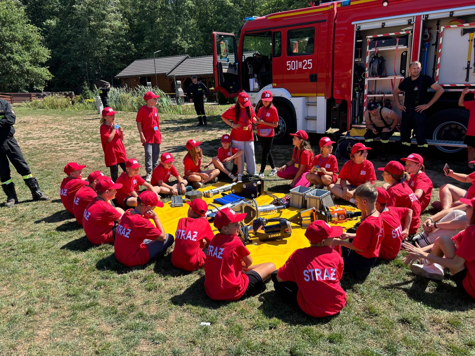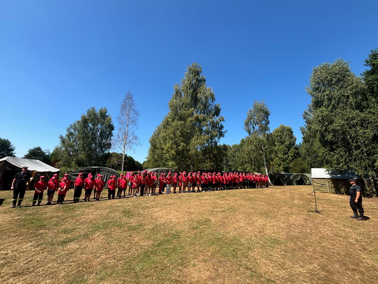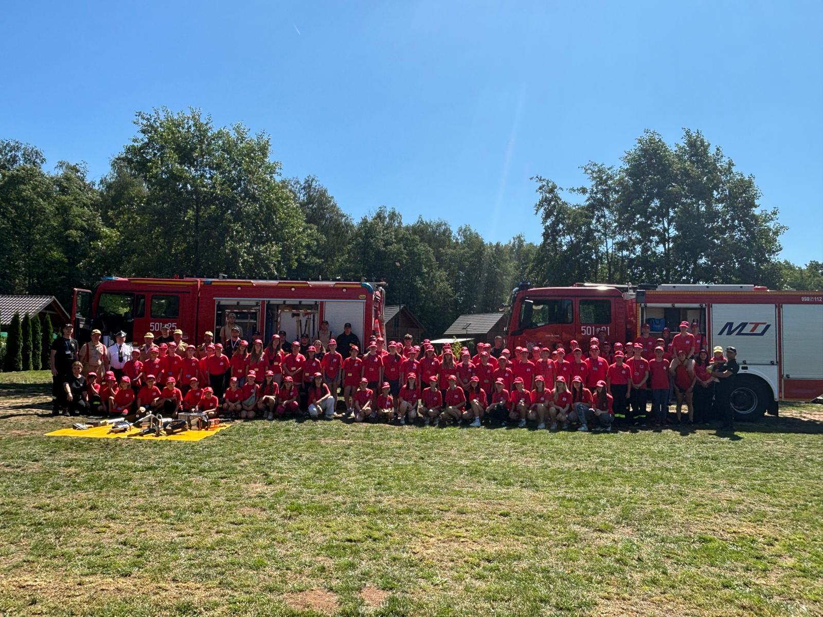 Łącznie w obozie bierze udział blisko 100 osób, młodzi strażacy pod okiem opiekunów i przy współudziale strażaków z Ochotniczej i Państwowej Straży Pożarnej mają okazję m.in. zapoznać się ze sprzętem strażackim, wyposażeniem samochodów pożarniczych doskonalić swoje umiejętności w zakresie udzielania pierwszej pomocy. Wszystkim uczestnikom życzymy udanego wypoczynku, wyśmienitej zabawy i doskonałej pogody.