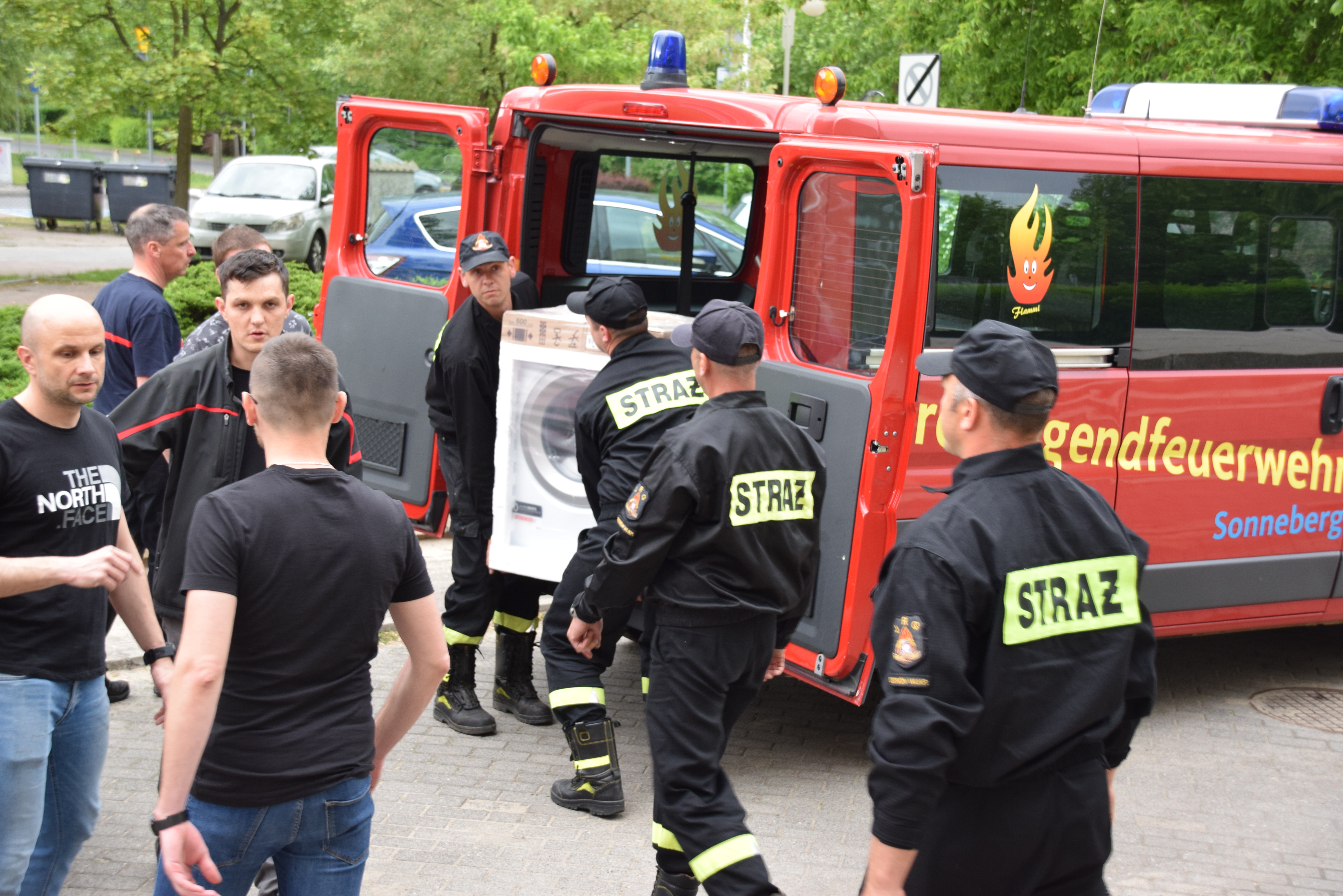 W dniu 26 maja 2022 r. ostrowscy strażacy pomagali w przyjęciu darów które przybyły do Ostrowa Wielkopolskiego z partnerskiego miasta Sonneberg, przybyłych gości przywitał Starosta Ostrowski Pan Paweł Rajski.