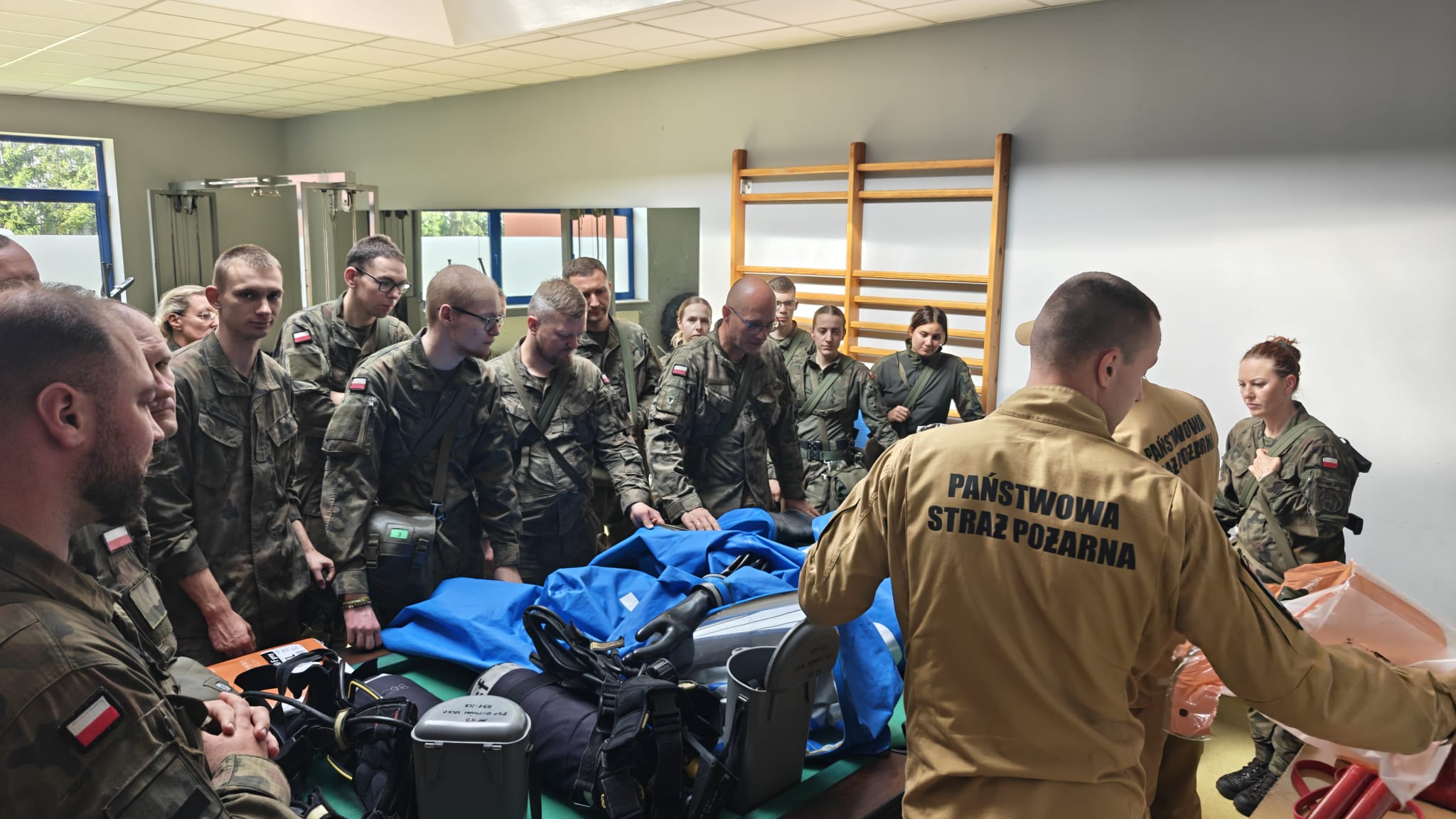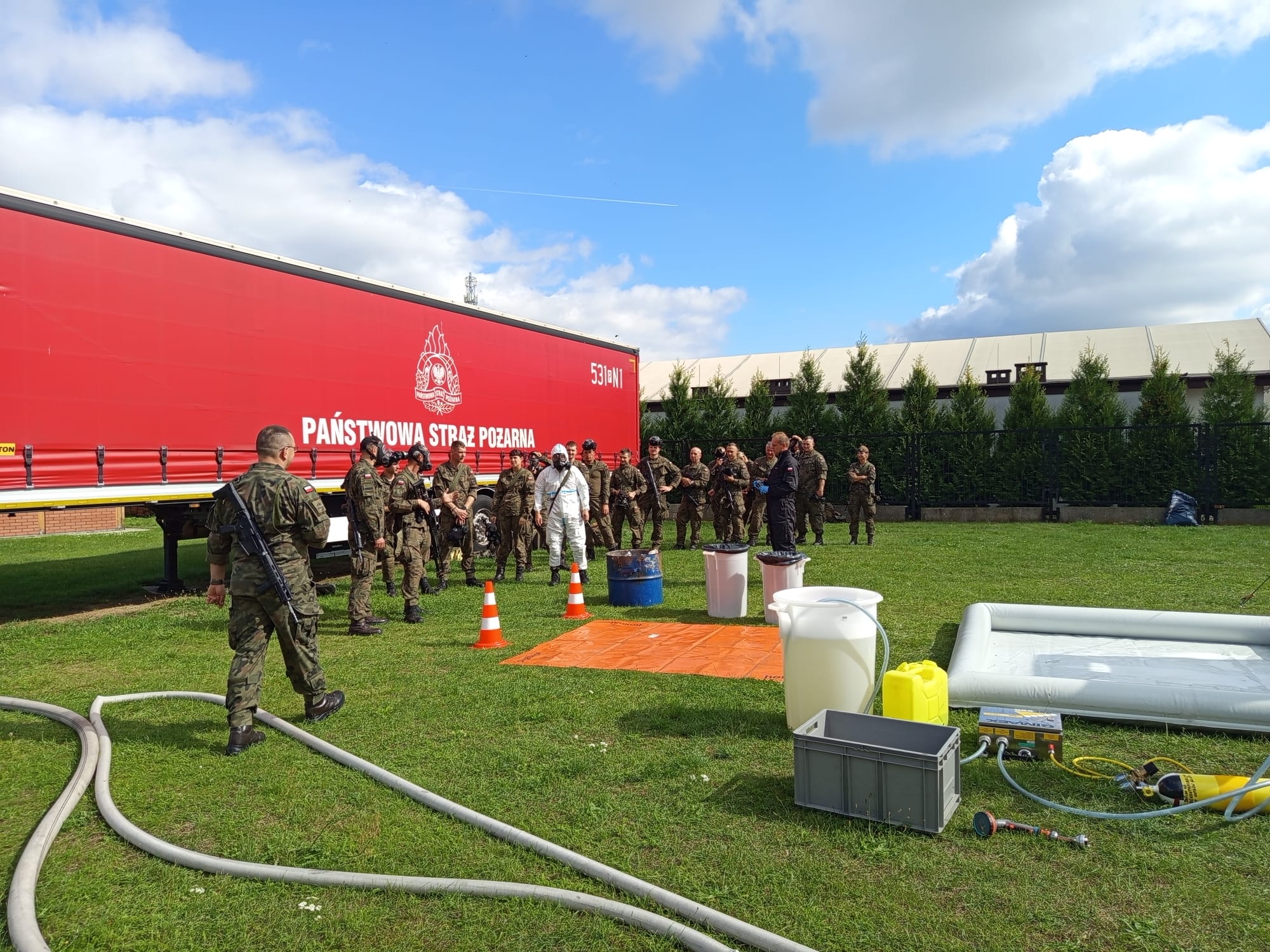Na terenie Jednostki Ratowniczo-Gaśniczej w Ostrowie Wielkopolskim przygotowano kilka stanowisk ćwiczebnych. Żołnierze mieli okazję uczestniczyć w ćwiczeniach w komorze wytrzymałościowo-dymowej, zapoznać się ze ścieżką dekontaminacyjną dedykowaną funkcjonariuszom formacji uzbrojonych, poznać specyfikę służby w Państwowej Straży Pożarnej, zadania i obowiązki strażaka-ratownika oraz jego wyposażenie indywidualne. Dodatkowo, w ramach zajęć ze Specjalistyczną Grupą Ratownictwa Chemiczno-Ekologicznego Ostrów, uczestnicy przećwiczyli podstawowe zasady organizacji działań ratowniczych z wykorzystaniem specjalistycznego sprzętu.