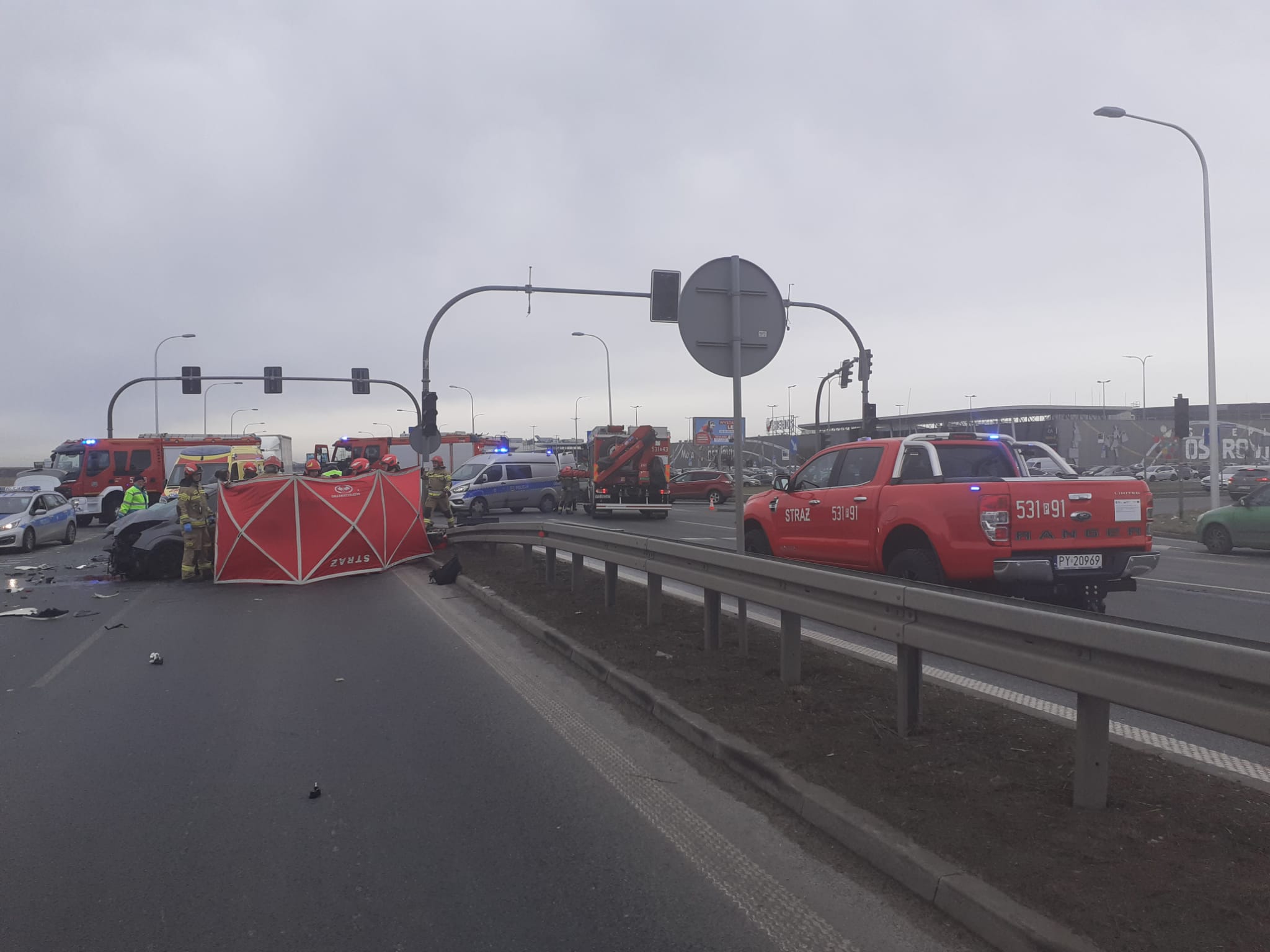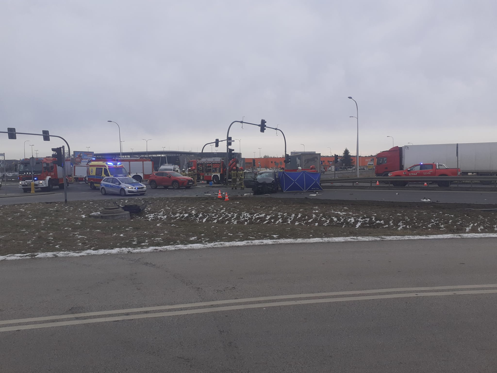 Wypadek drogowy na skrzyżowaniu ulic przy galerii handlowej