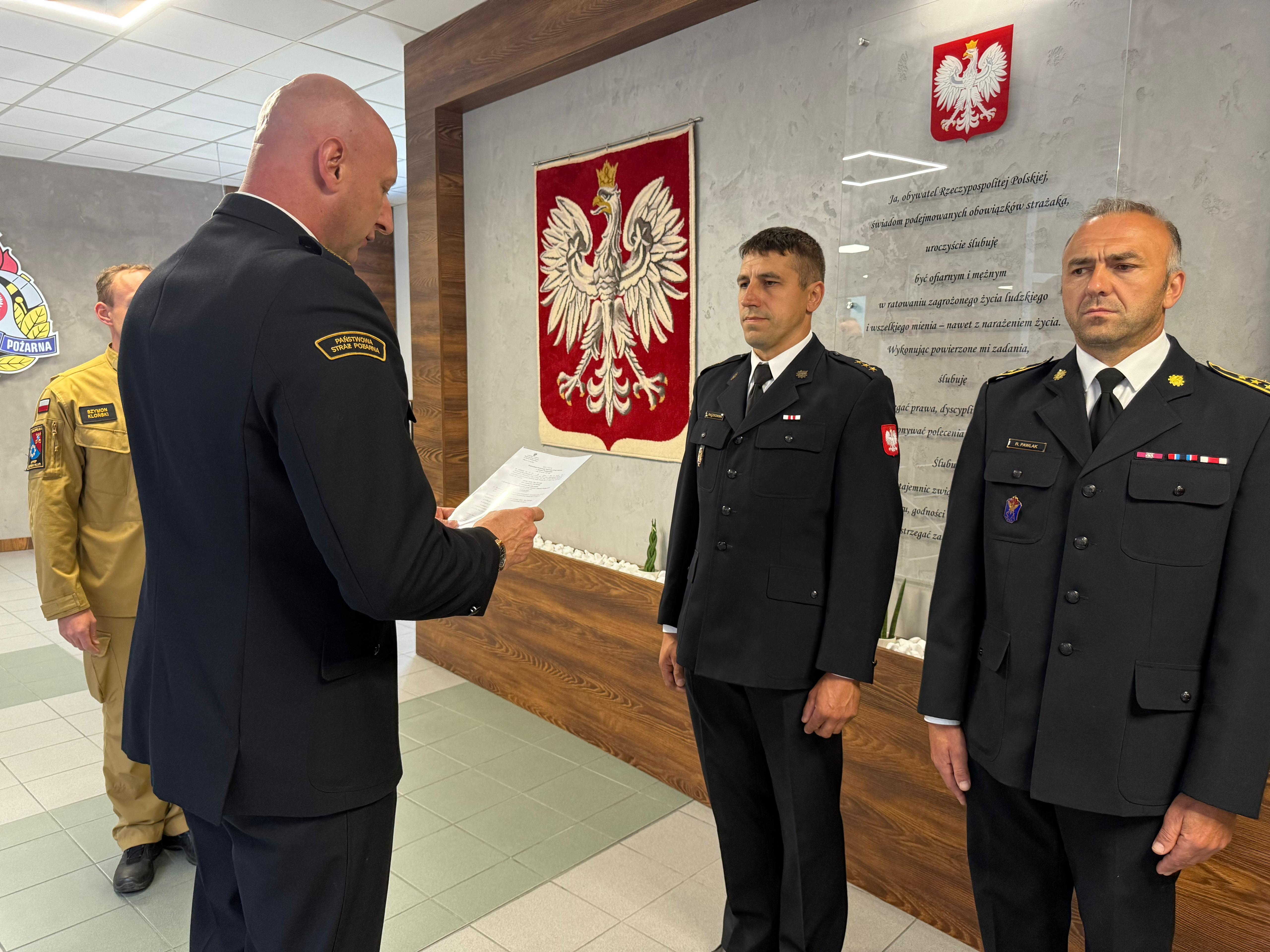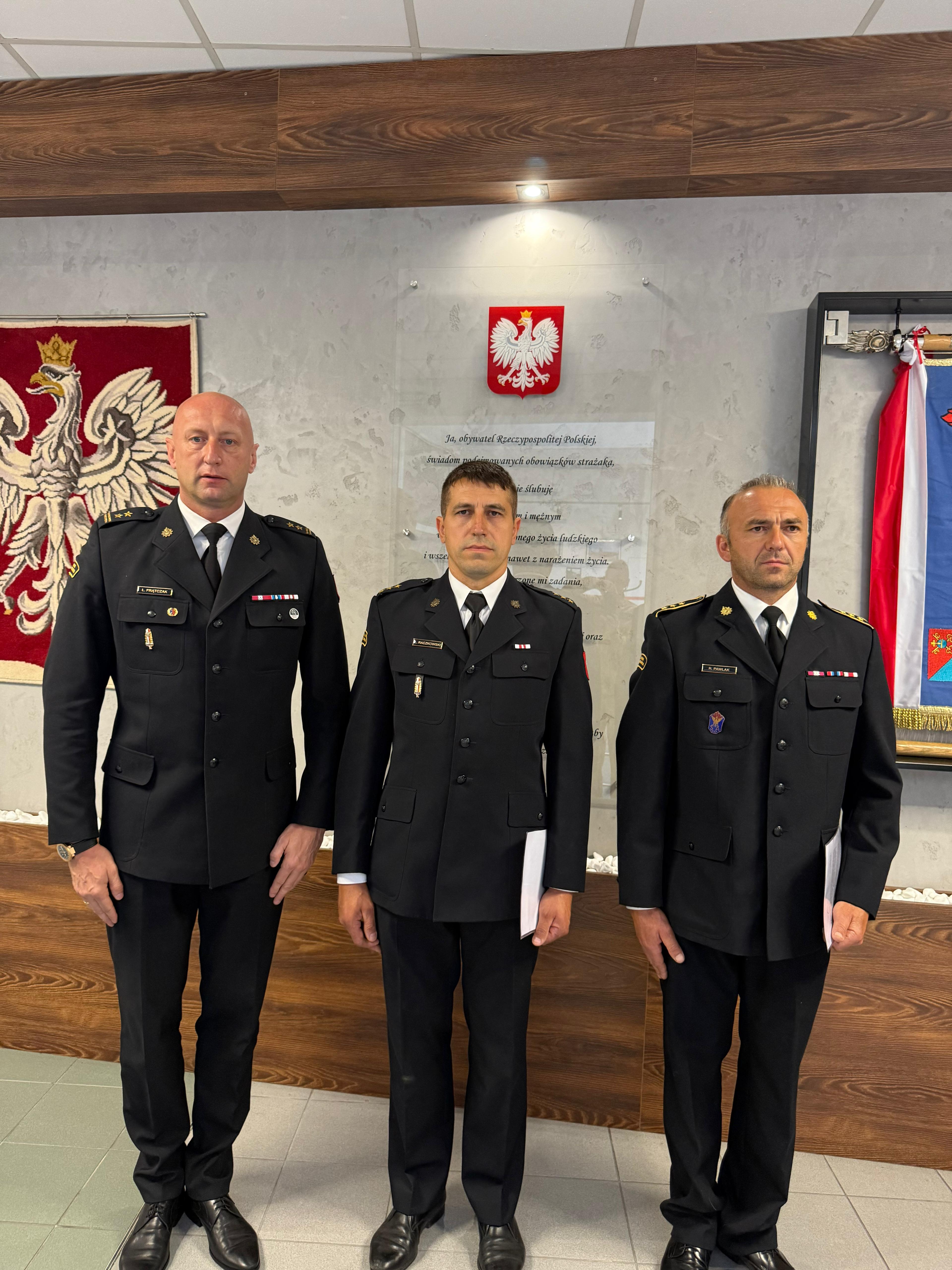 9 lipca 2025 roku podczas uroczystej zbiórki w Komendzie Powiatowej Państwowej Straży Pożarnej w Ostrowie Wielkopolskim, Komendant Powiatowy bryg. Łukasz Frątczak, w asyście Zastępcy Komendanta Powiatowego mł. bryg. Łukasza Aleksandrzaka oraz p.o. Zastępcy Dowódcy Jednostki Ratowniczo-Gaśniczej mł. kpt. Szymona Klońskiego, dokonał powierzenia obowiązków na stanowiskach kierowniczych w systemie zmianowym.