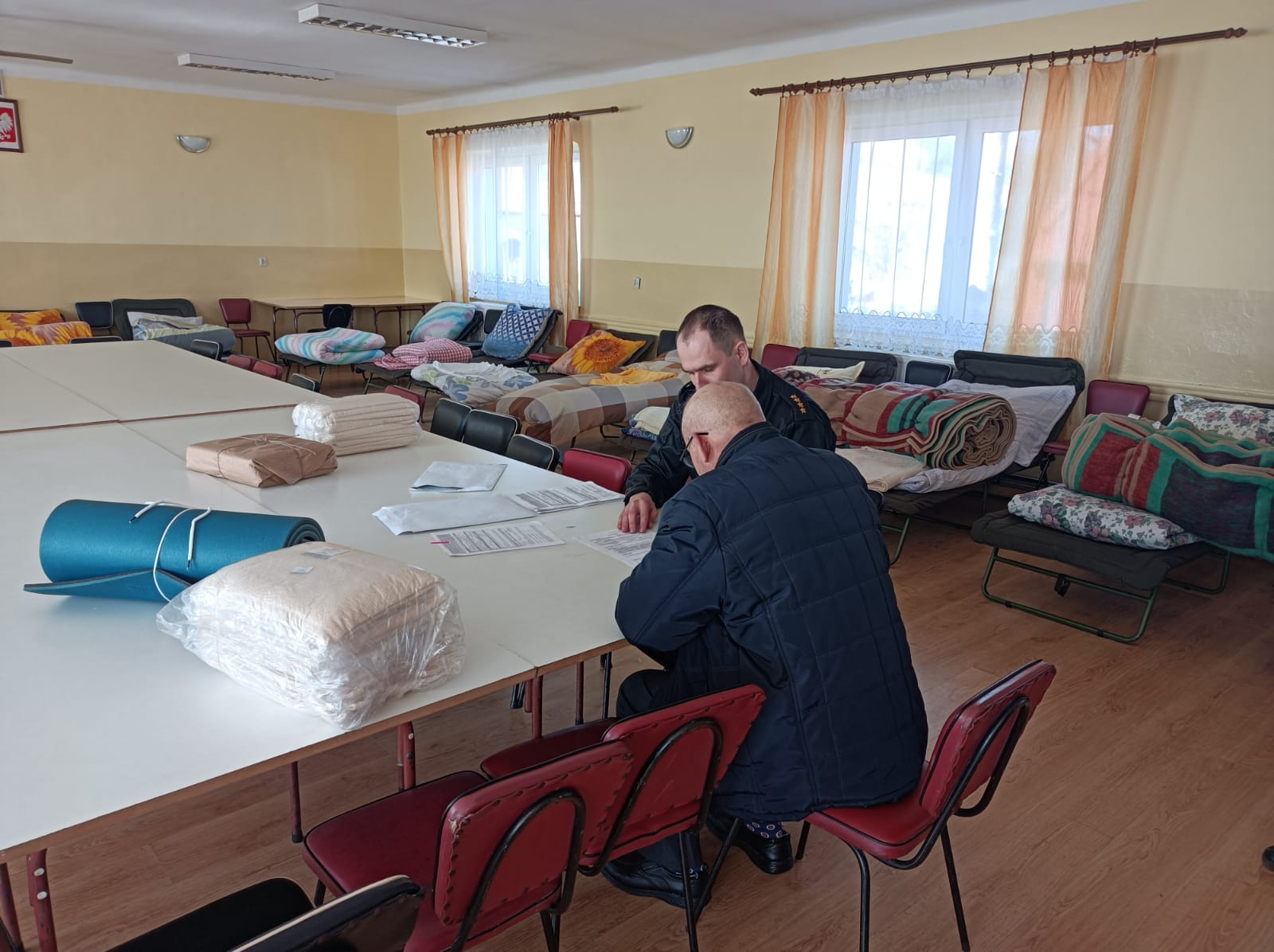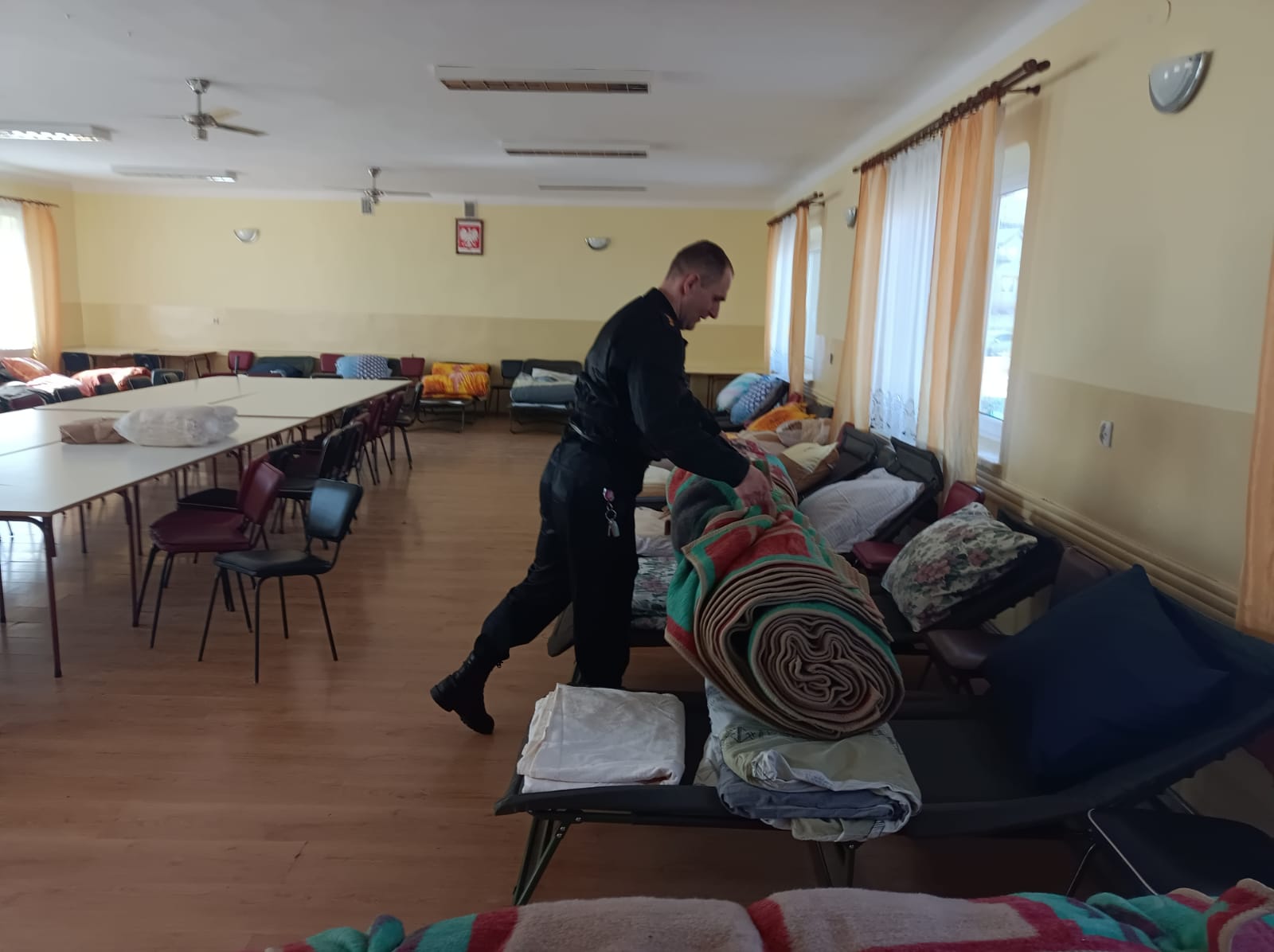 Zbiórka niezbędnych rzeczy do zorganizowania noclegów od dnia 14 marca 24h/dobę prowadzona jest w siedzibie KP PSP w Ostrowcu Św. przy ul. Wardyńskiego 32 w Ostrowcu Św. Obecnie dzięki zaangażowaniu ZHP, PCK, osób prywatnych i pozyskaniu z rezerw wojewody niezbędnych łóżek, materacy, śpiworów itp. zebraliśmy i rozdysponowaliśmy już środki na przyjęcie dla ponad 140 osób. Akcja i zbiórka trwa nadal.