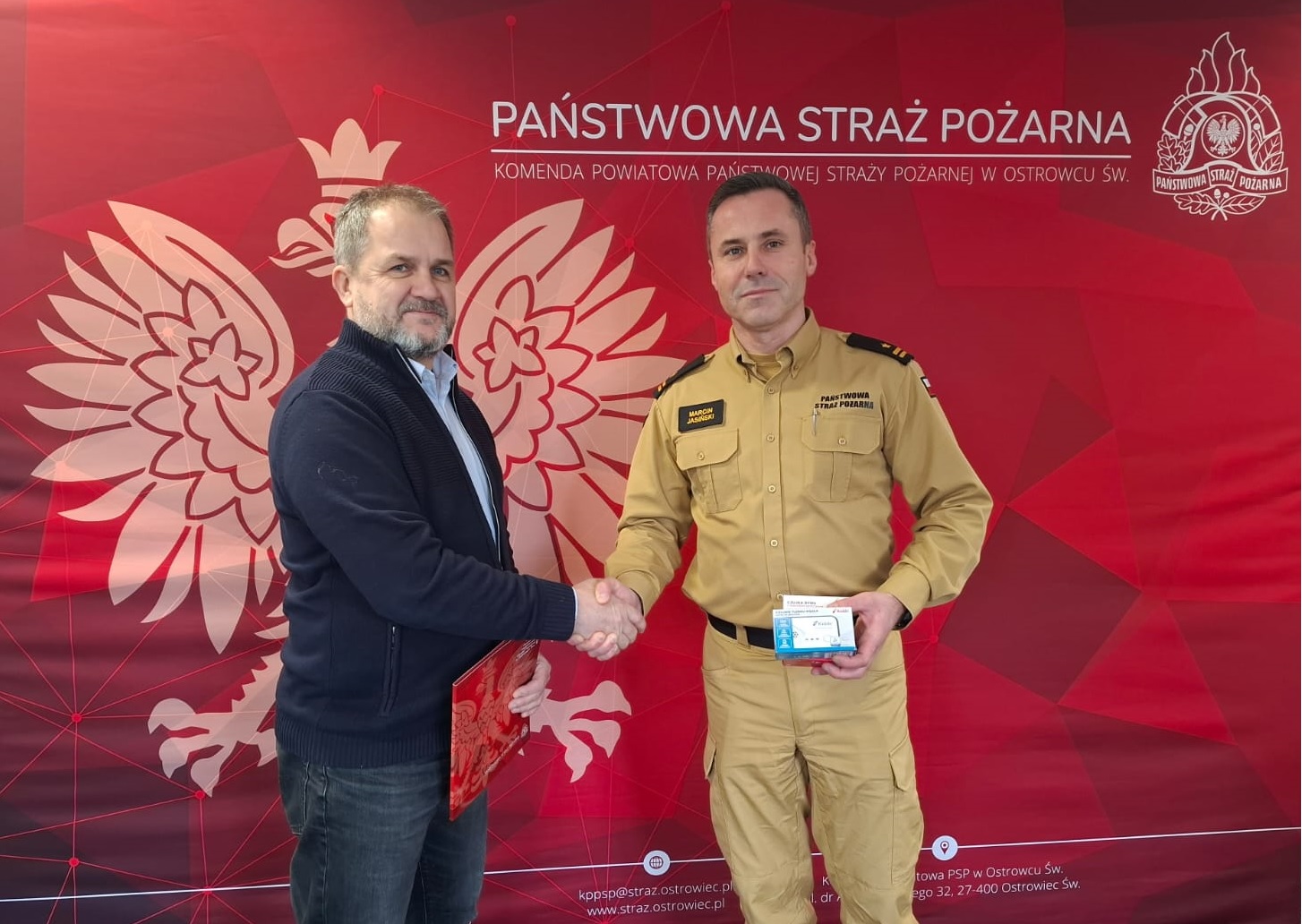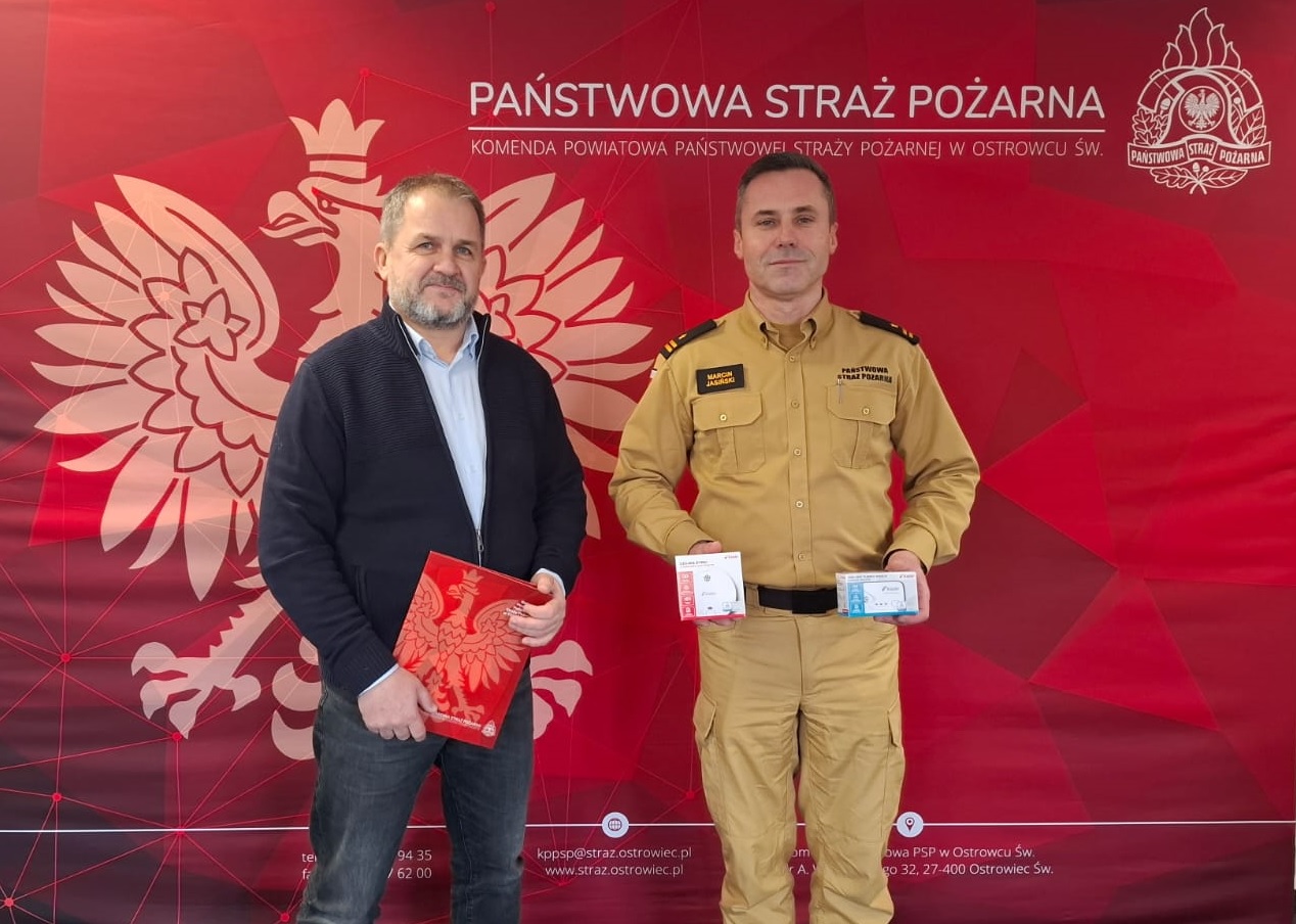 Komenda Powiatowa Państwowej Straży Pożarnej w Ostrowcu świętokrzyskim otrzymała od Akademii Przedsiębiorczości Sp. z o. o., zestaw autonomicznych czujek tlenku węgla oraz dymu, które trafią do działań prewencyjnych i edukacyjnych na rzecz bezpieczeństwa mieszkańców.