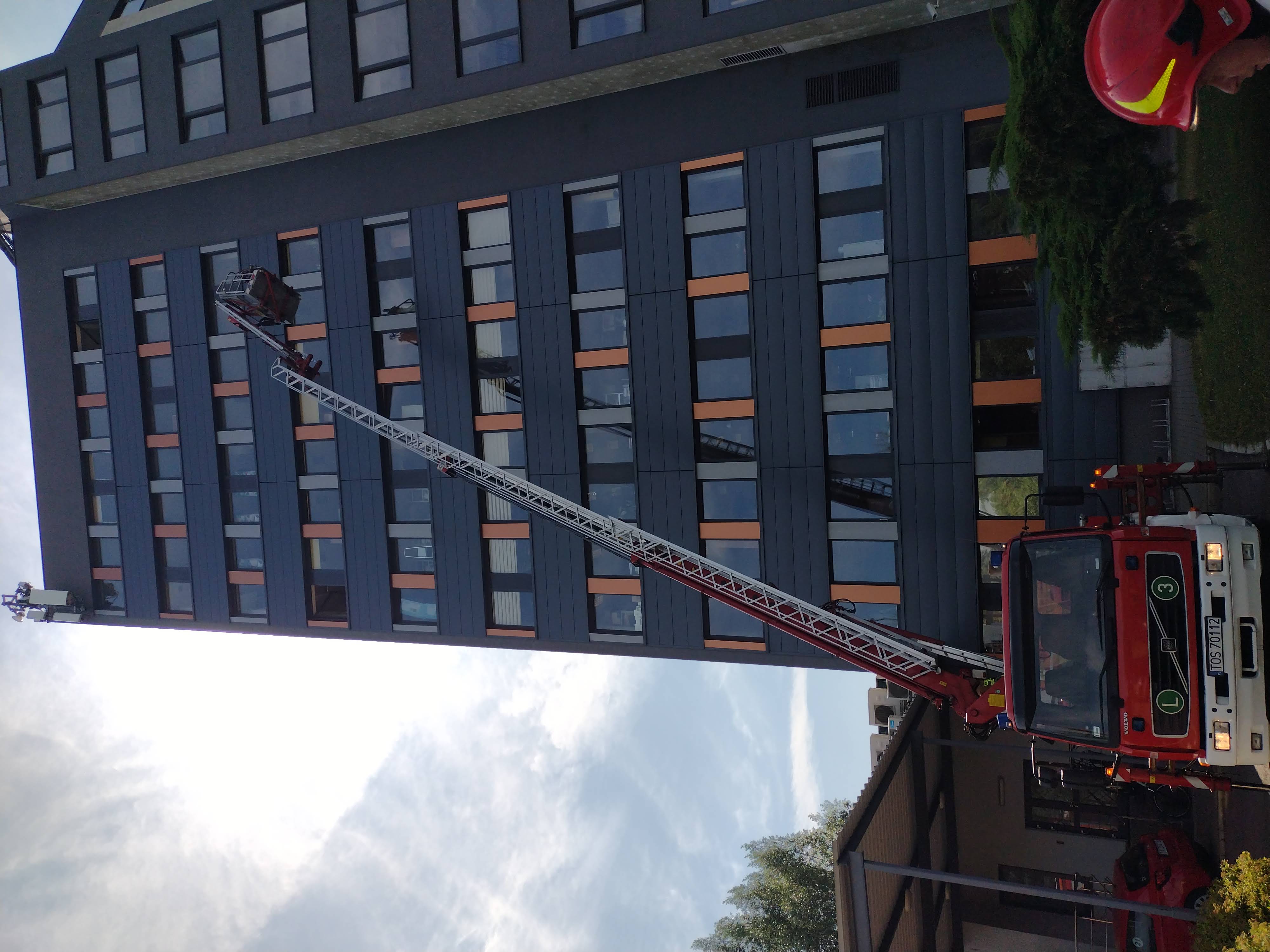 Ćwiczenia ostrowieckich strażaków na budynku wysokim