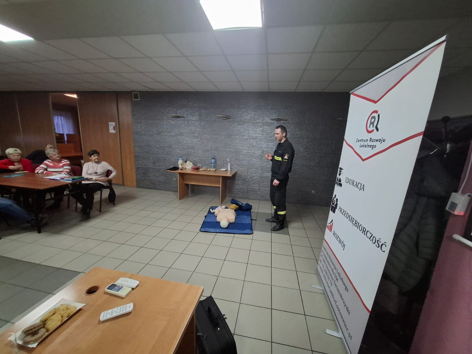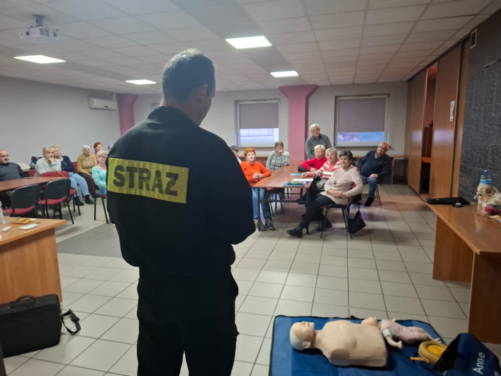 Spotkanie z Seniorami w Ostrowcu Św. Prelekcje oraz praktyczne ćwiczenia z obsługi czujek oraz udzielania pomocy osobie zaczadzonej.