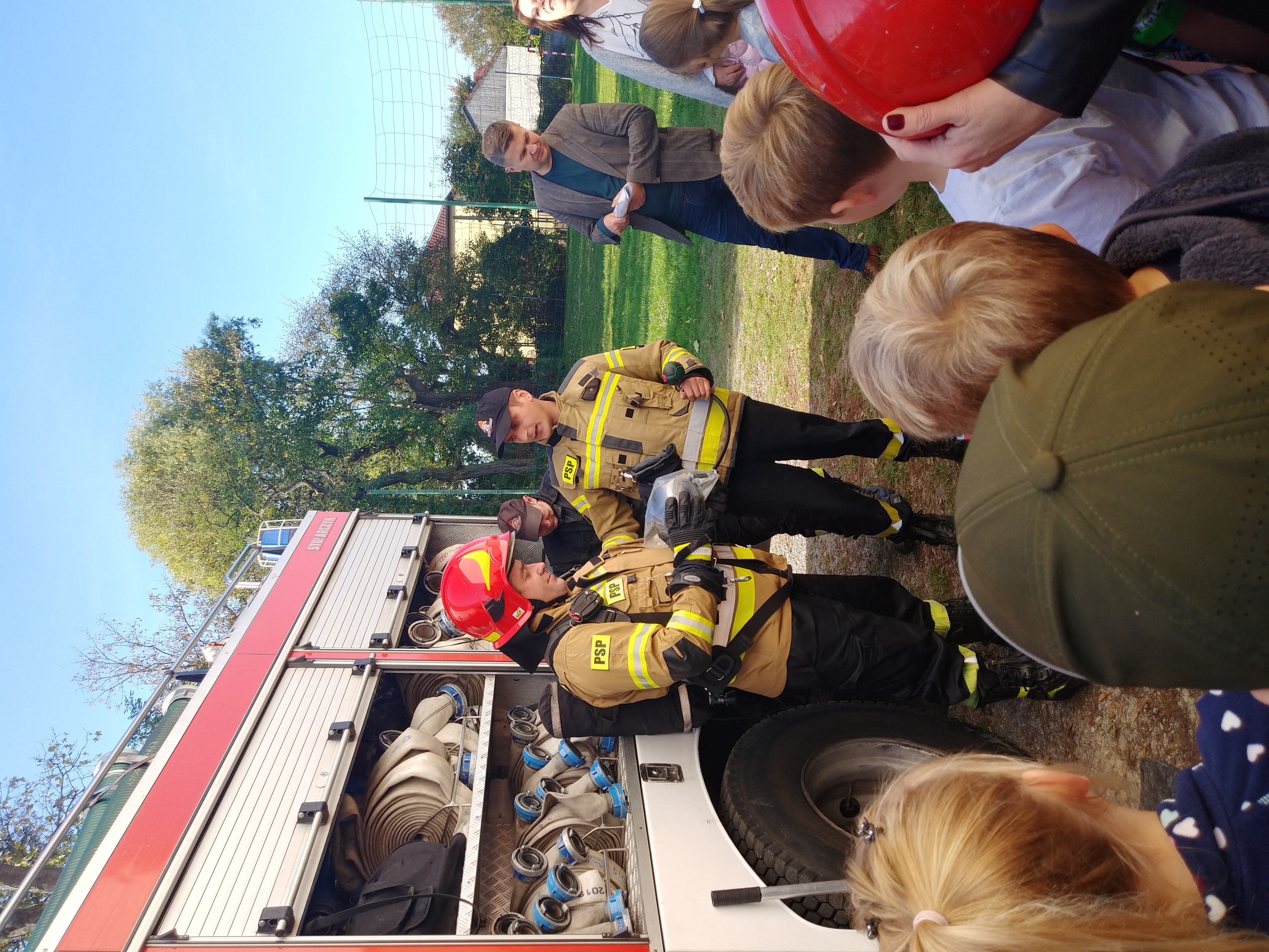 Funkcjonariusze z Komendy Powiatowej PSP w Ostrowcu Św. prowadzą na terenie naszego powiatu rozmaite zajęcia w ramach kampanii społecznej „Czujka na straży Twojego bezpieczeństwa!” Spotkania edukacyjne prowadzone są w różnego rodzaju placówkach szkolnych czy administracyjnych bądź w terenie - podczas pokazów, festynów, pikników oraz w bazach jednostek ratowniczo-gaśniczych. Każde miejsce aby przekazać naszym odbiorcom ideę bezpiecznego przetrwania sezonu grzewczego jest dobre. Dlatego chętnie jeździmy z wizytami do naszych słuchaczy ale równie chętnie zawsze zapraszamy do Komendy Powiatowej PSP w Ostrowcu Św. W dniu 4 października byliśmy gośćmi Publicznej Szkoły Podstawowej im. Legionów Polskich w Okole. Podczas tej wizyty wspólnie omówiliśmy przyczyny i skutki powstawania pożarów i zatruć spowodowanych tlenkiem węgla oraz zachęcaliśmy do stosowania czujników tlenku węgla w swoich domach i mieszkaniach. Nie obyło się oczywiście bez pokazu strażackiego wozu i sprzętu będącego na jego wyposażeniu. Dzieci aktywnie uczestniczyły w spotkaniu. Uważnie słuchały o niebezpiecznej pracy strażaka i chętnie odpowiadały na zadawane pytania.