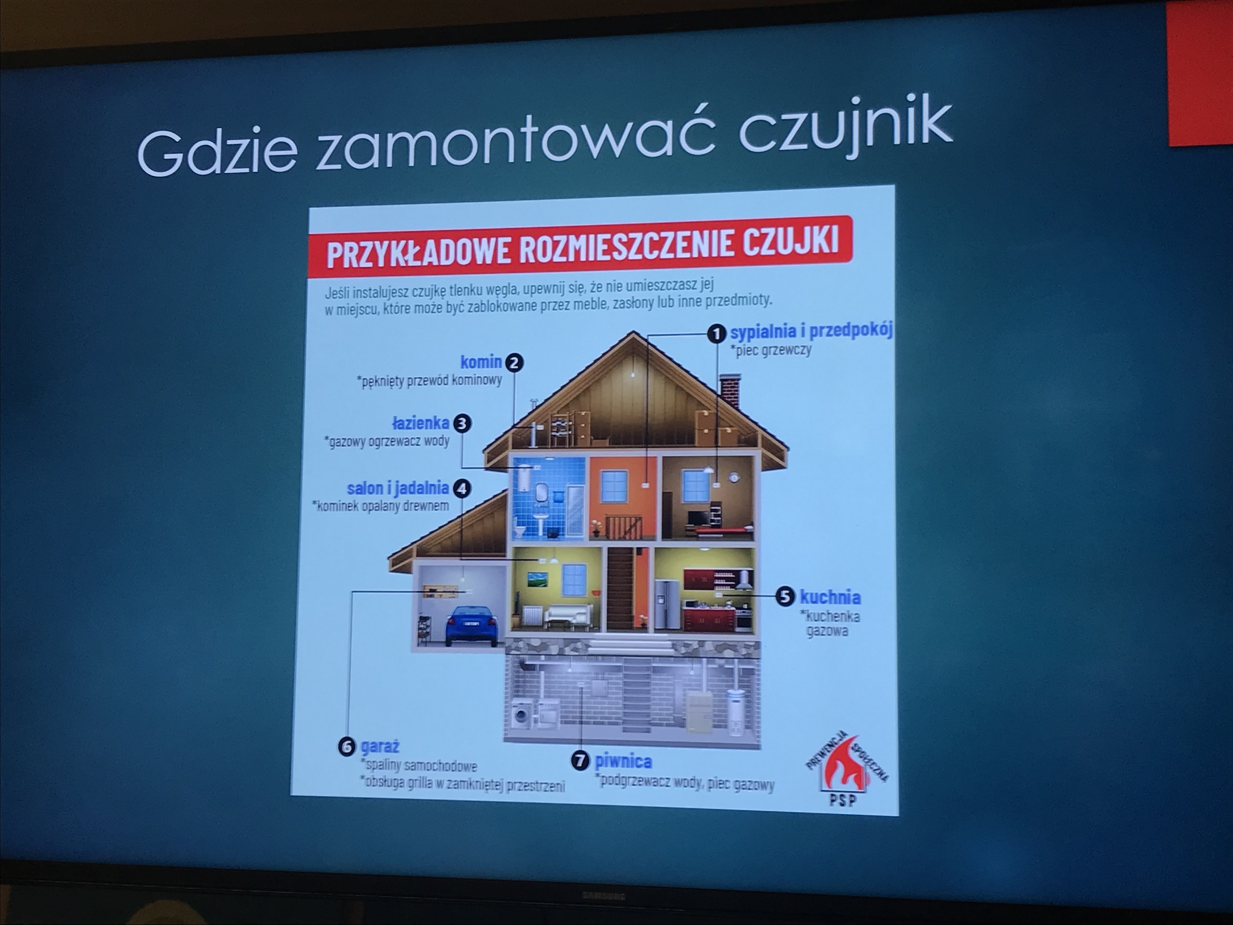 Czujka na straży Twojego bezpieczeństwa! – z taką właśnie misją i przesłaniem ostrowieccy strażacy odwiedzili Środowiskowy Dom Samopomocy przy ul. Focha 5 w Ostrowcu Św. Podczas wspólnego spotkania z dorosłymi, ratownicy omawiali dlaczego tak potrzebne w naszym domu są czujki tlenku węgla i dymu, jak zachować się w przypadku zagrożenia związanego z "czadem" oraz jak postępować w przypadku gdy dojdzie do pożaru w budynkach mieszkalnych. Słuchacze dowiedzieli się również, gdzie należy instalować czujki oraz jak takie czujki wyglądają. Strażacy przypominali numery alarmowe, mówili jak uchronić się przed pożarem oraz na jakiej zasadzie działają czujki tlenku węgla oraz dymu. Przygotowywane spotkanie wzbudziło jak zawsze duże zainteresowanie i emocje wśród zgromadzonych osób, które chętnie zadawały wiele pytań. Mamy nadzieję, że edukacja uczestników zaprocentuje i w przyszłości nie będą ofiarami zabójczego czadu lub pożaru we własnym mieszkaniu.