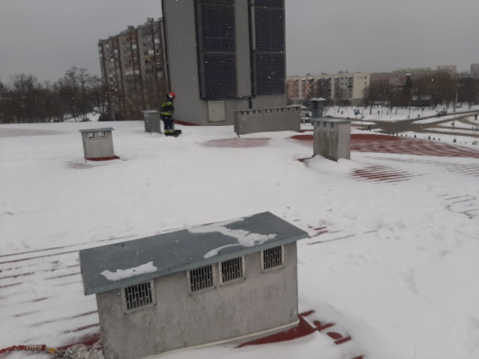W przypadku wystąpienia lokalnych nagromadzeń śniegu lub lodu, a także sopli i nawisów mogących stanowić zagrożeń dla bezpieczeństwa obiektu i przebywających w pobliżu ludzi, prosimy o usuwanie zalegających na dachach budynków warstw śniegu i lodu.